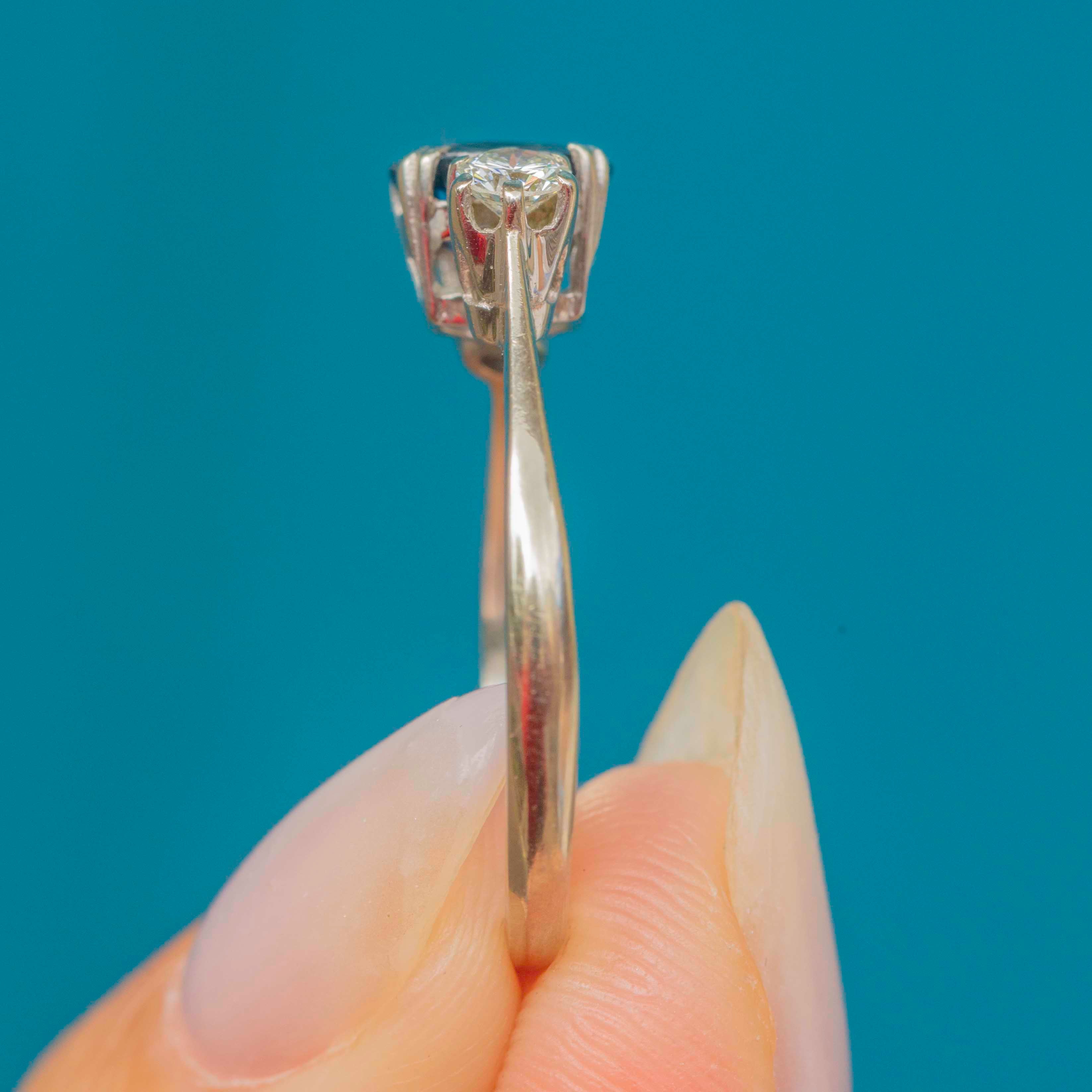 MATERIALS: Tests as 18ct White Gold, Natural Sapphire (0.80ct), Diamond (0.20ct).