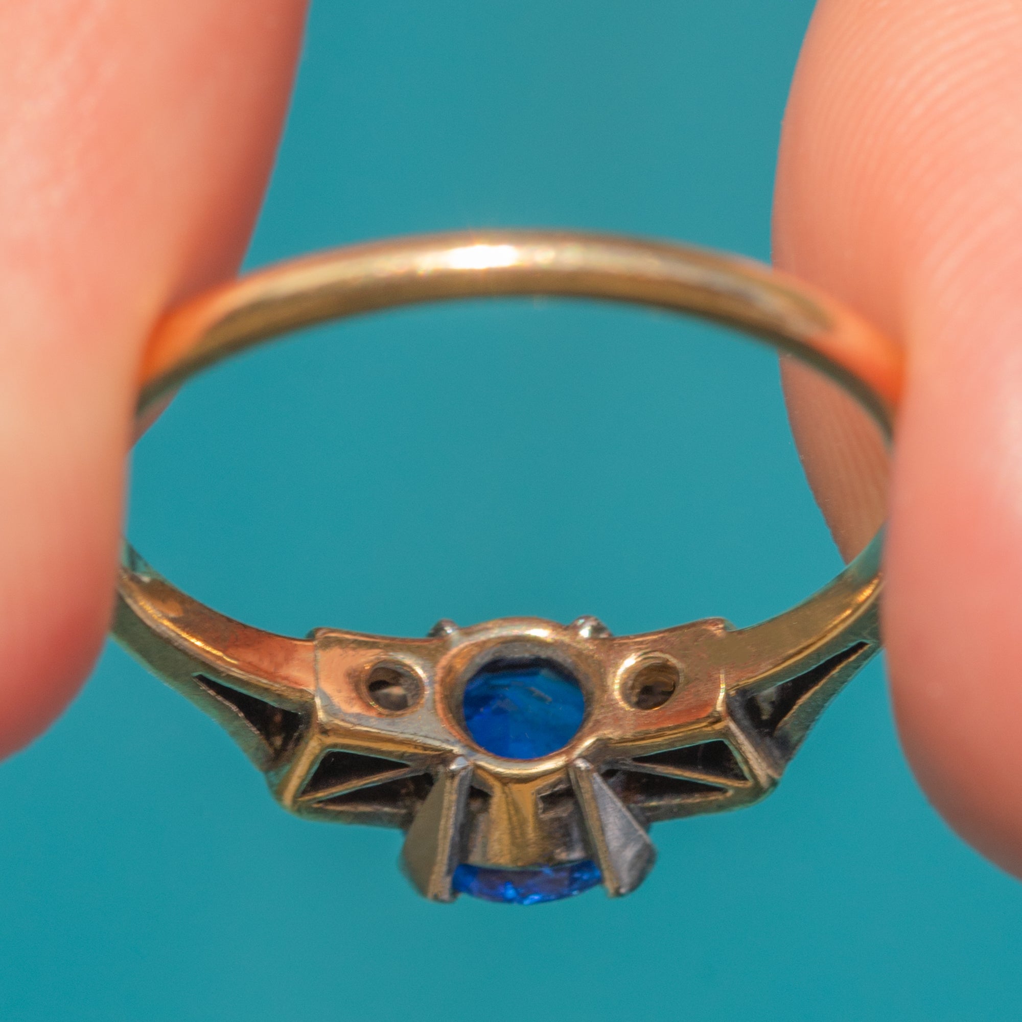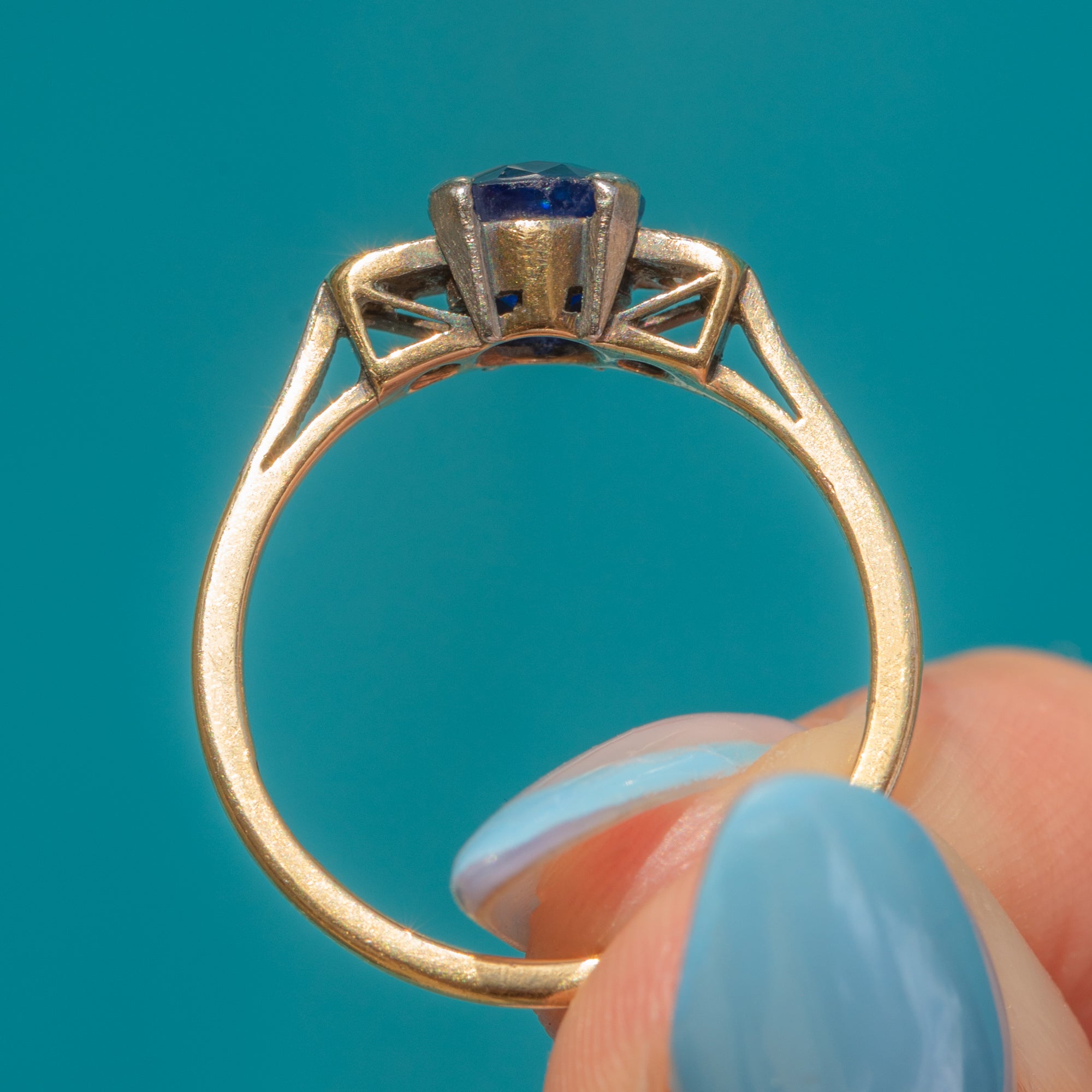 Art Deco 18ct Gold Natural Sapphire Diamond Trilogy Ring