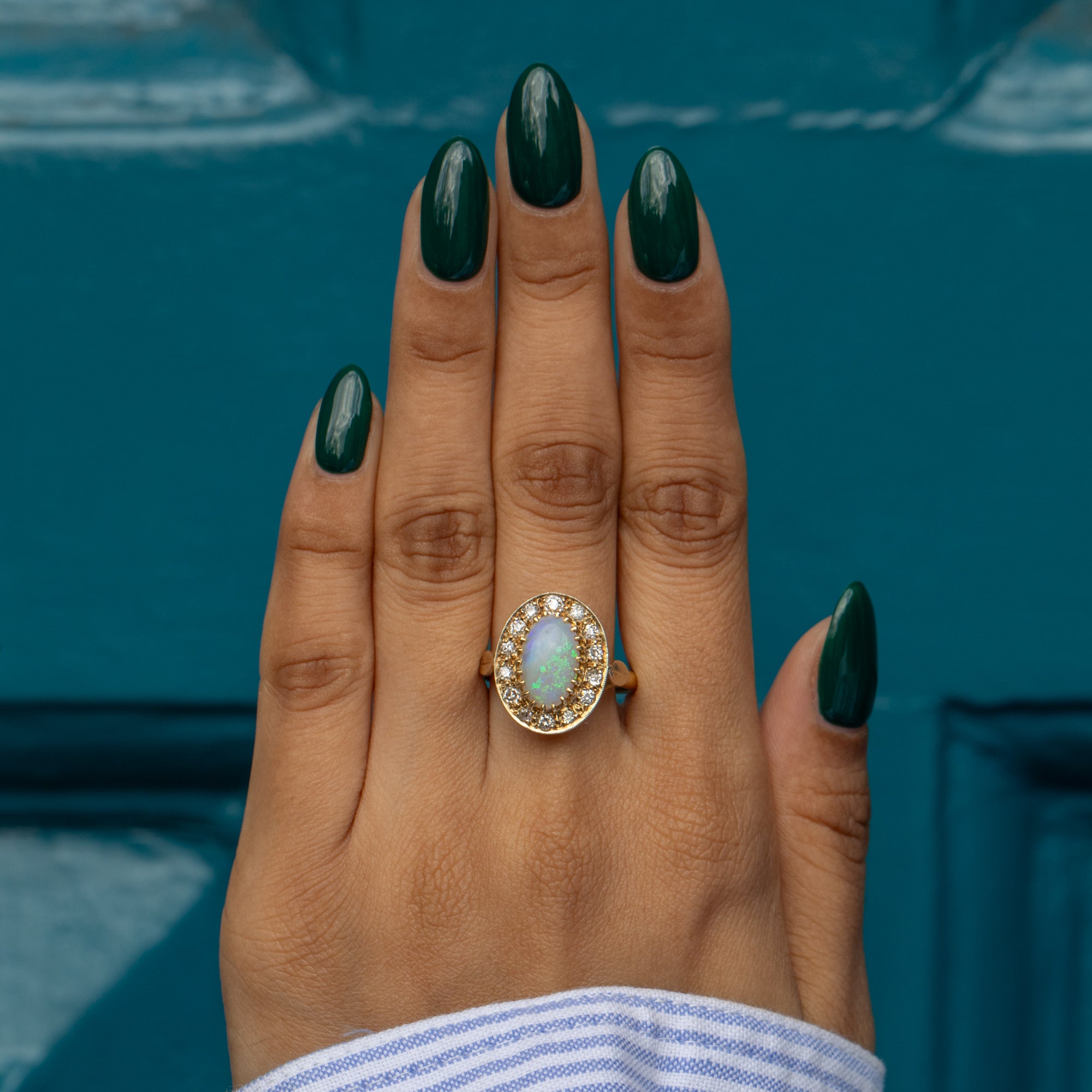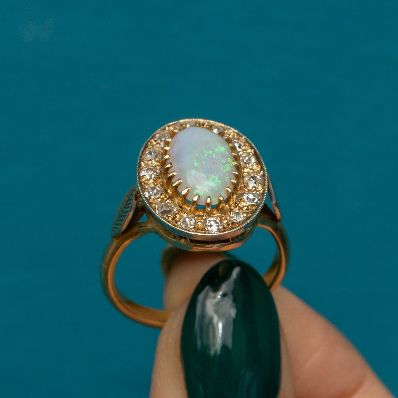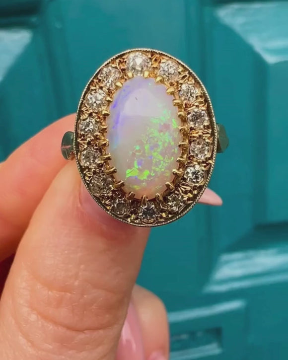 Art Deco 18ct Gold Opal Diamond Cluster Ring, 2.00ct Opal.