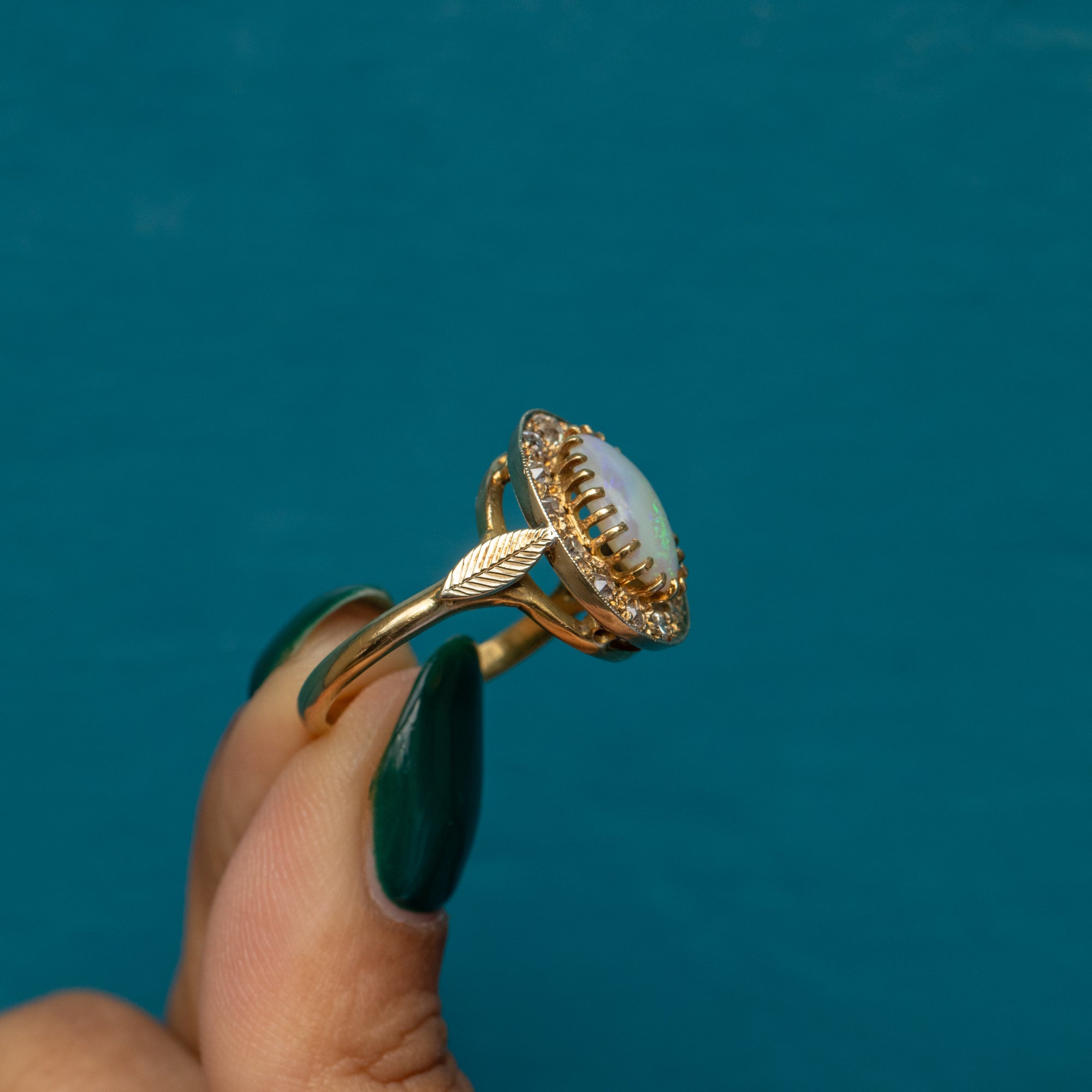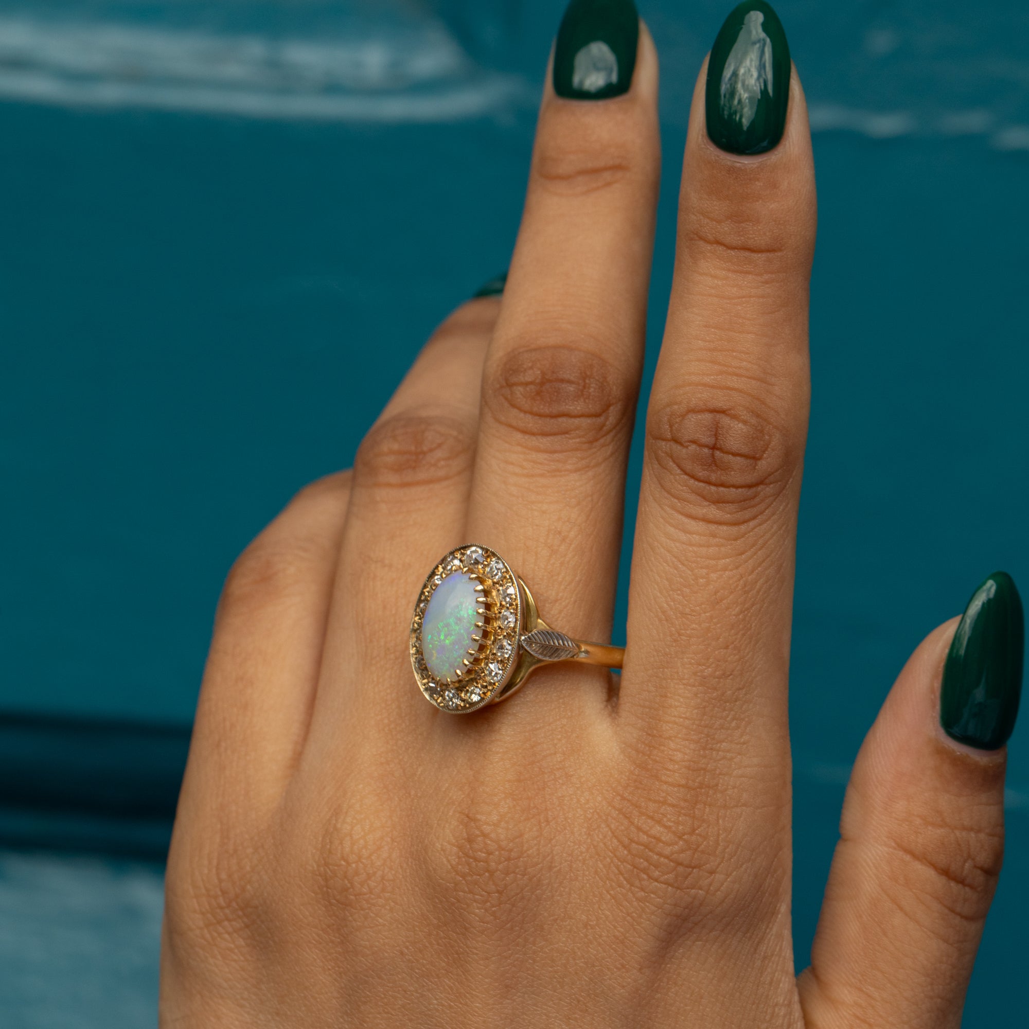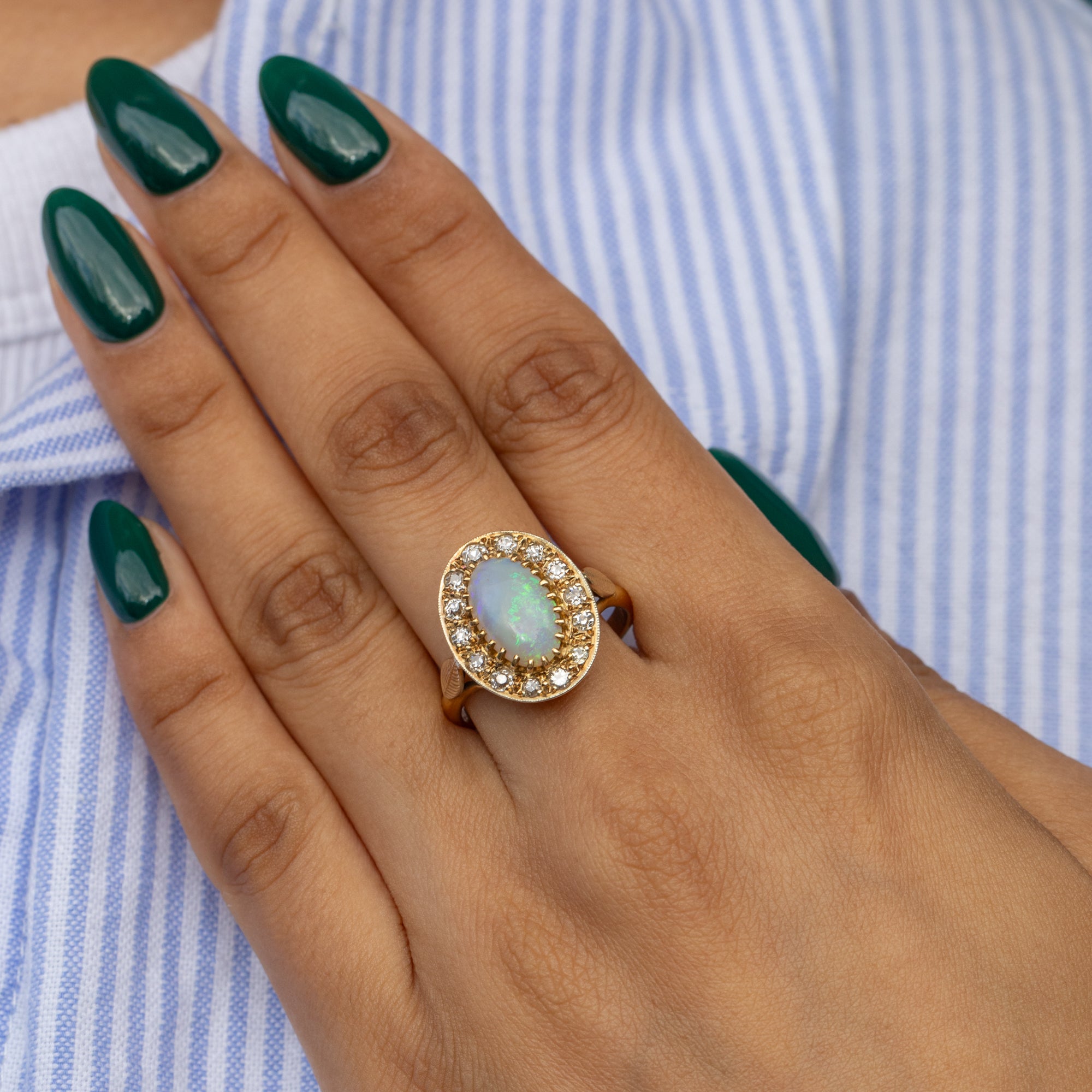 Art Deco 18ct Gold Opal Diamond Cluster Ring, 2.00ct Opal.
