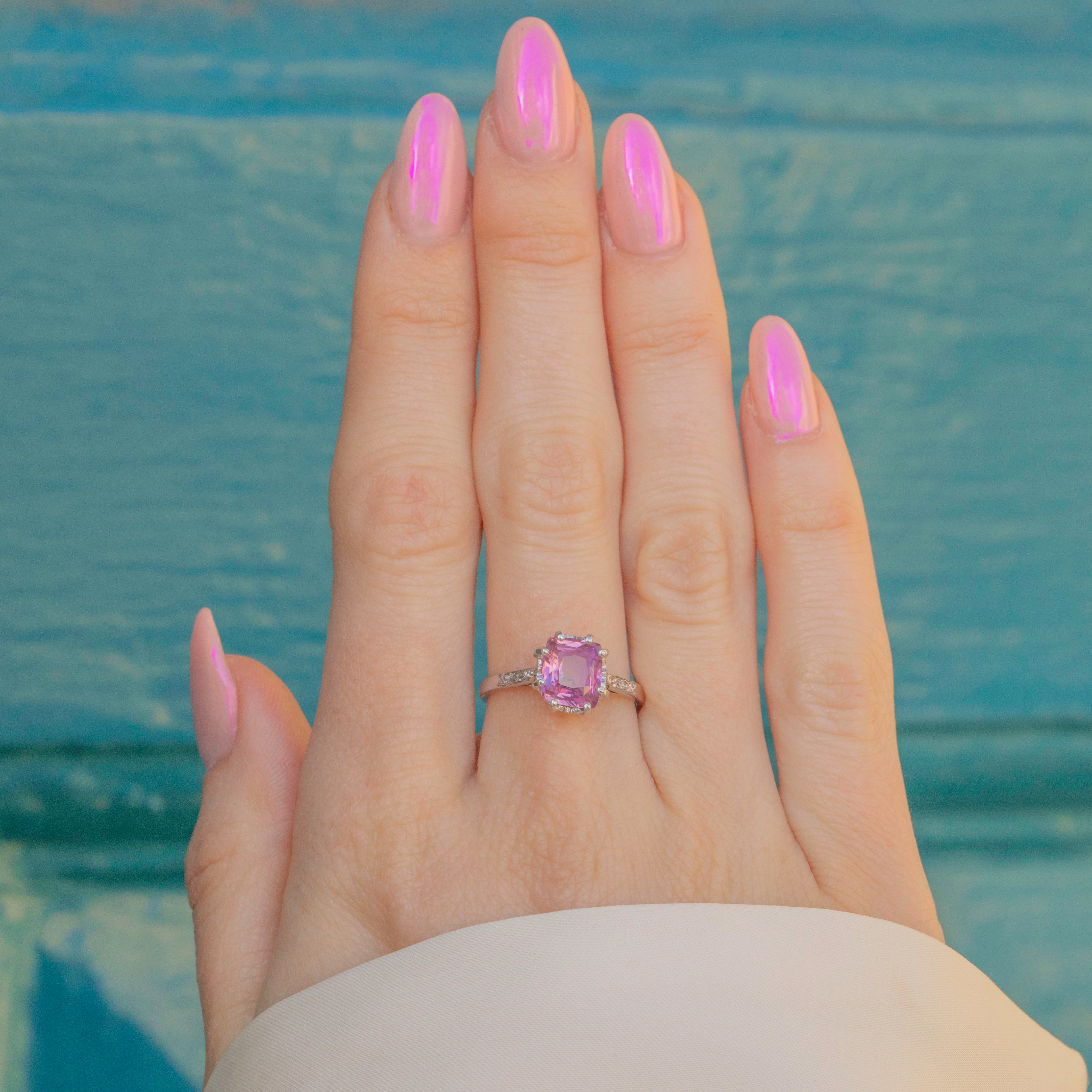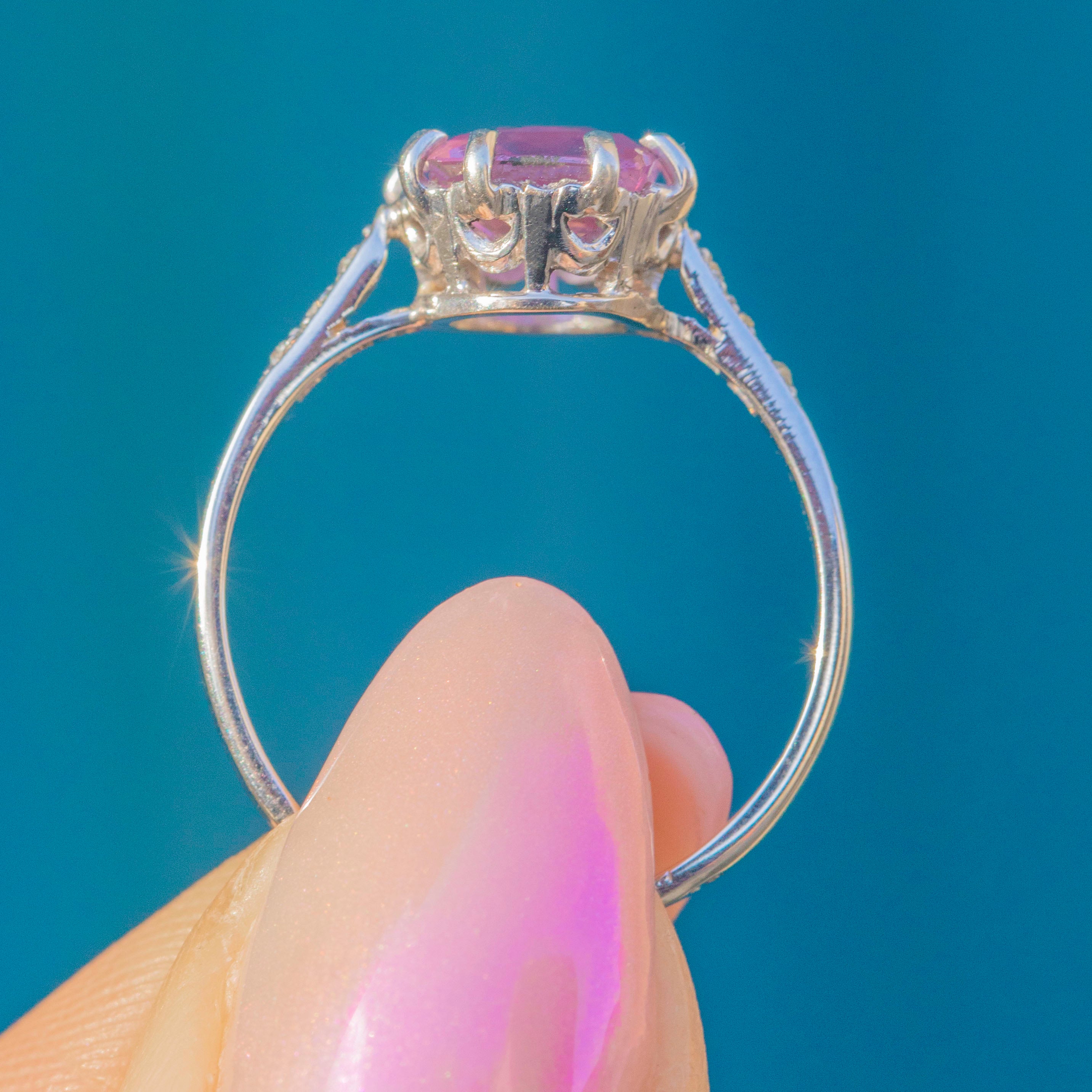 Art Deco 18ct White Gold Pink Sapphire Ring 1.50ct, Diamond Shoulders
