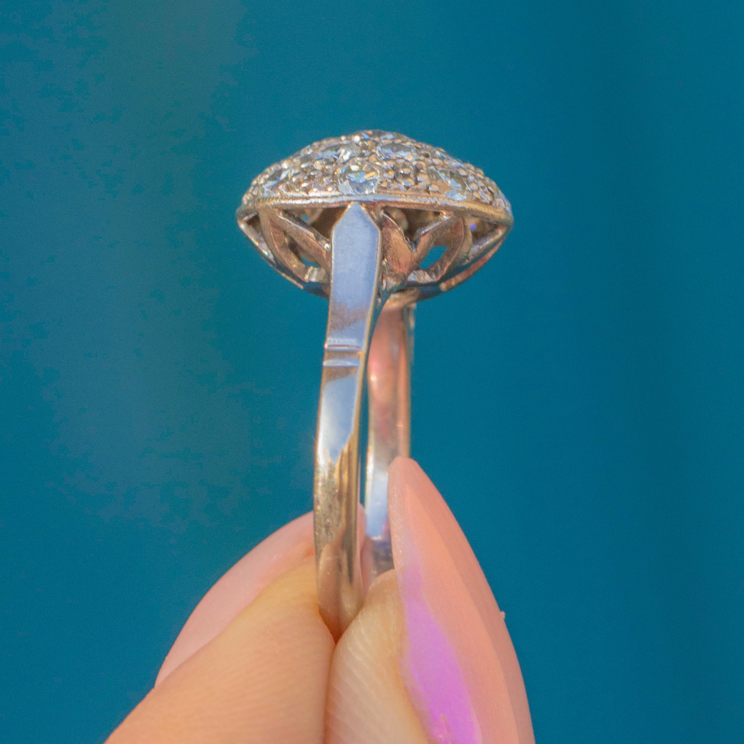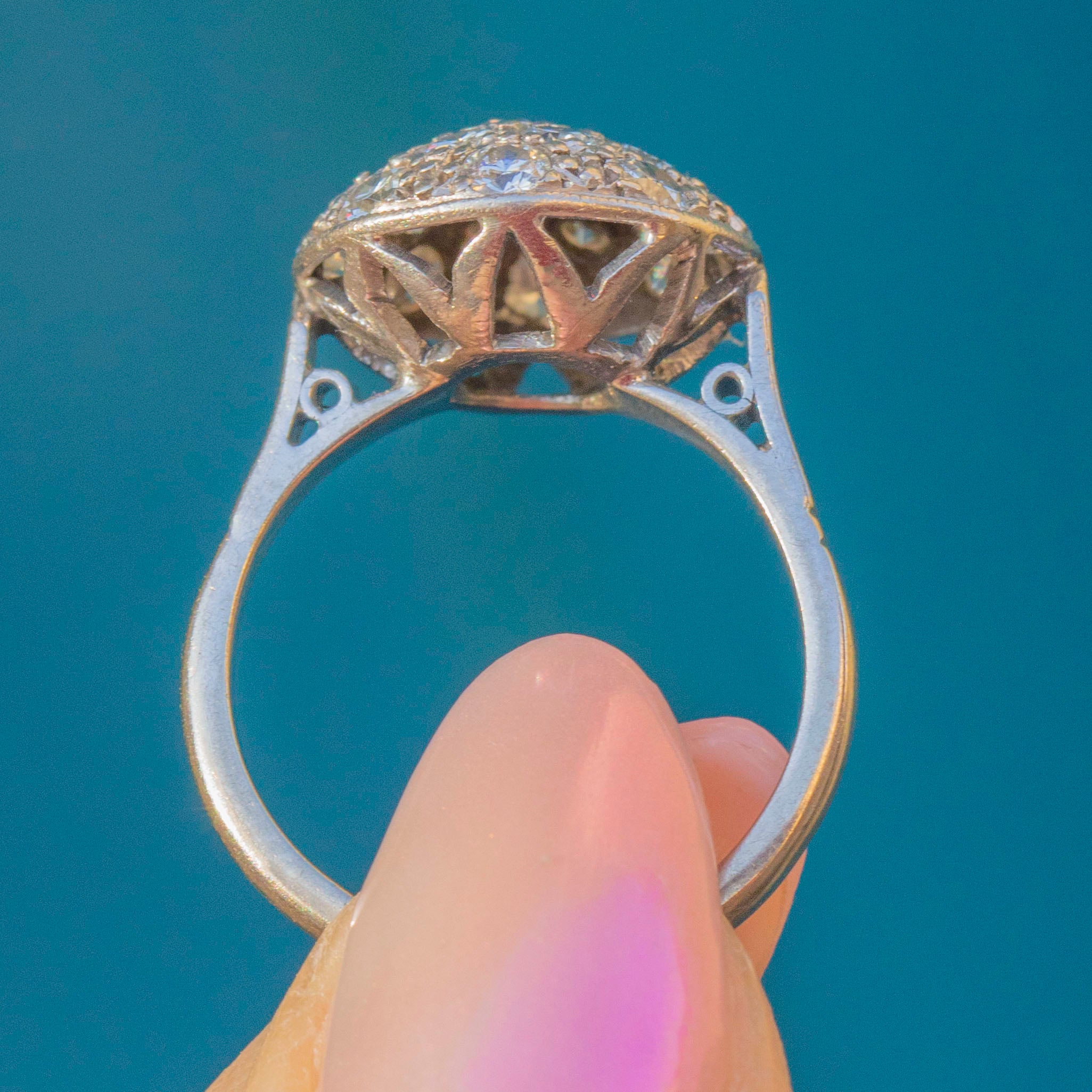 Art Deco 18ct Gold & Platinum Diamond Bombe Cluster Ring, 1.16ct