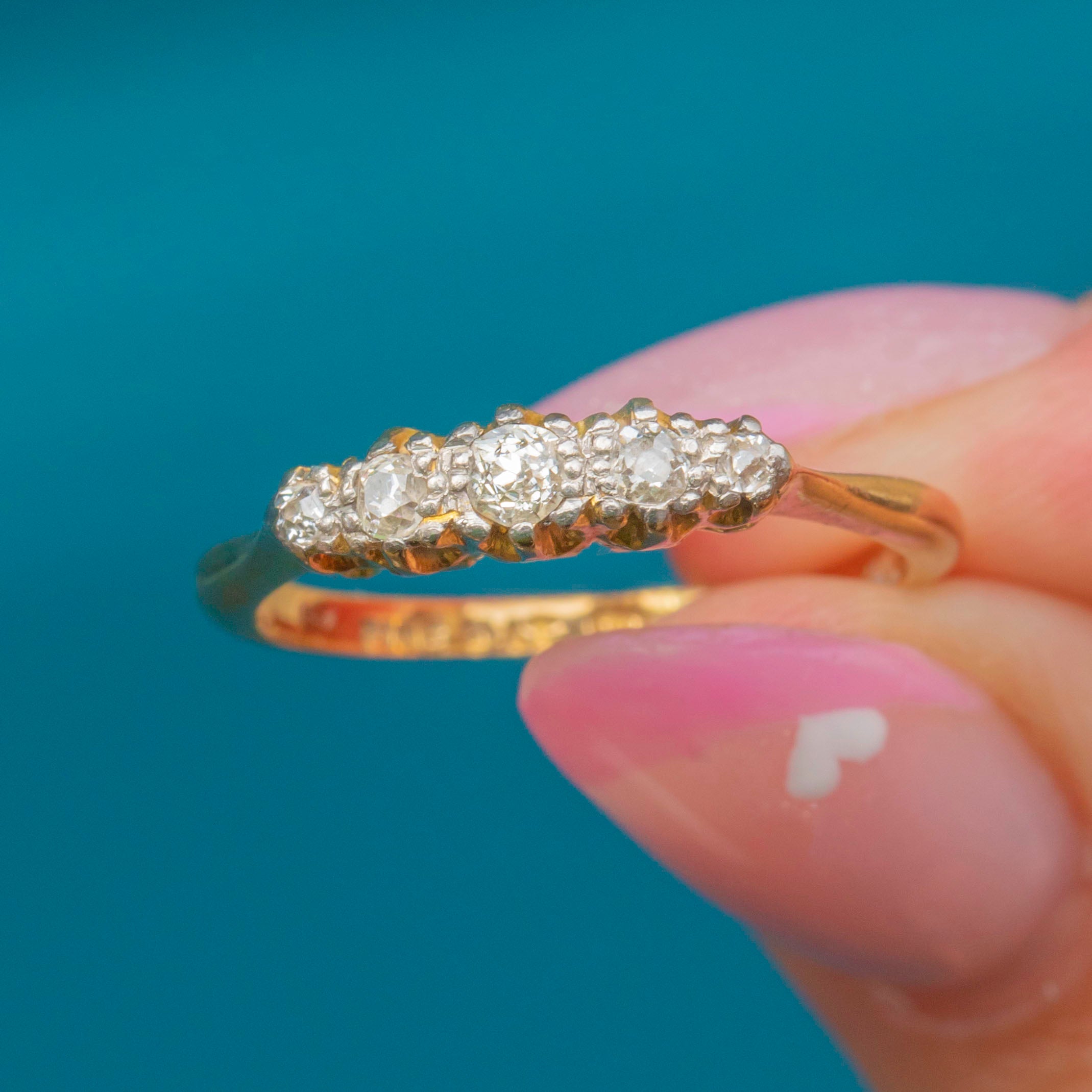 Art Deco 18ct Gold & Platinum Diamond Five-Stone Ring