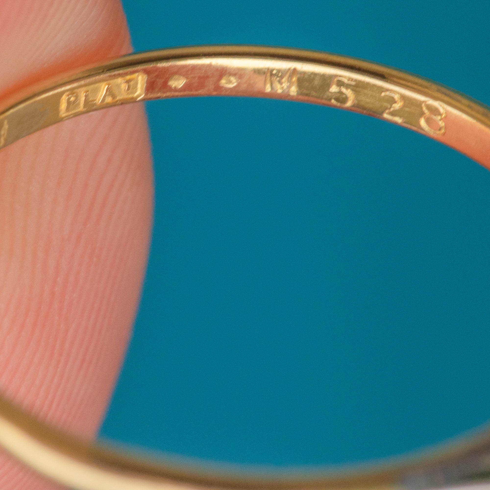 MATERIALS: Tests as 18ct Yellow Gold, Platinum settings, Diamond (0.15ct).