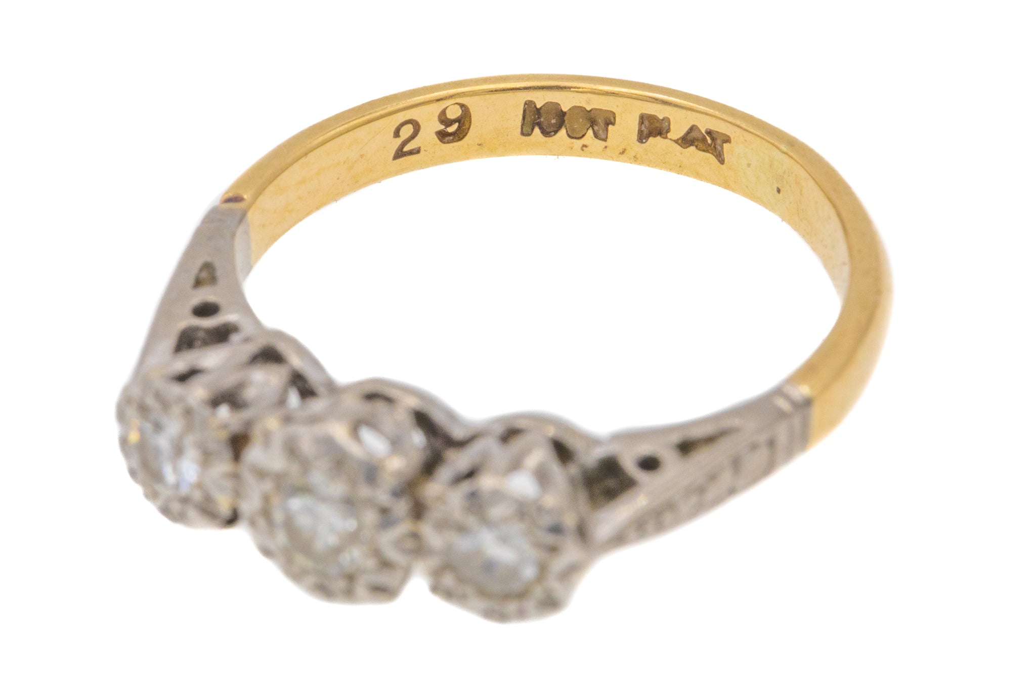 Art Deco 18ct Gold & Platinum Diamond Trilogy Engagement Ring