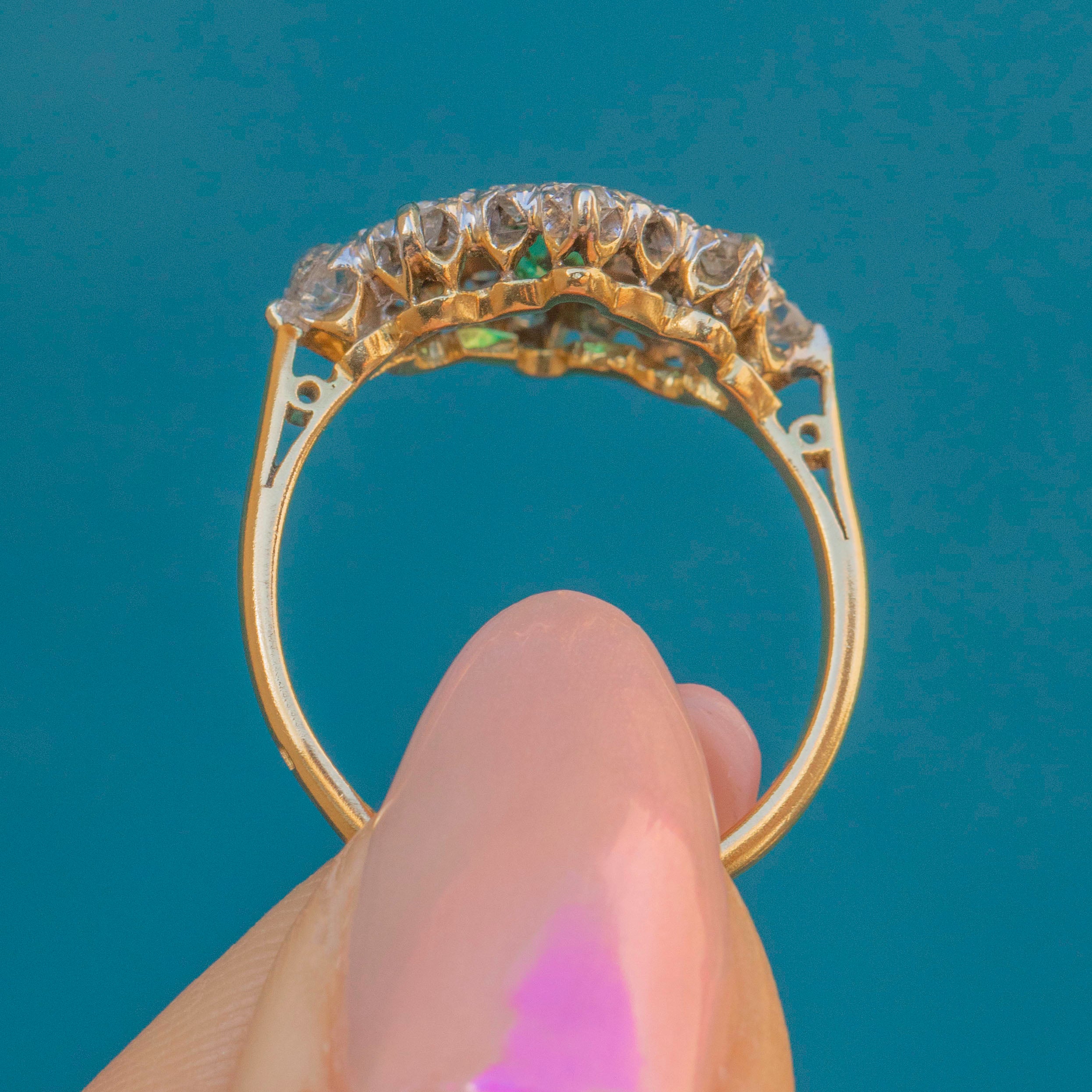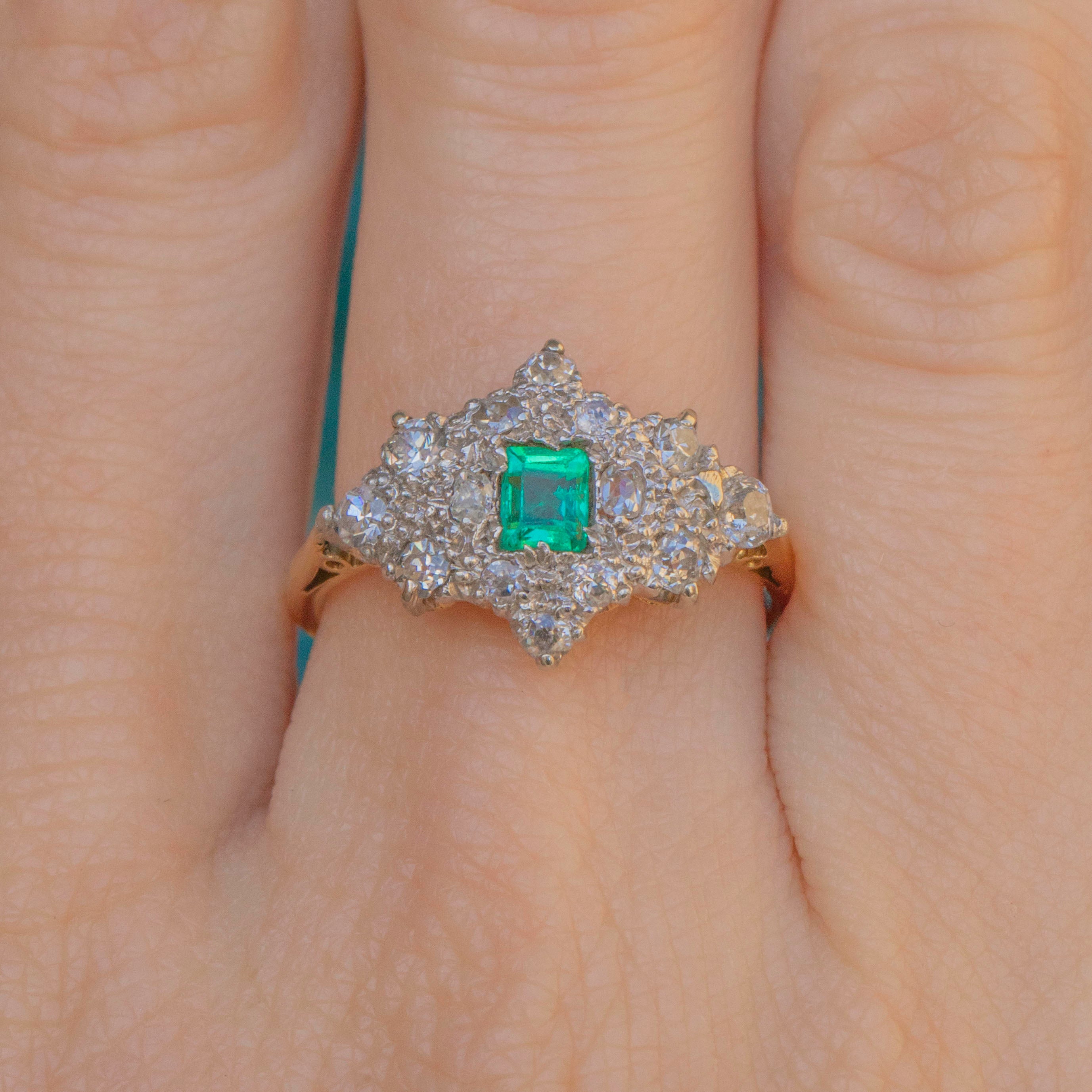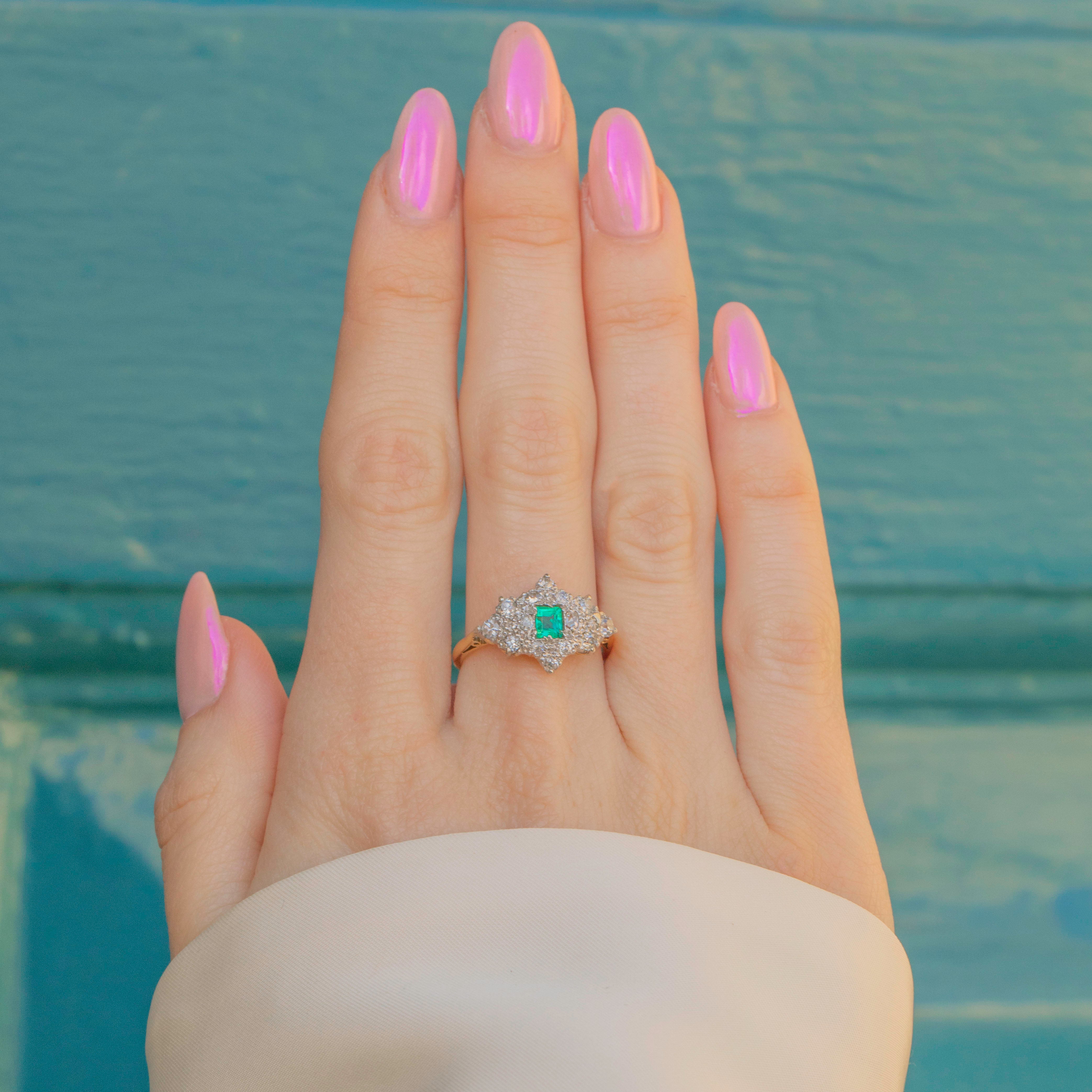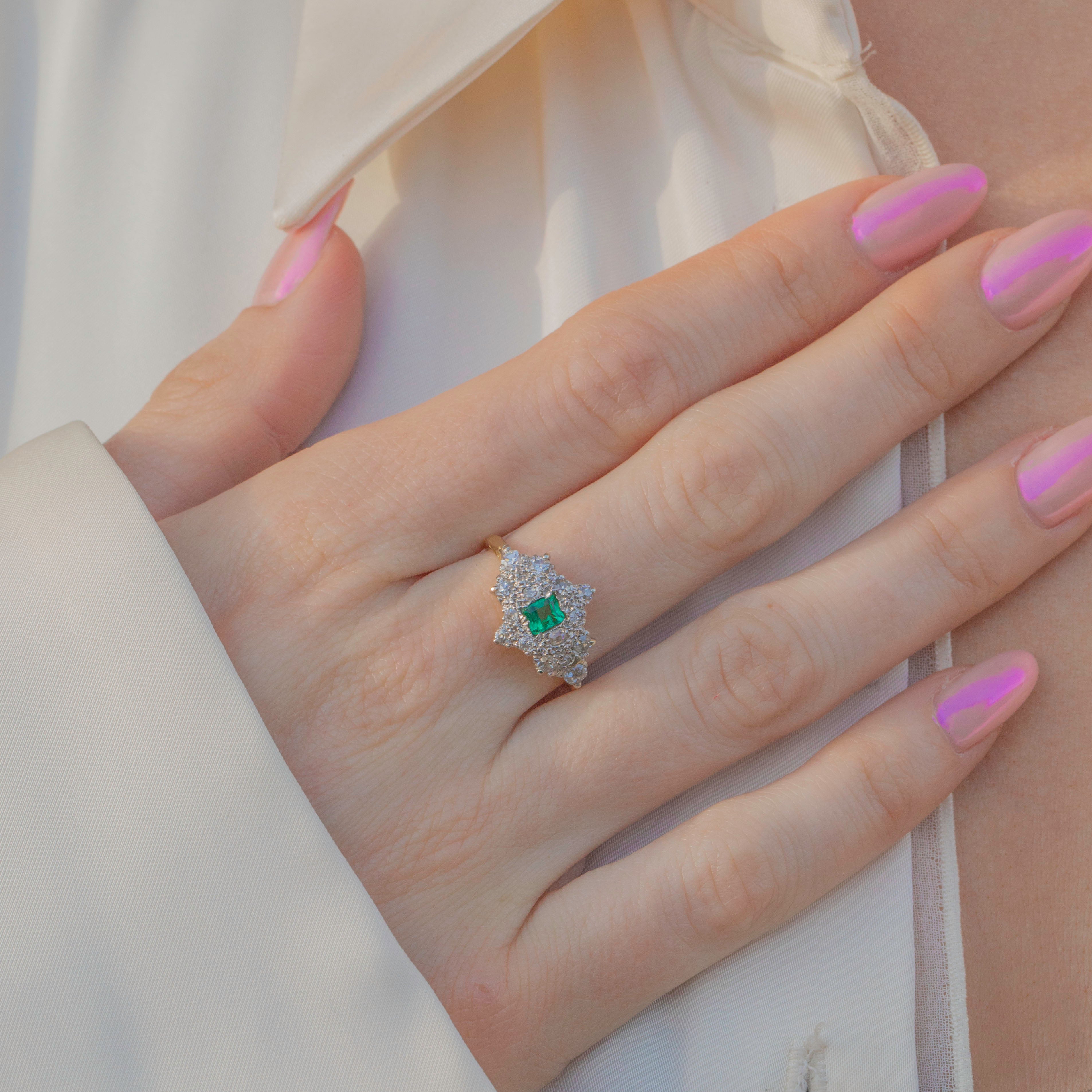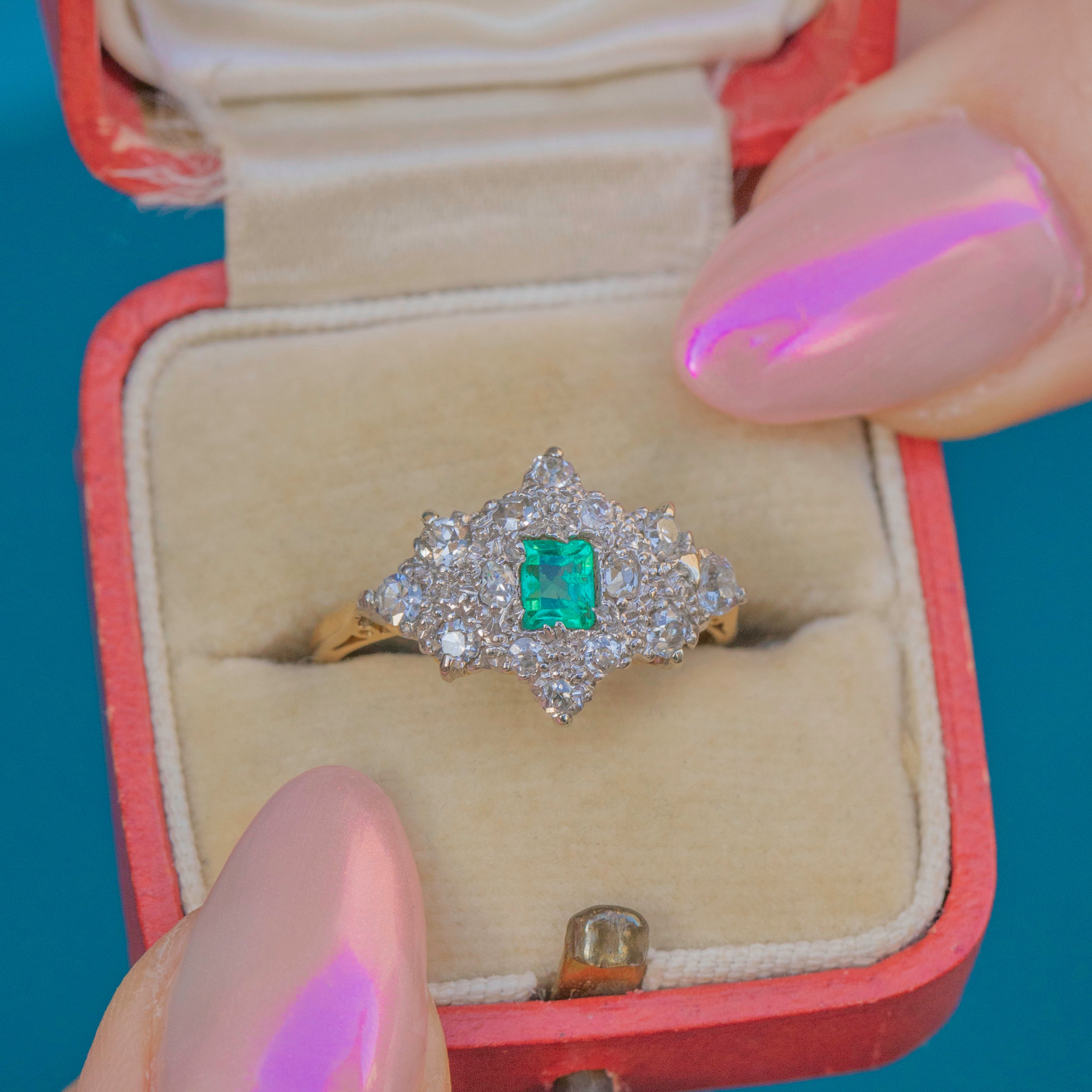 This timeless vintage ring combines one of our favourite duos, a zingy green Emerald and sparkly Diamonds, for a match made in heaven - you will continue to wear and love this Art Deco ring forever!