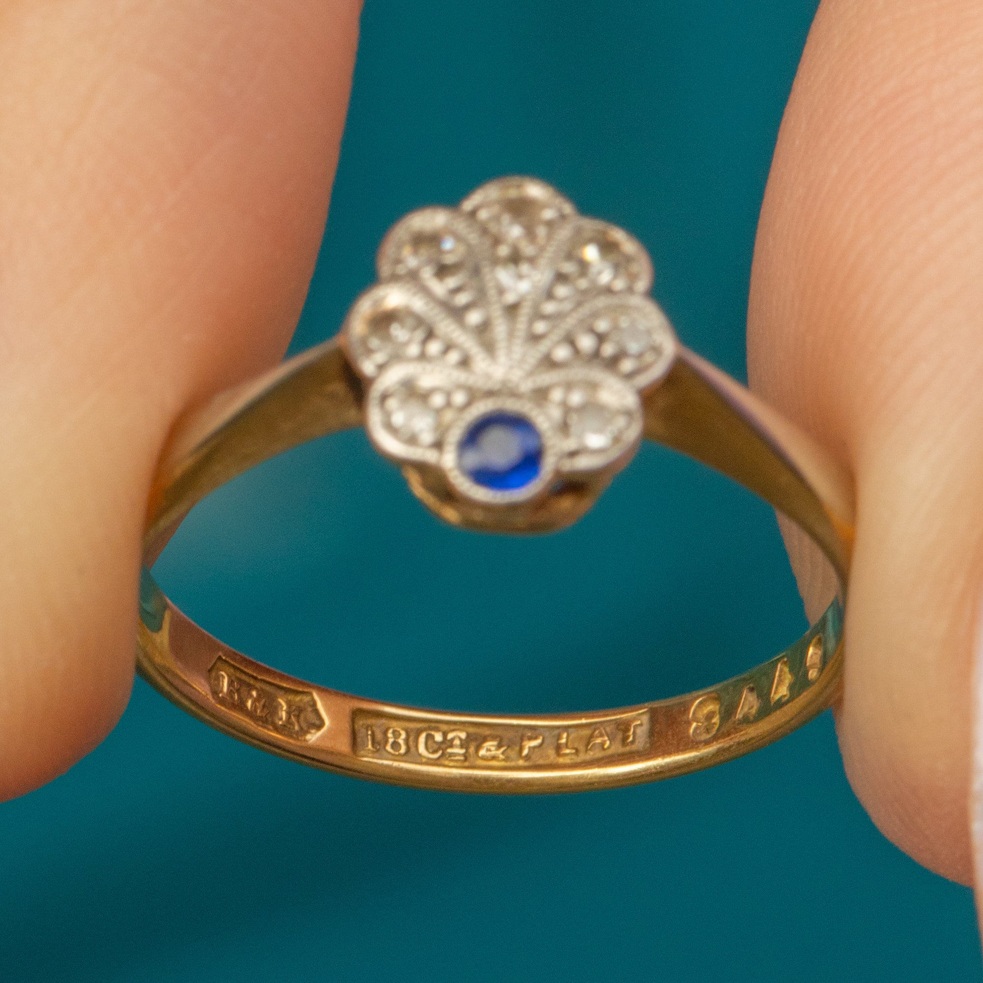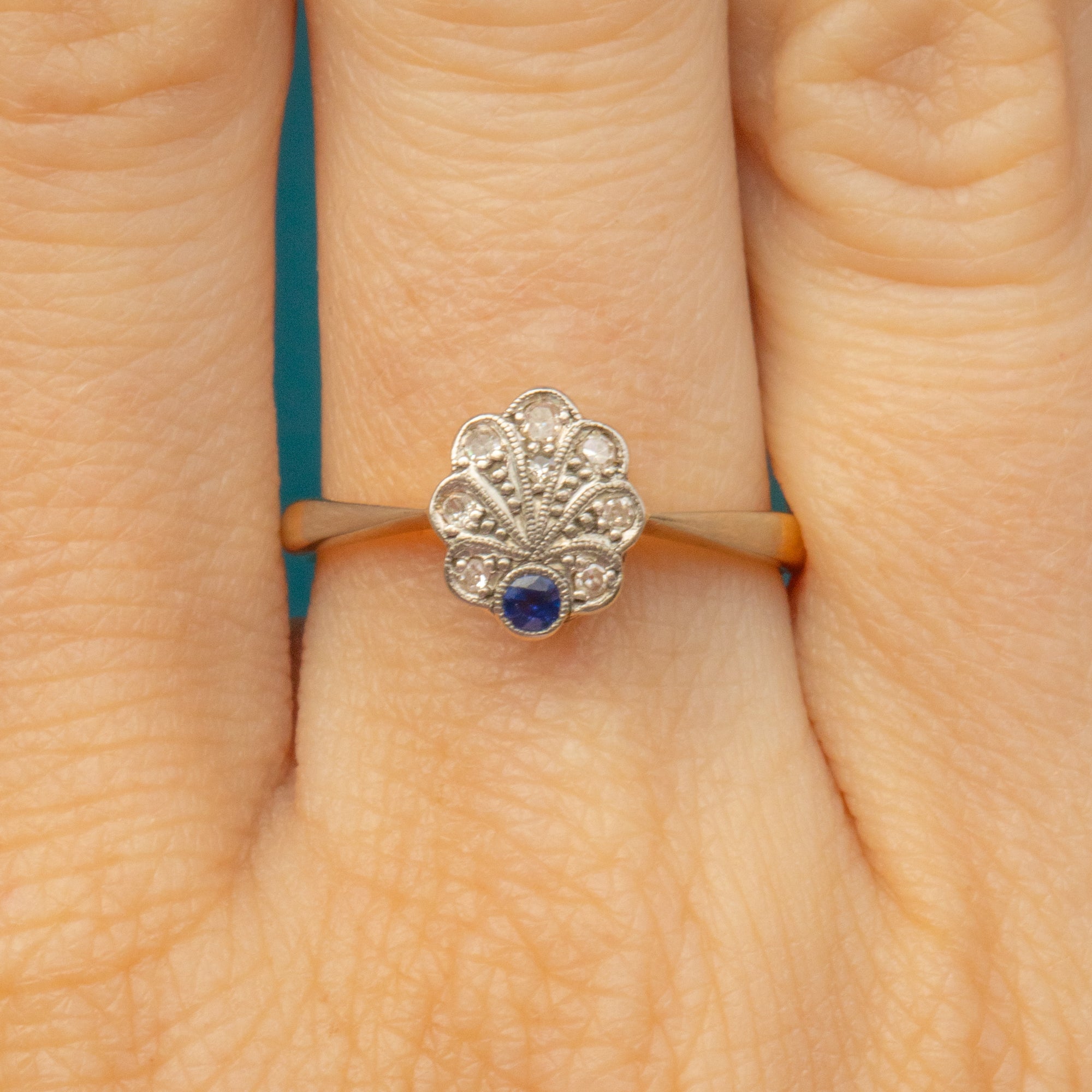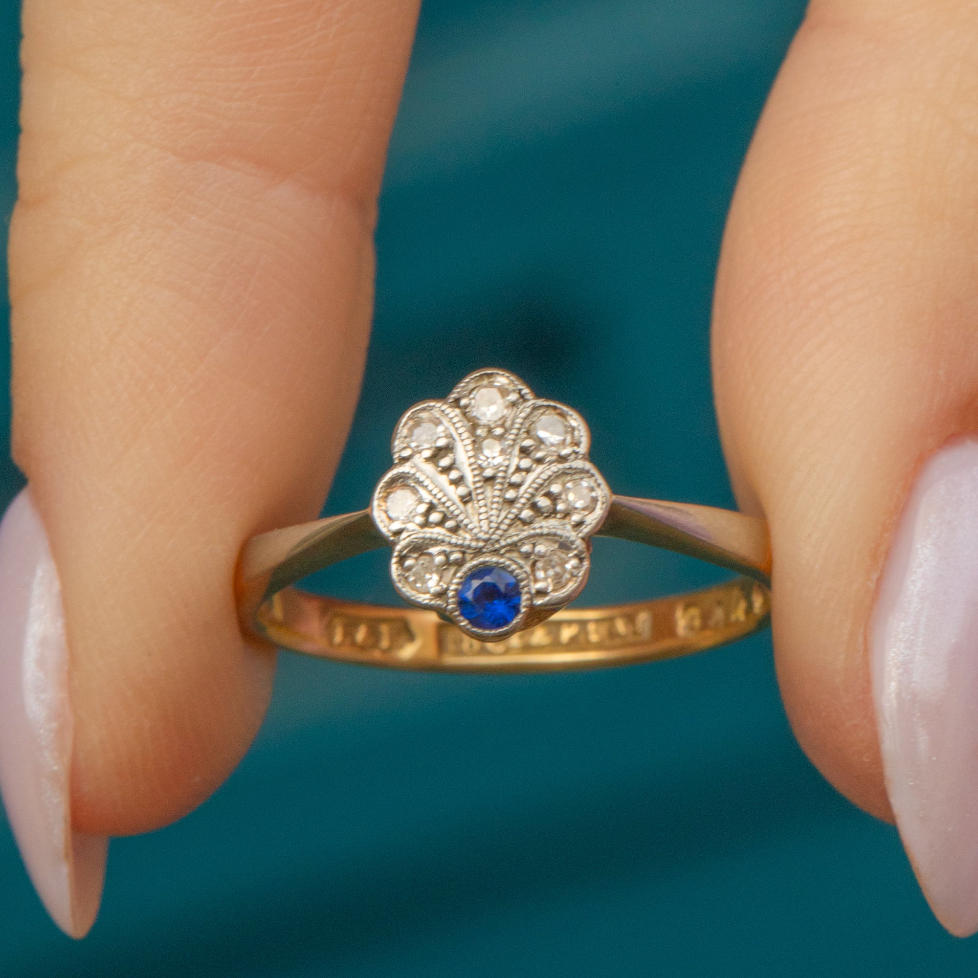 Art Deco 18ct Gold & Platinum Sapphire Diamond Fan Ring