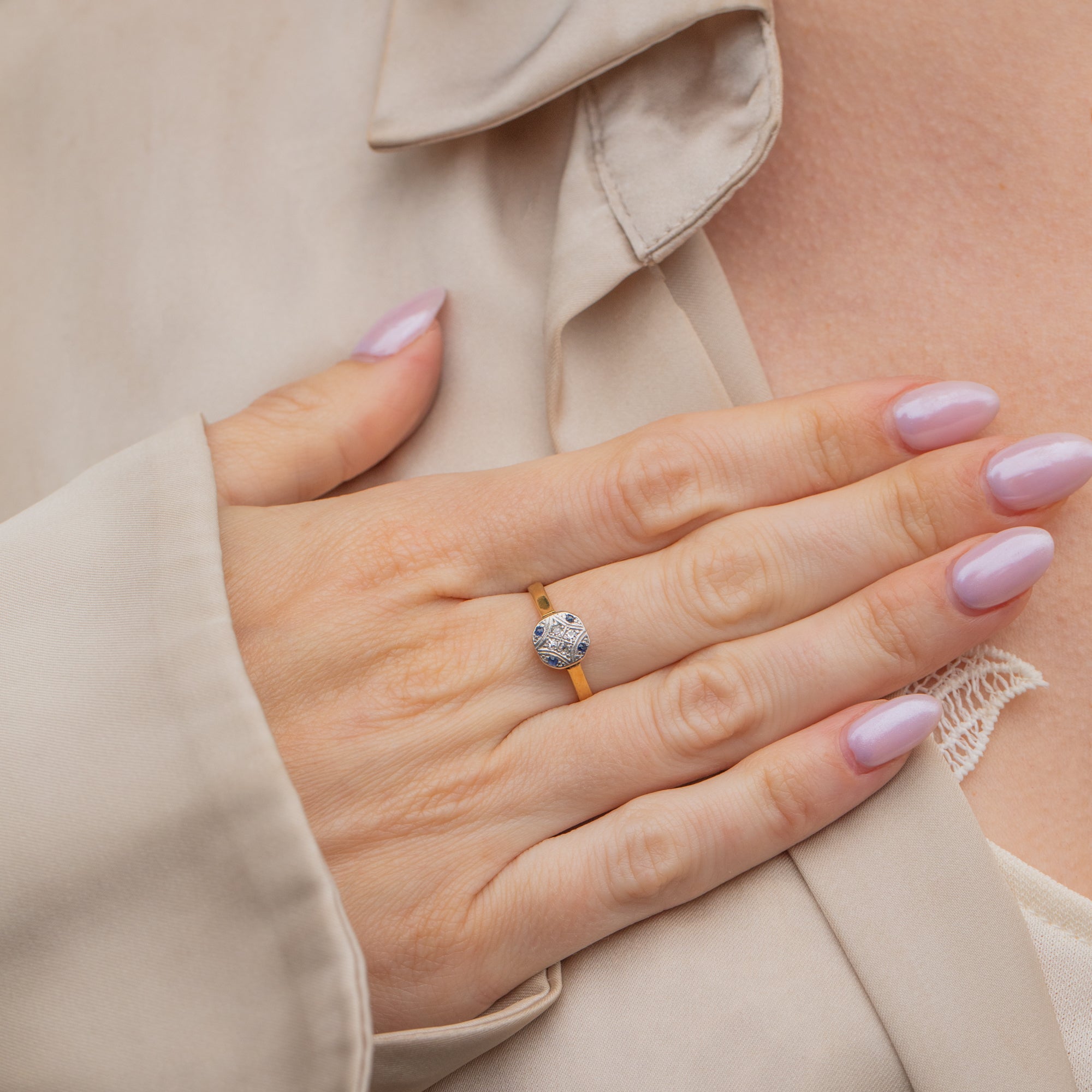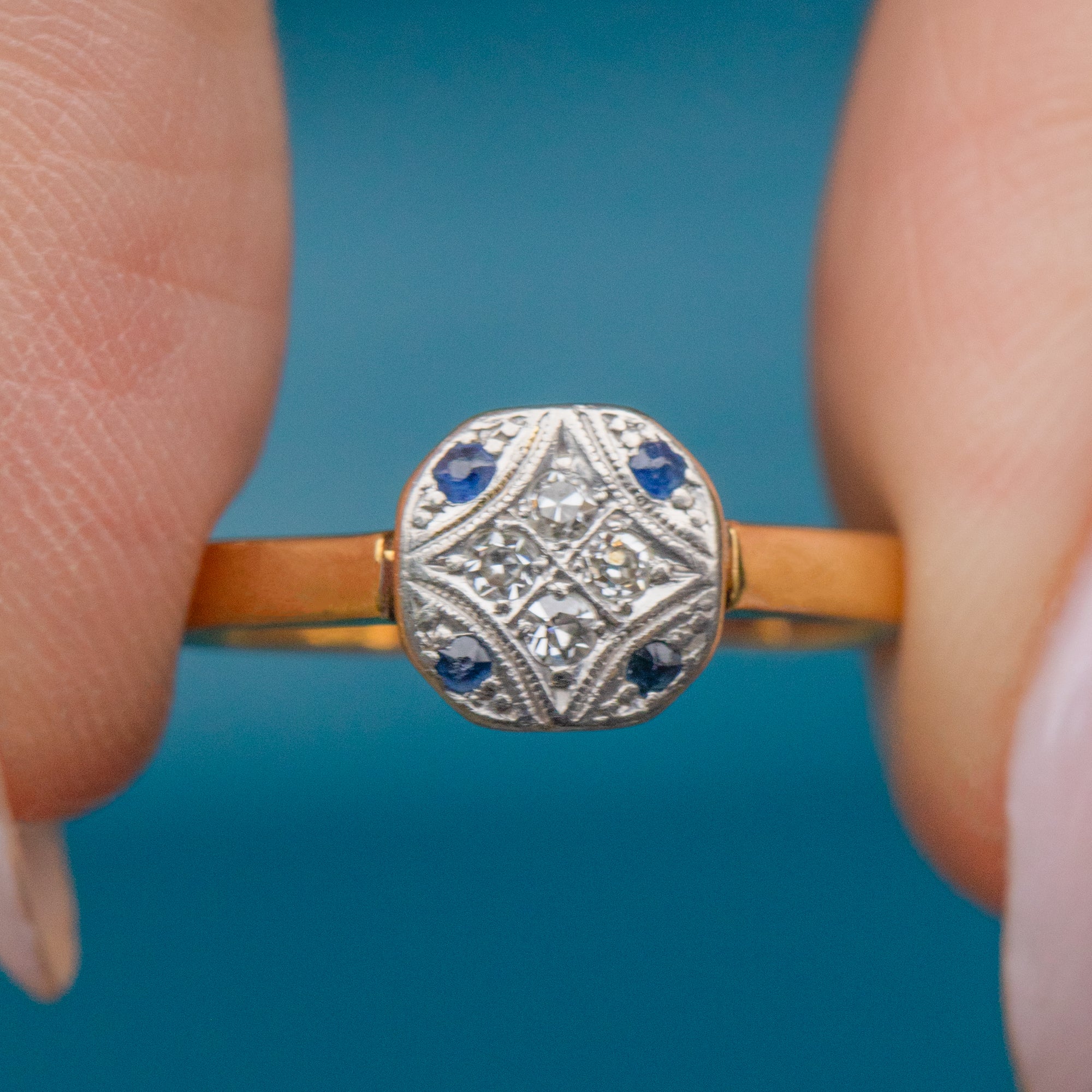 Art Deco 18ct Gold & Platinum Sapphire Diamond Ring