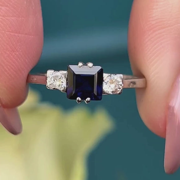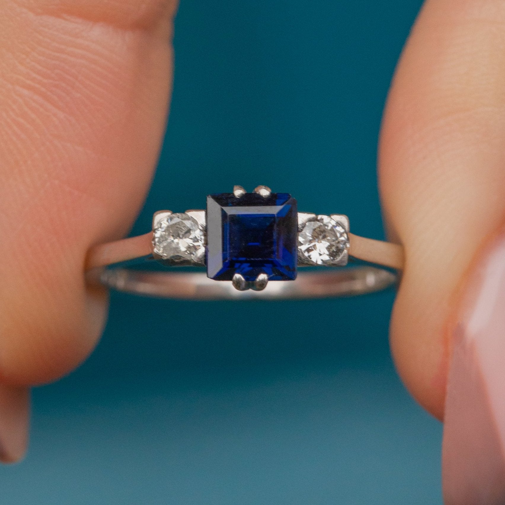 Art Deco 18ct Gold & Platinum Sapphire Diamond Trilogy Ring