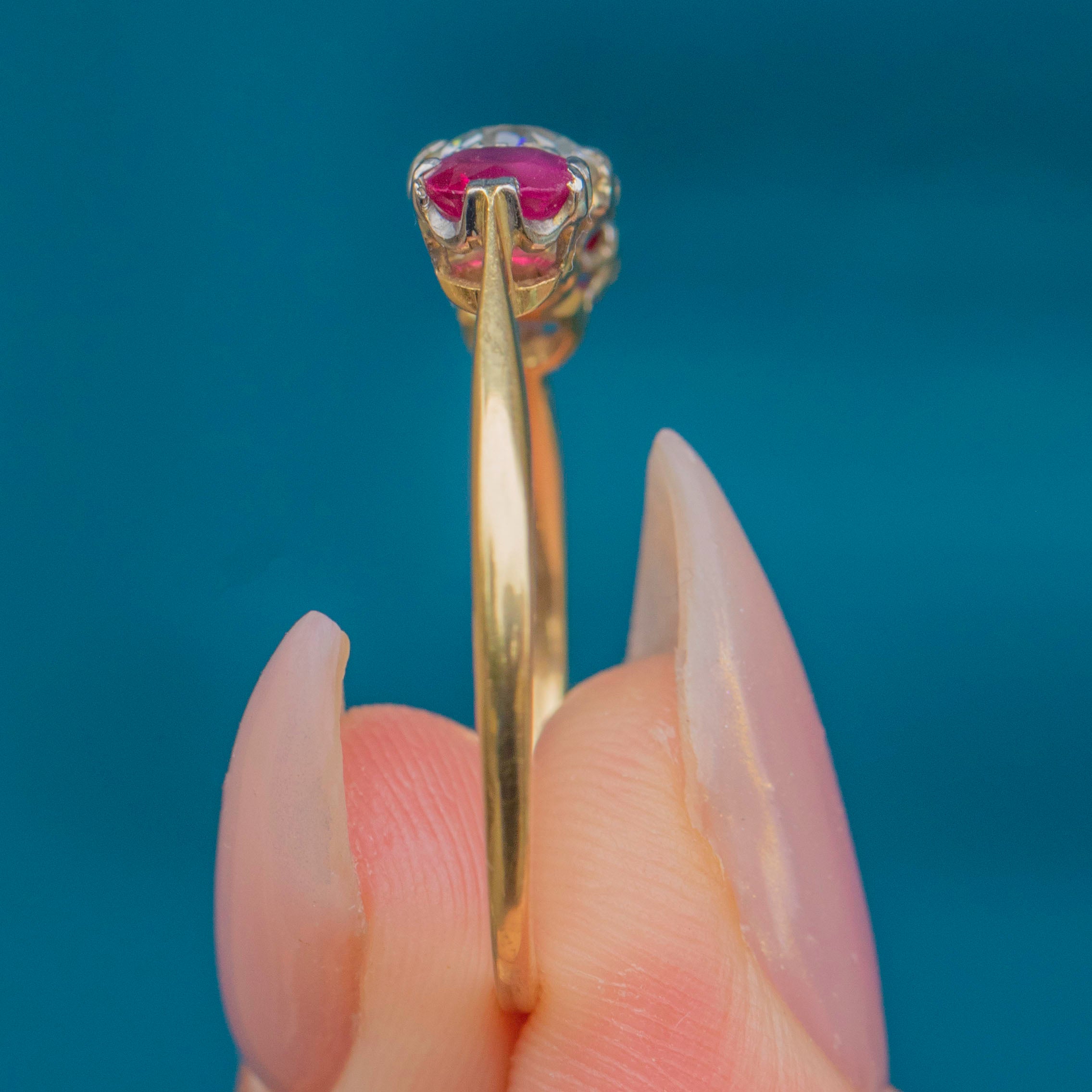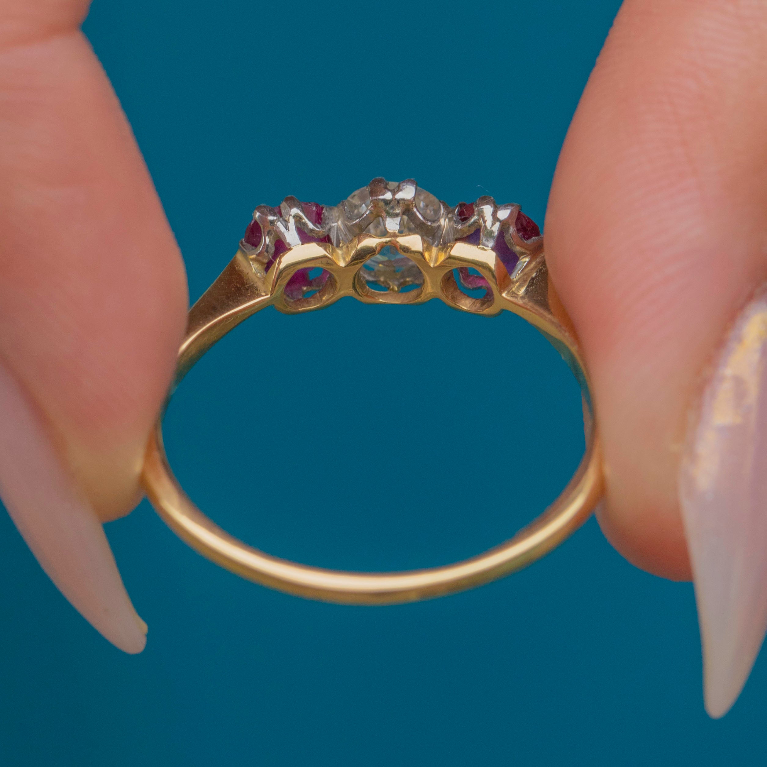 Art Deco 18ct Gold Ruby and Diamond Trilogy Engagement Ring