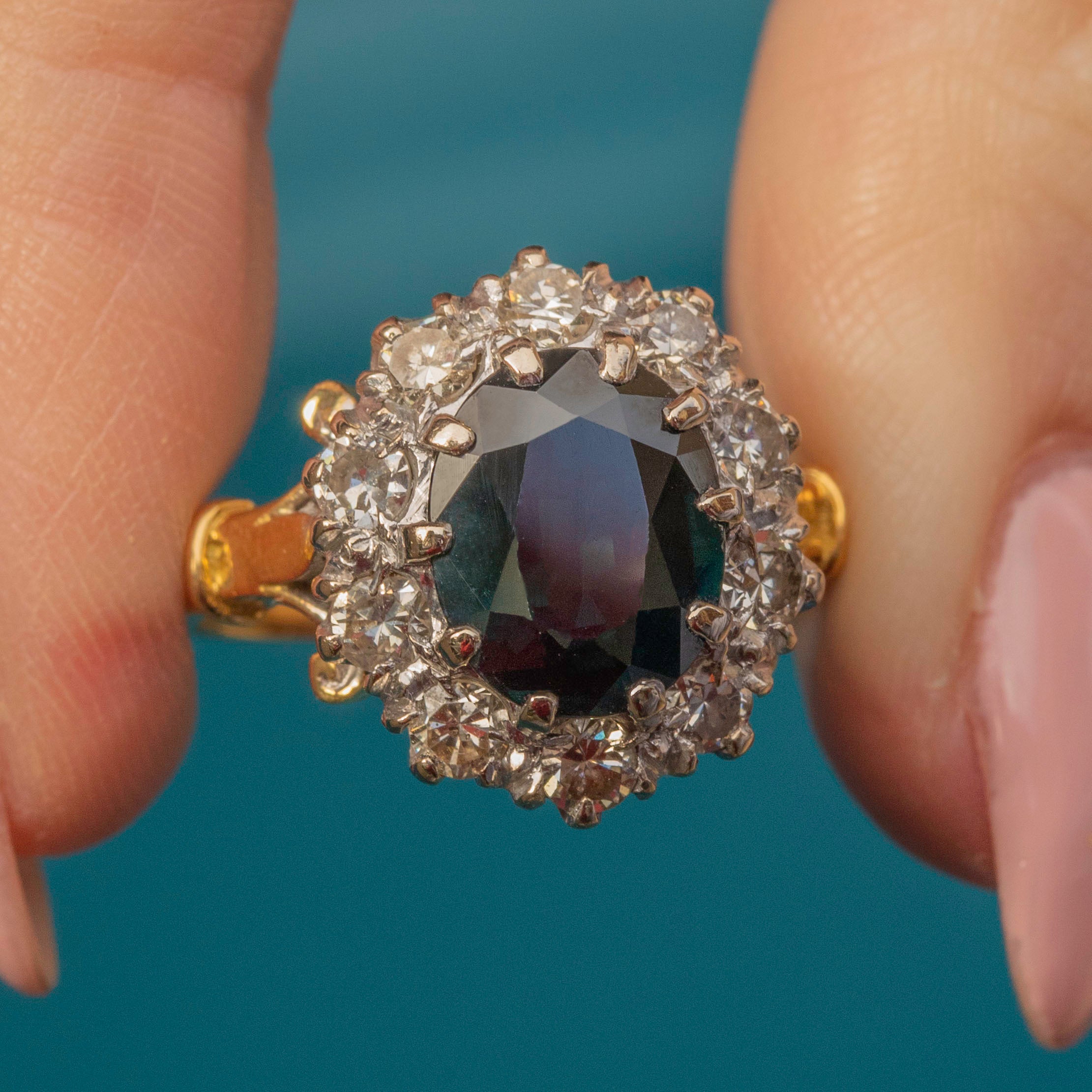 Art Deco 18ct Gold Sapphire Diamond Cluster Ring, 1.90ct Sapphire