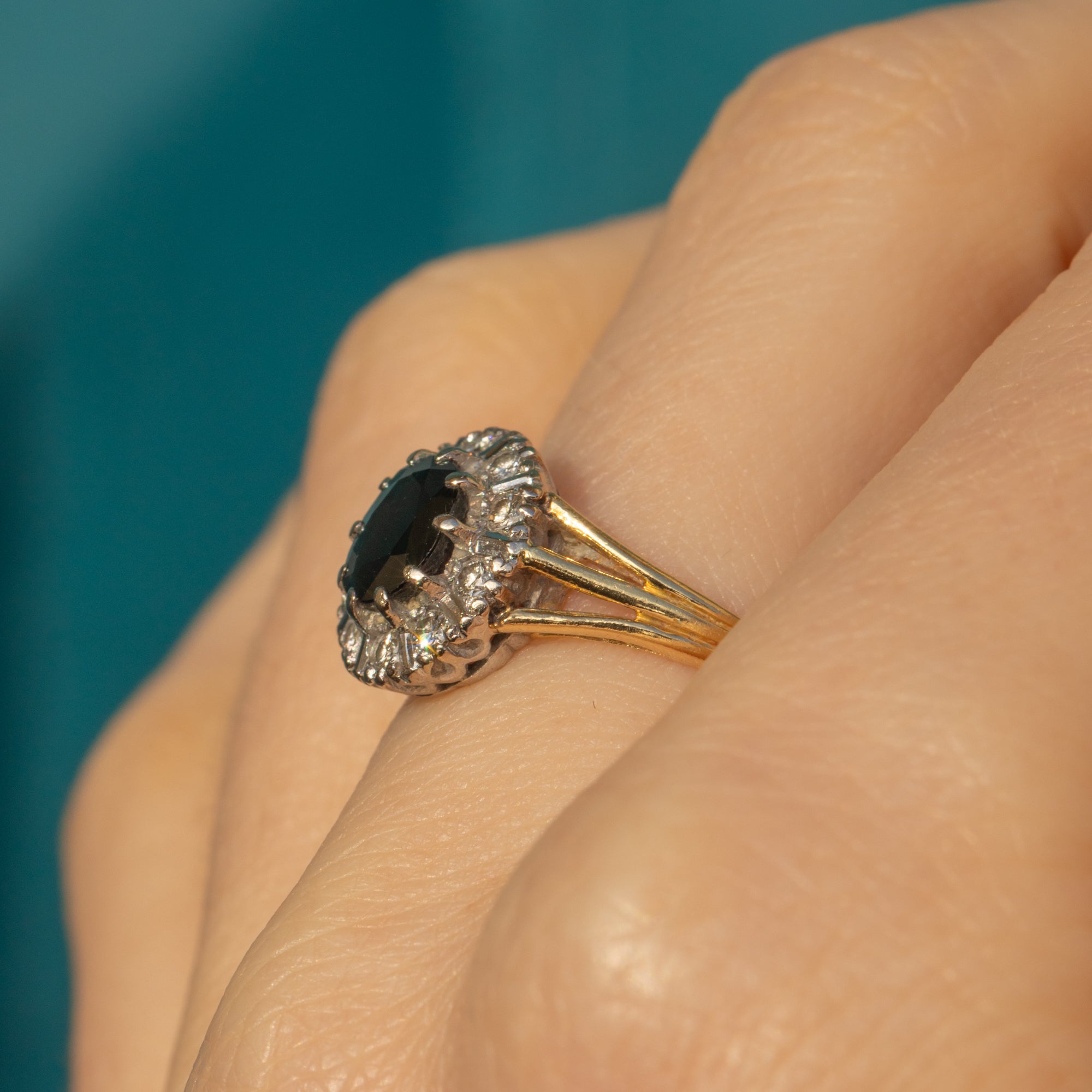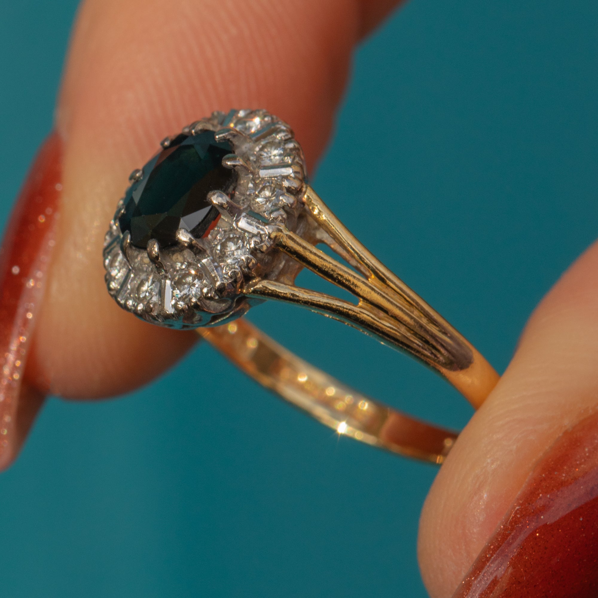 This Art Deco 18ct Gold Sapphire Diamond cluster ring is an antique delight!