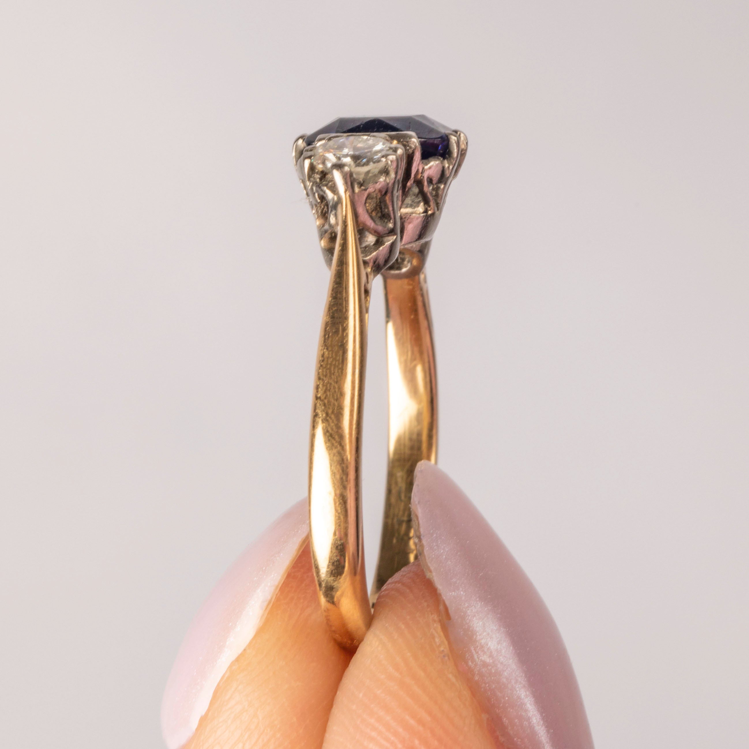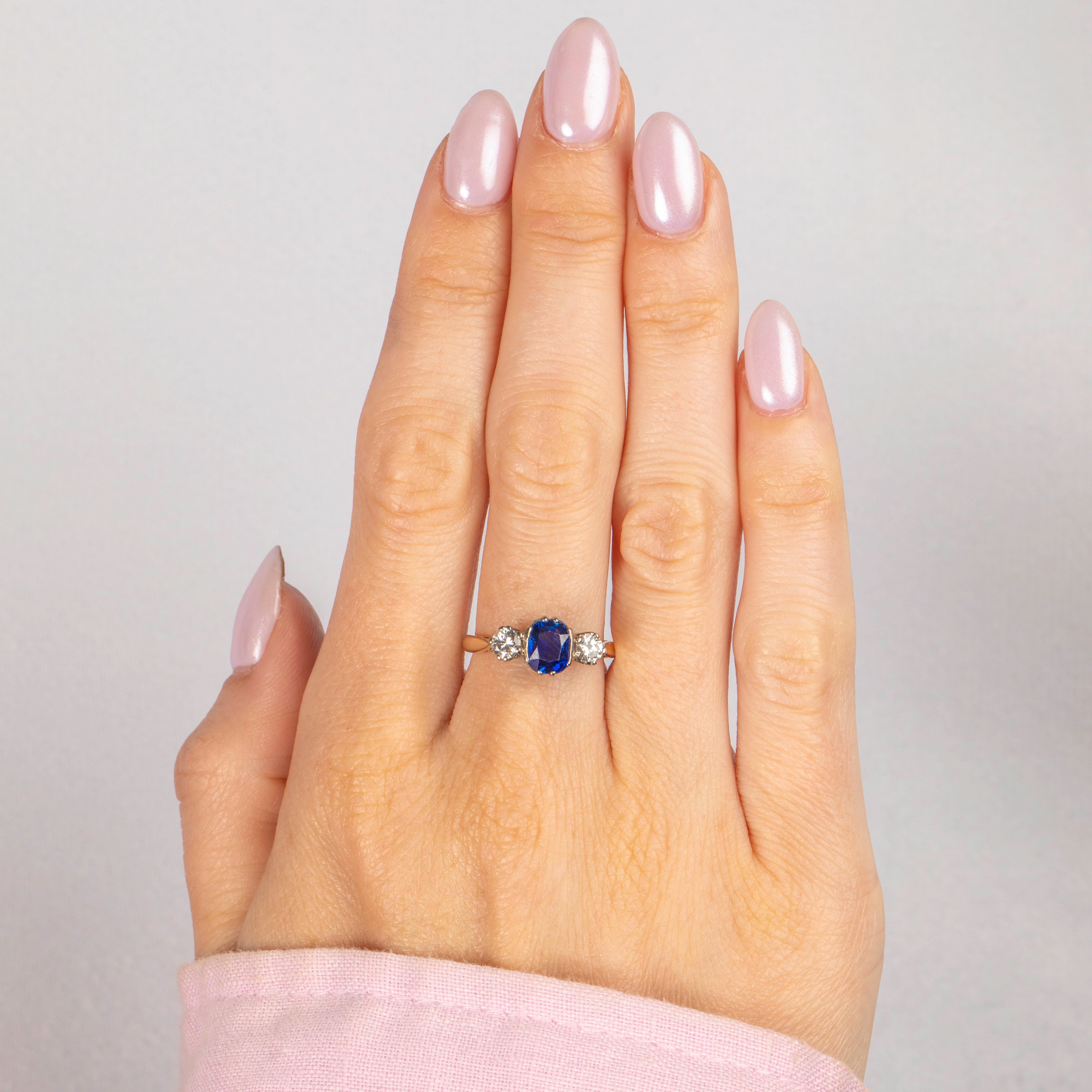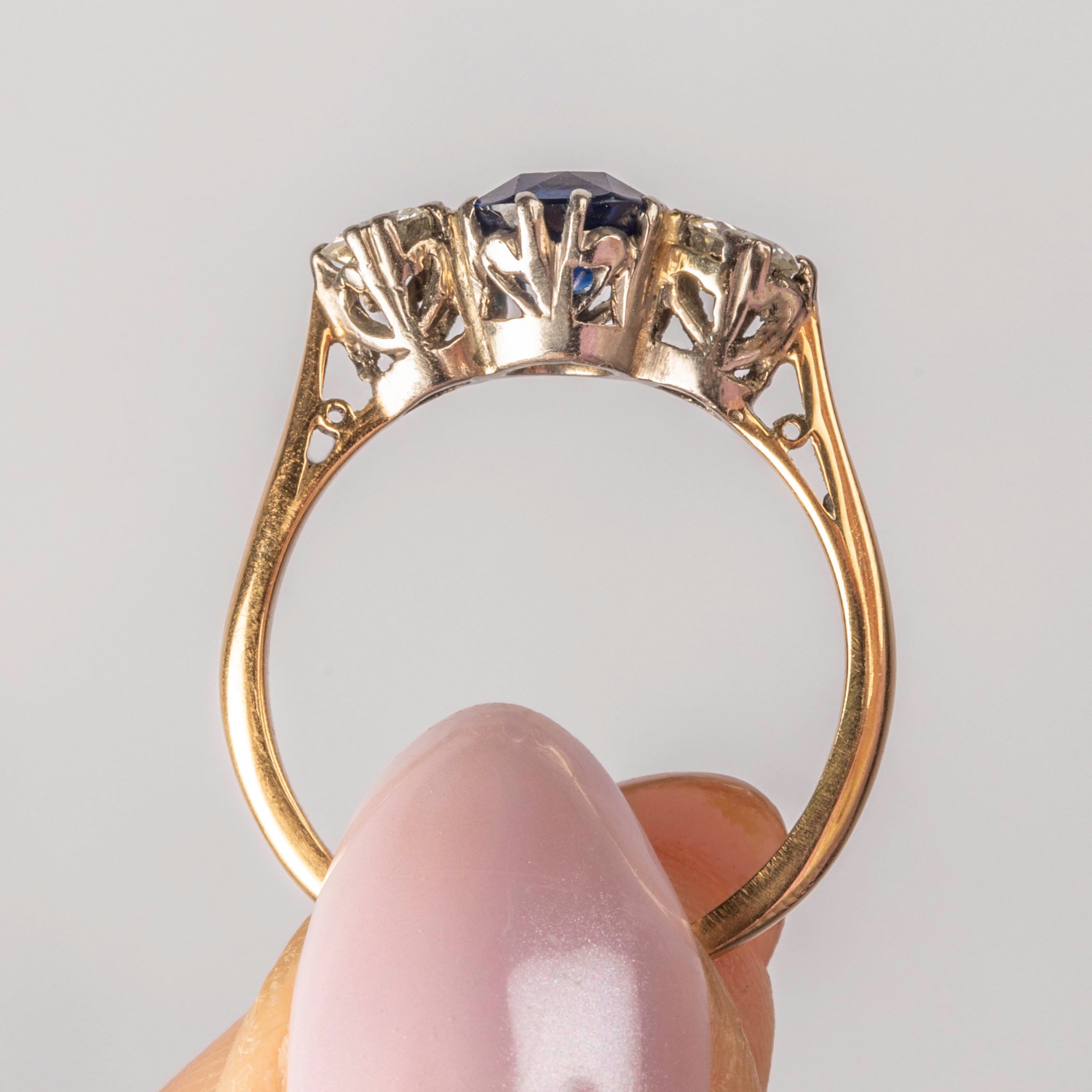 This Art Deco 18ct Gold Sapphire Diamond trilogy ring is just irresistible. Trilogy rings have a timeless appeal, and this heavenly beauty is no exception!