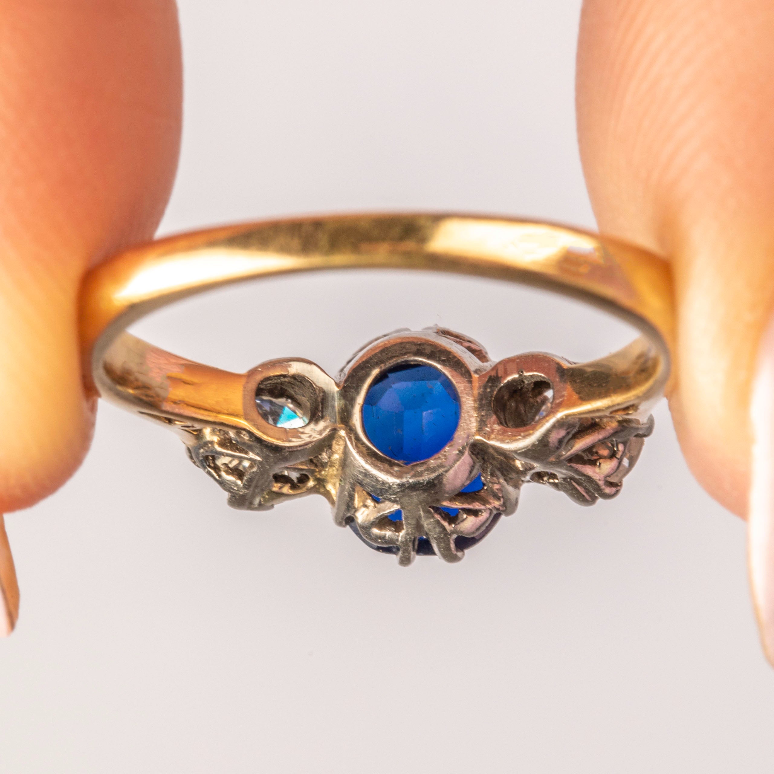 Art Deco 18ct Gold Sapphire Diamond Trilogy Ring, 0.32ct Sapphire