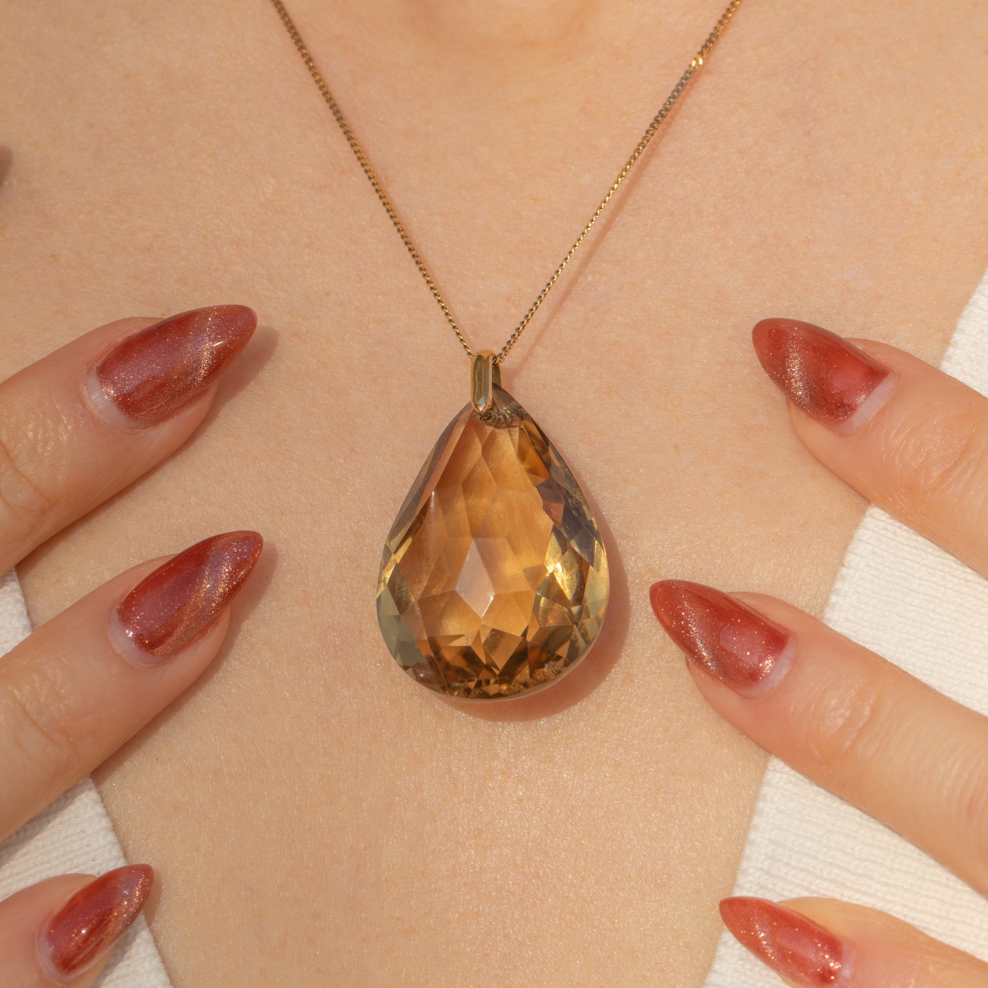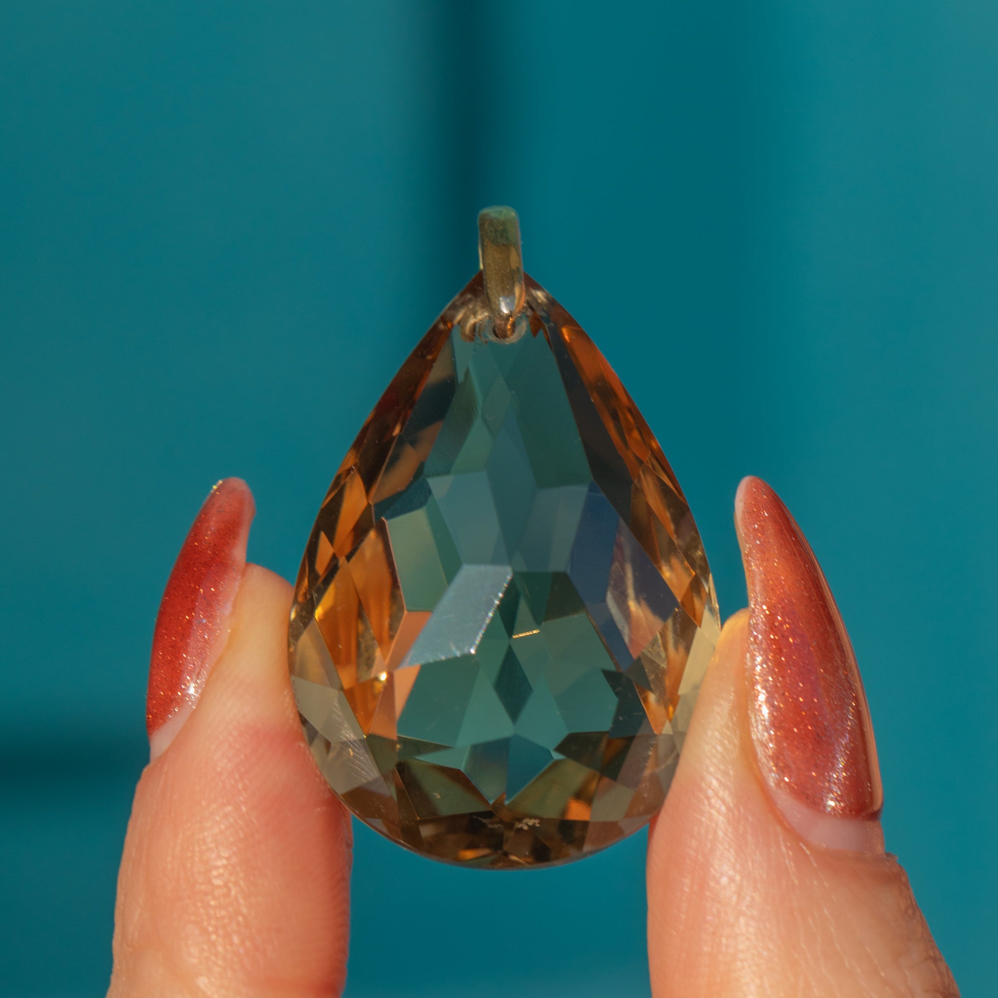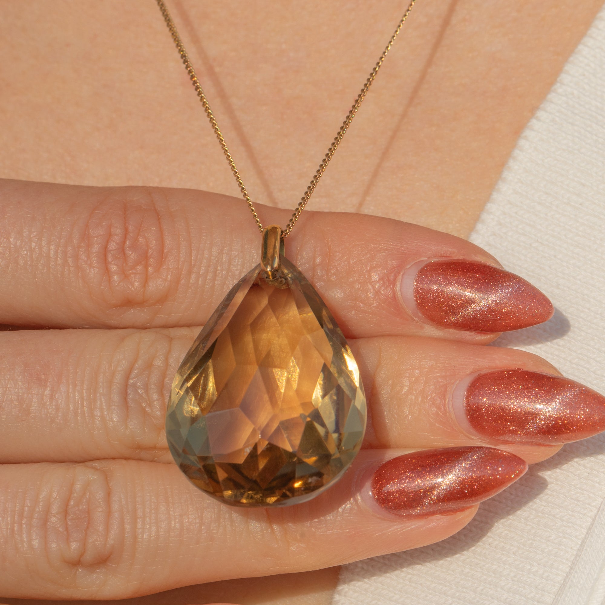 Art Deco 18ct Gold Smoky Quartz Pear Drop Pendant, 48.00ct