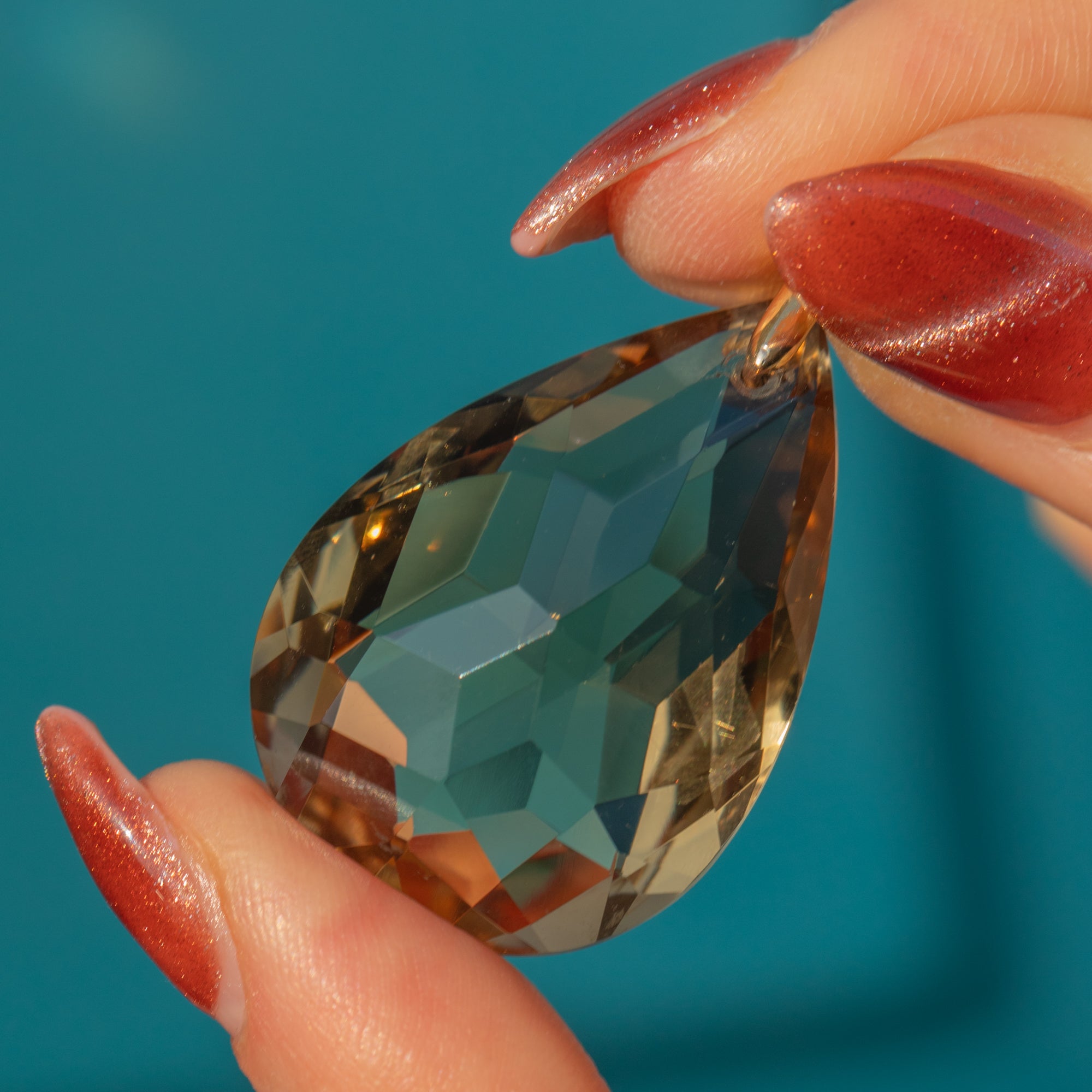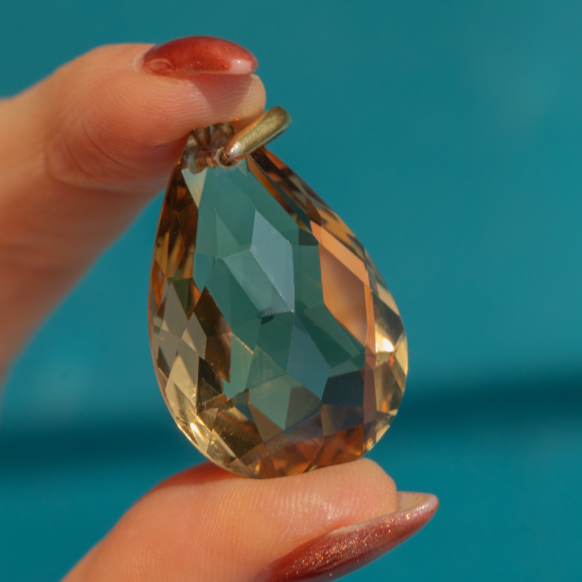 EXCELLENT. This Art Deco Smoky Quartz pear drop pendant is delicious! The facets are crisp, with only very mild signs of wear. The sturdy 18ct Gold bale allows you to suspend this piece from a fine Gold chain with the utmost confidence!