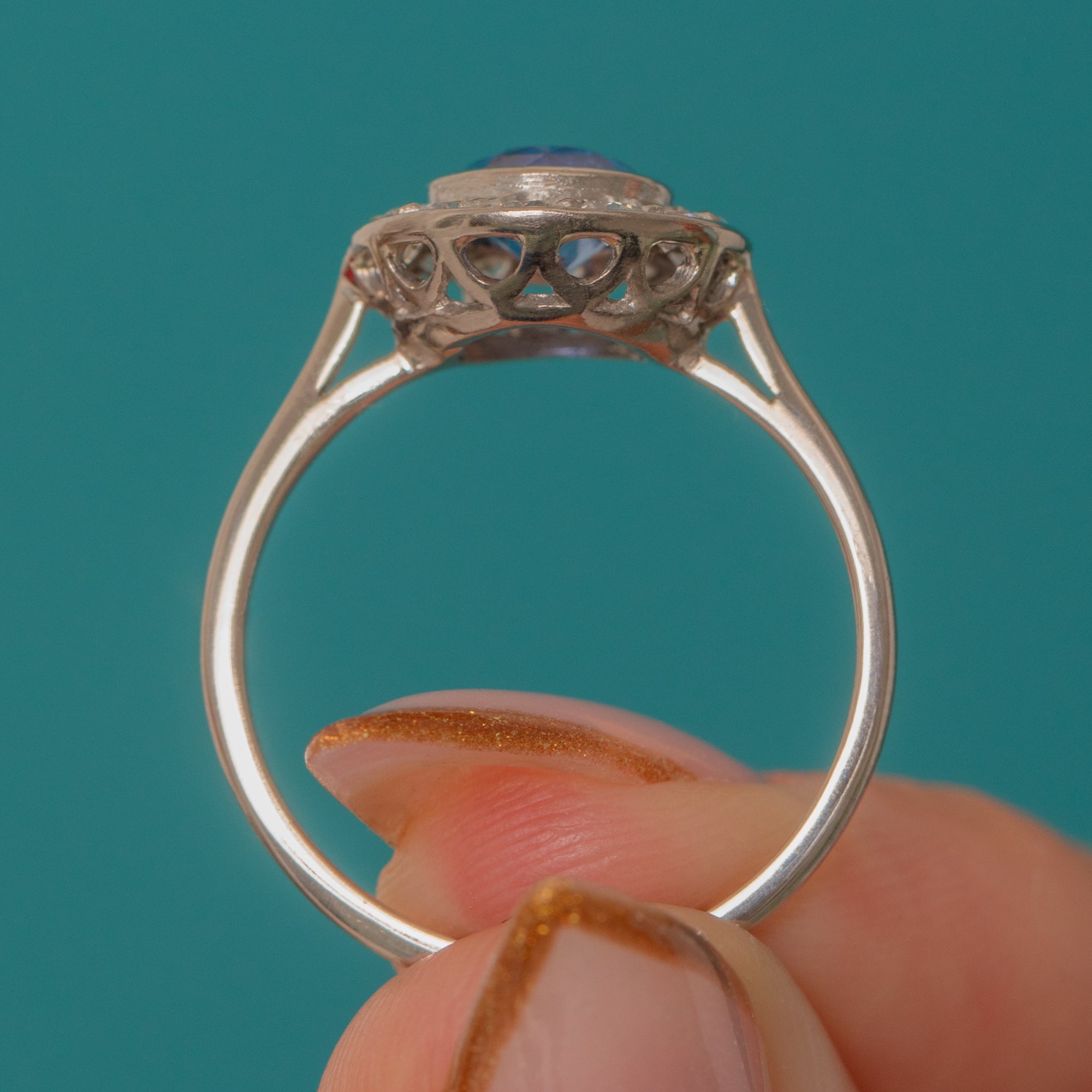 Art Deco 18ct White Gold Cornflower Sapphire Diamond Ring