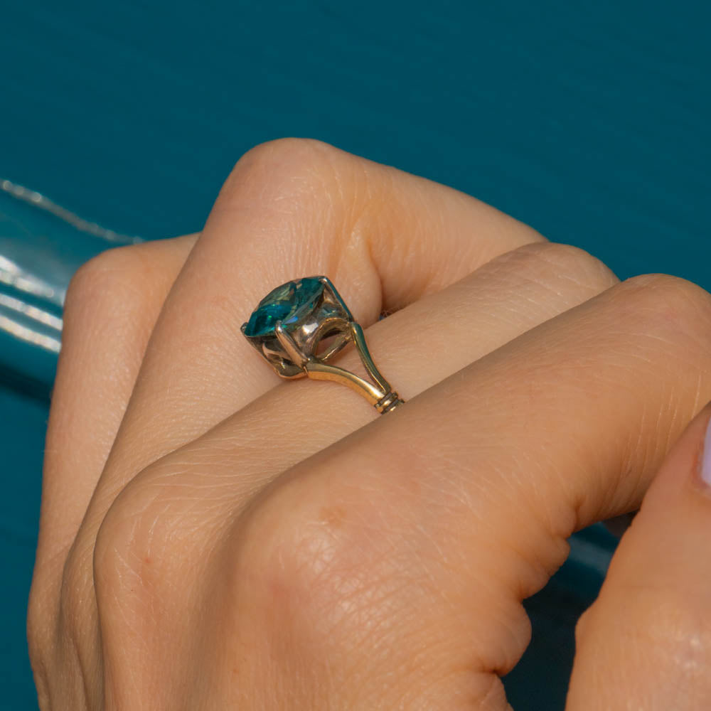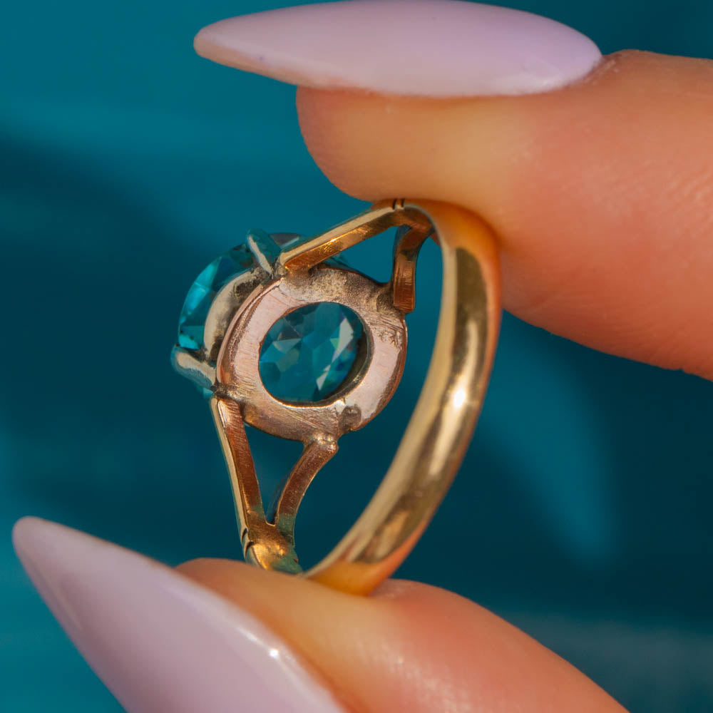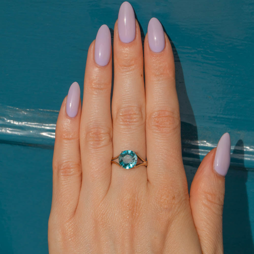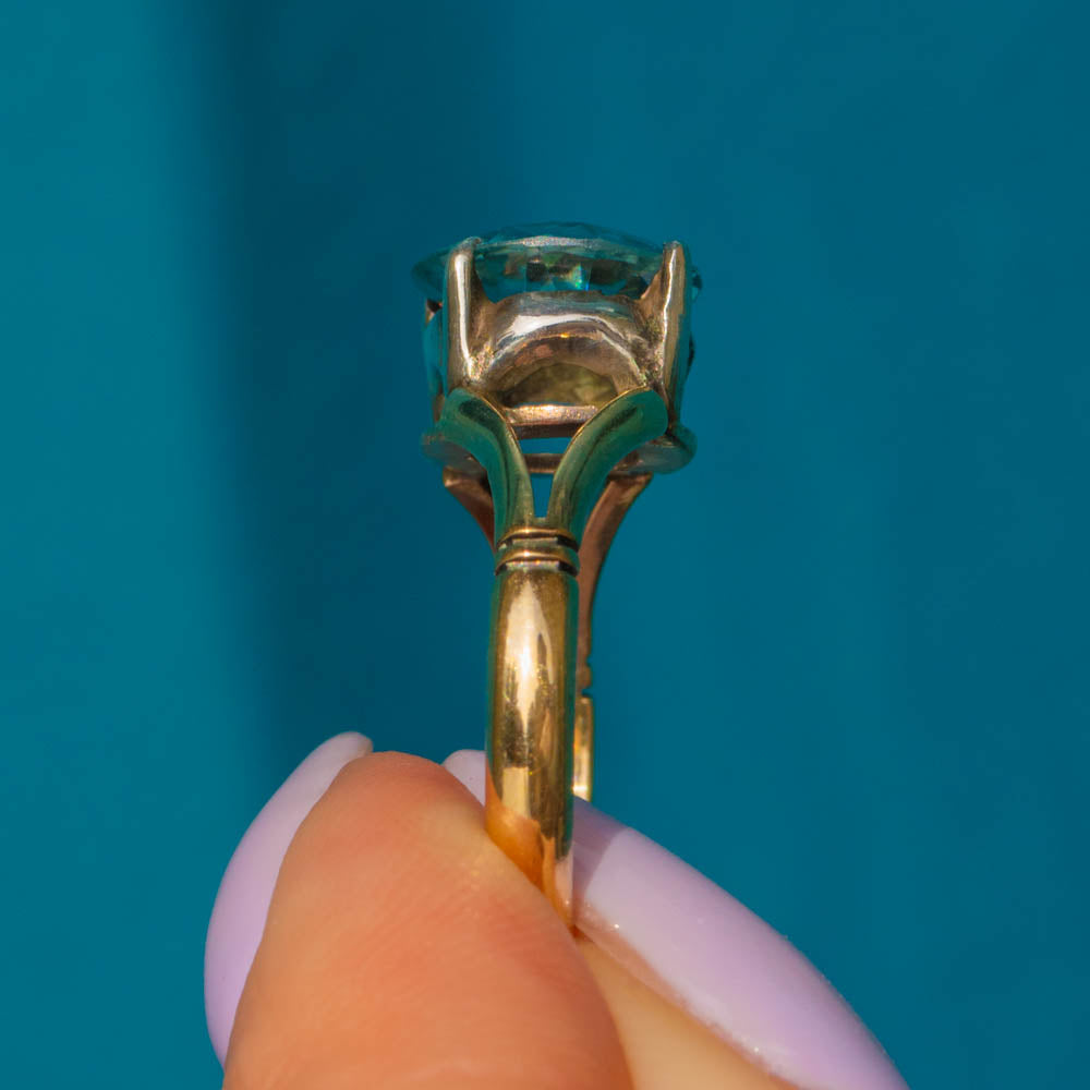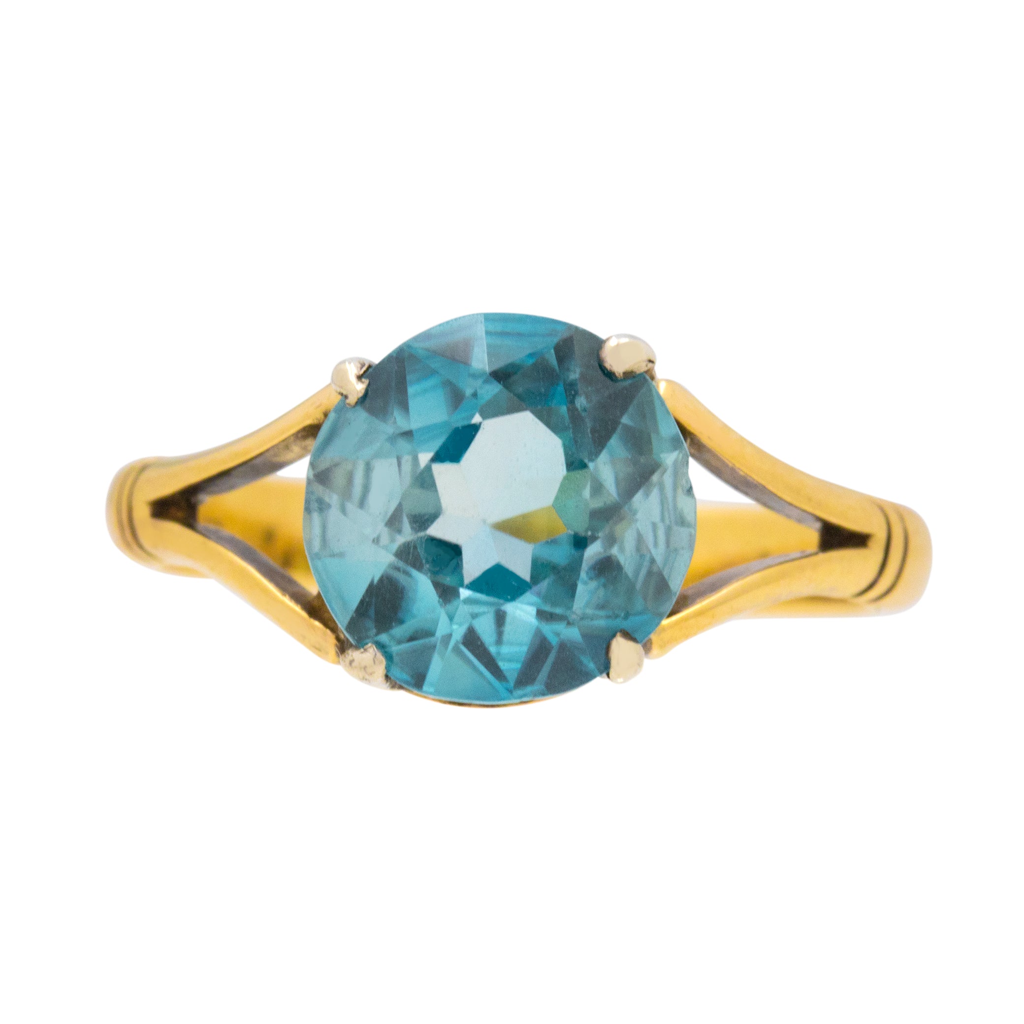 Art Deco 9ct Gold Blue Zircon Solitaire Ring, 2.21ct