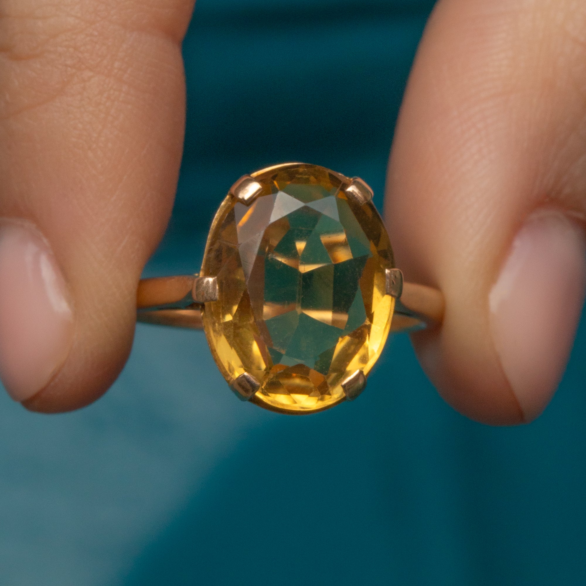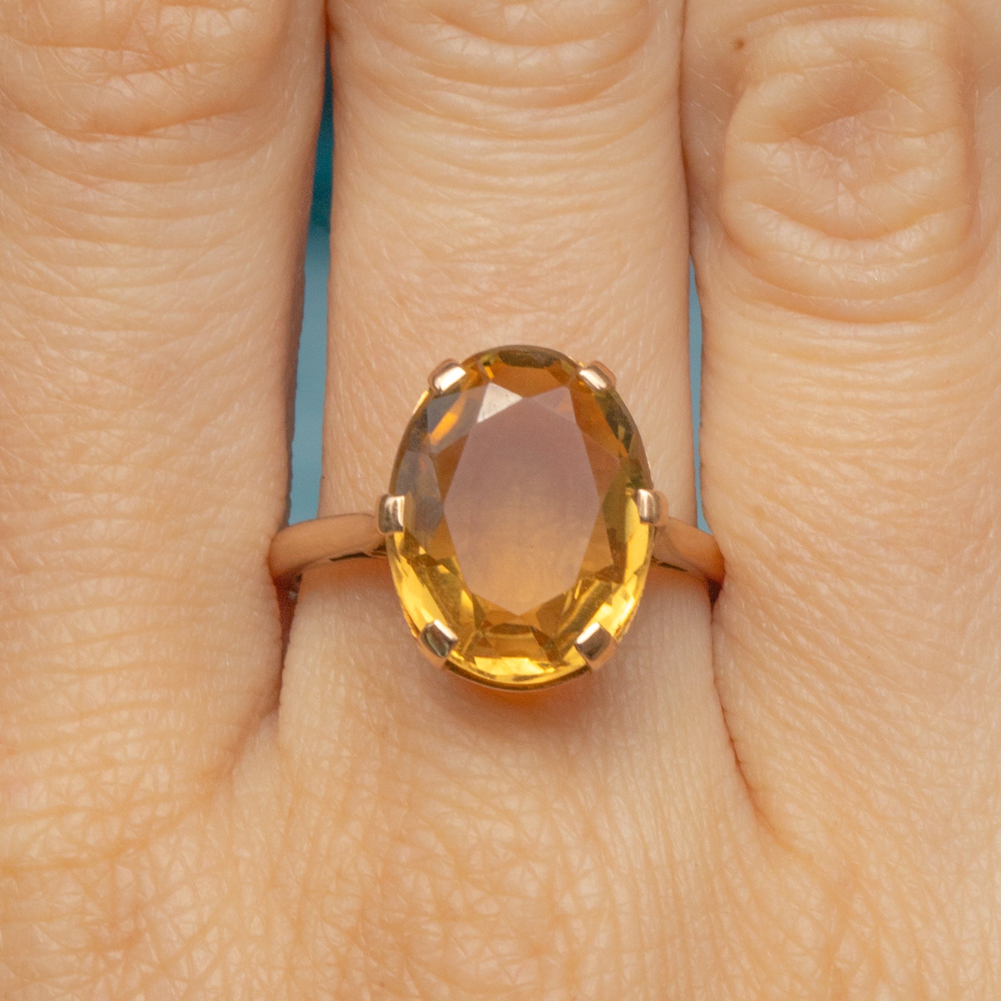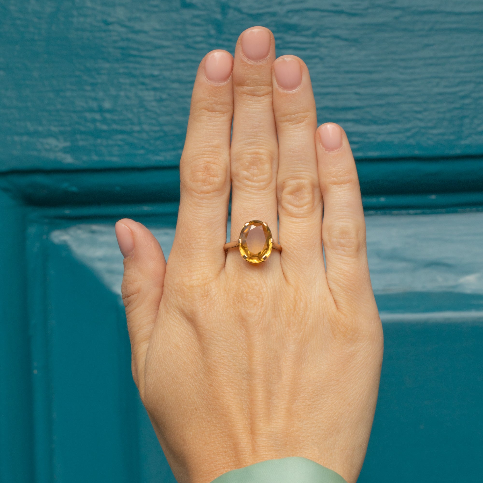 Art Deco 9ct Gold Citrine Cocktail Ring, 3.40ct