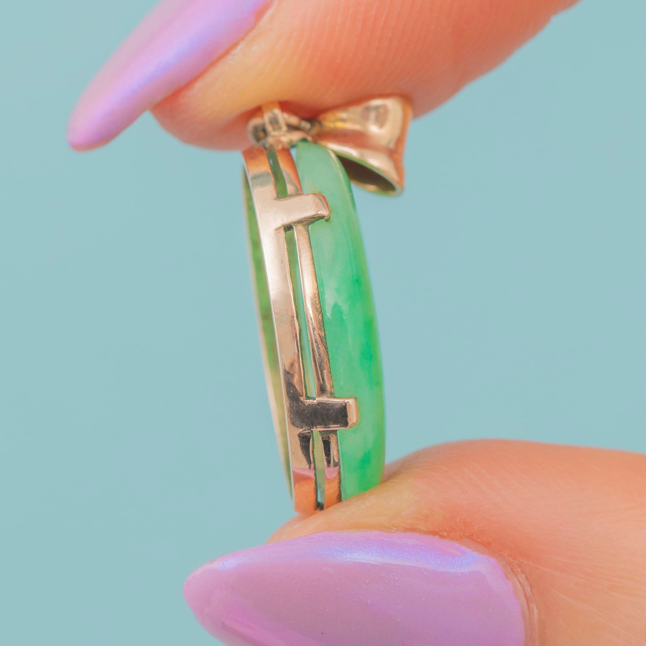 MATERIALS: Tests as 9ct Gold, Jade.