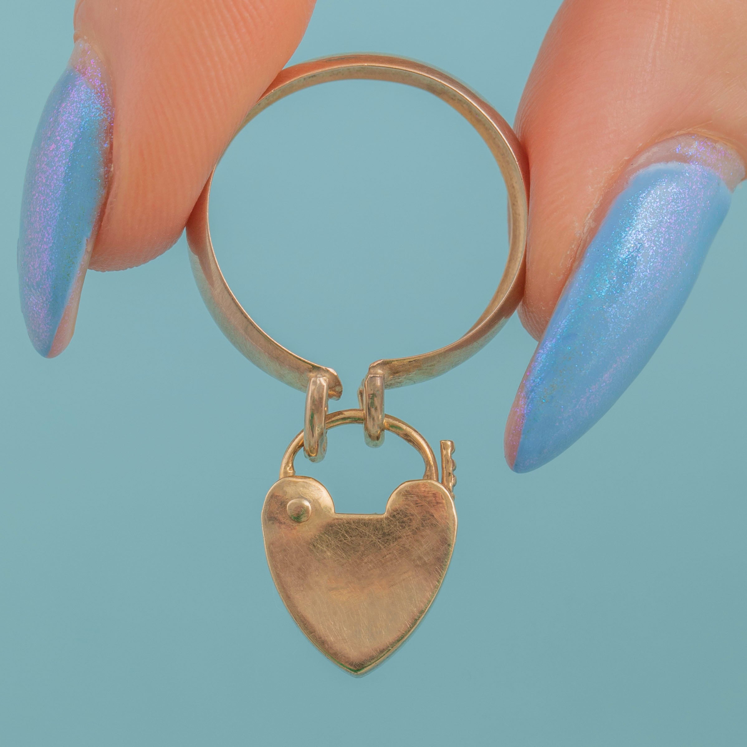 Art Deco 9ct Gold Ring with Heart Padlock Drop c.1925