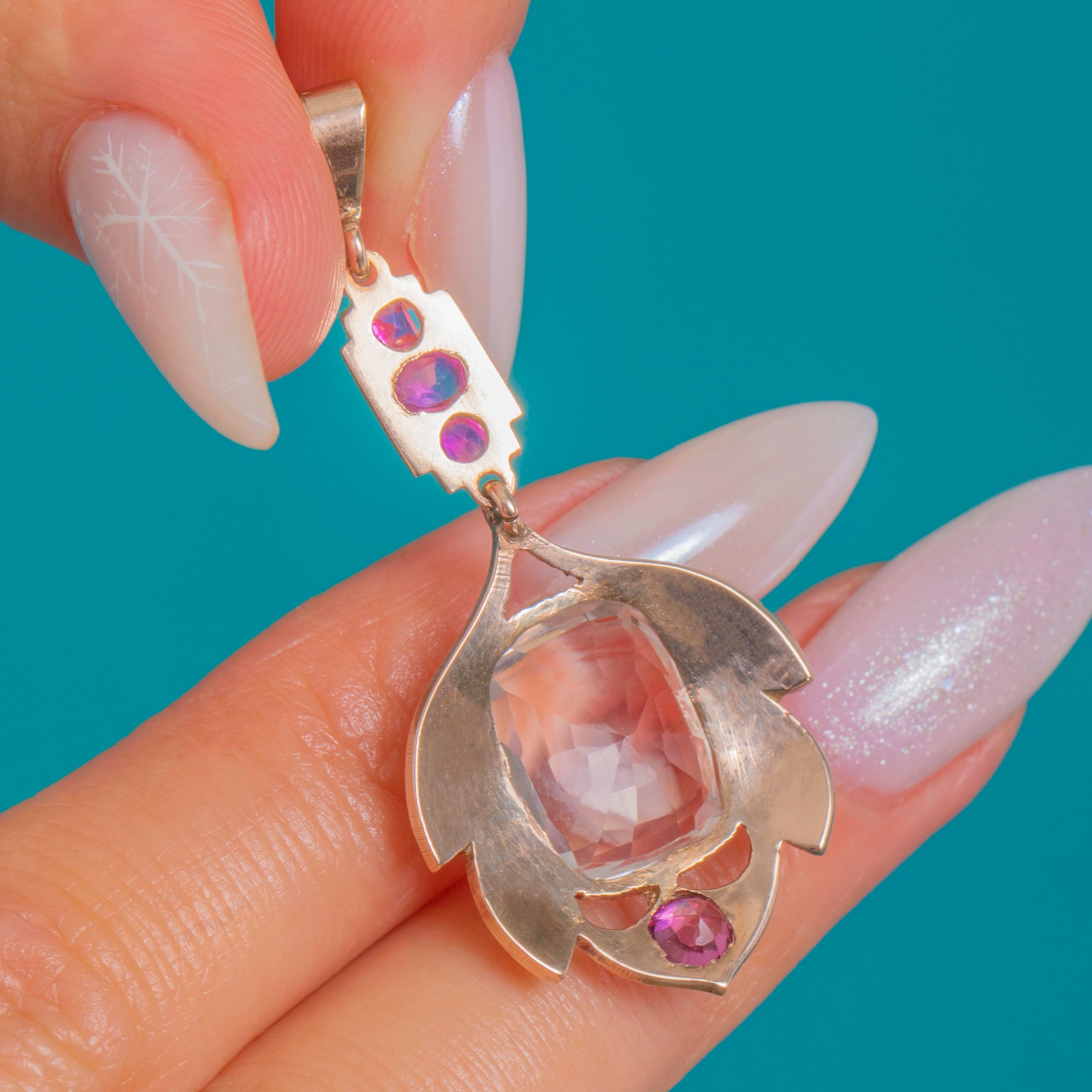 EXCELLENT: The pendant presents beautifully, with the stones sitting securely in their settings and no evidence of damage or replacements. The Rock Crystal shows crisp facets with excellent clarity and sparkle. The Gold has been well cared for, with only minimal age-related wear.