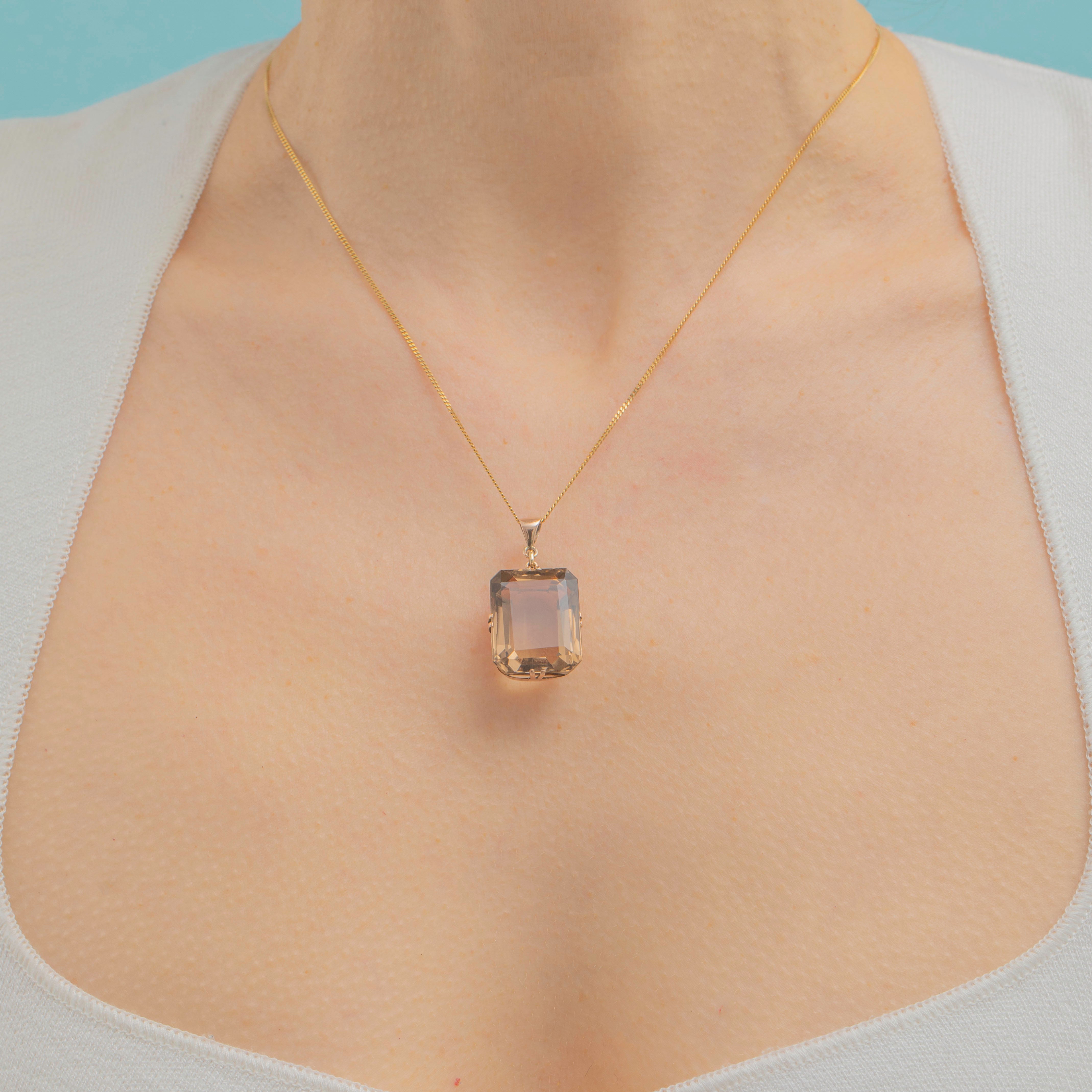 Art Deco 9ct Gold Smokey Quartz Pendant, 30.00ct