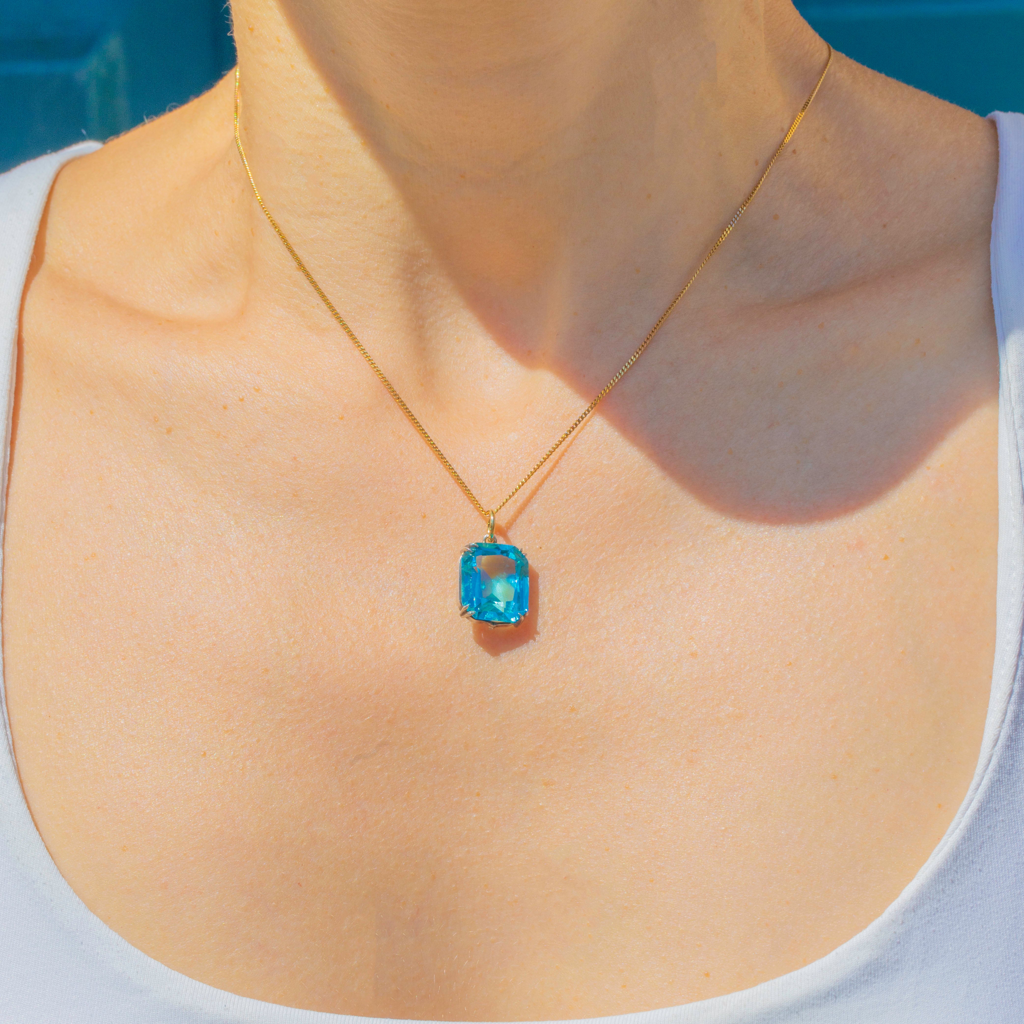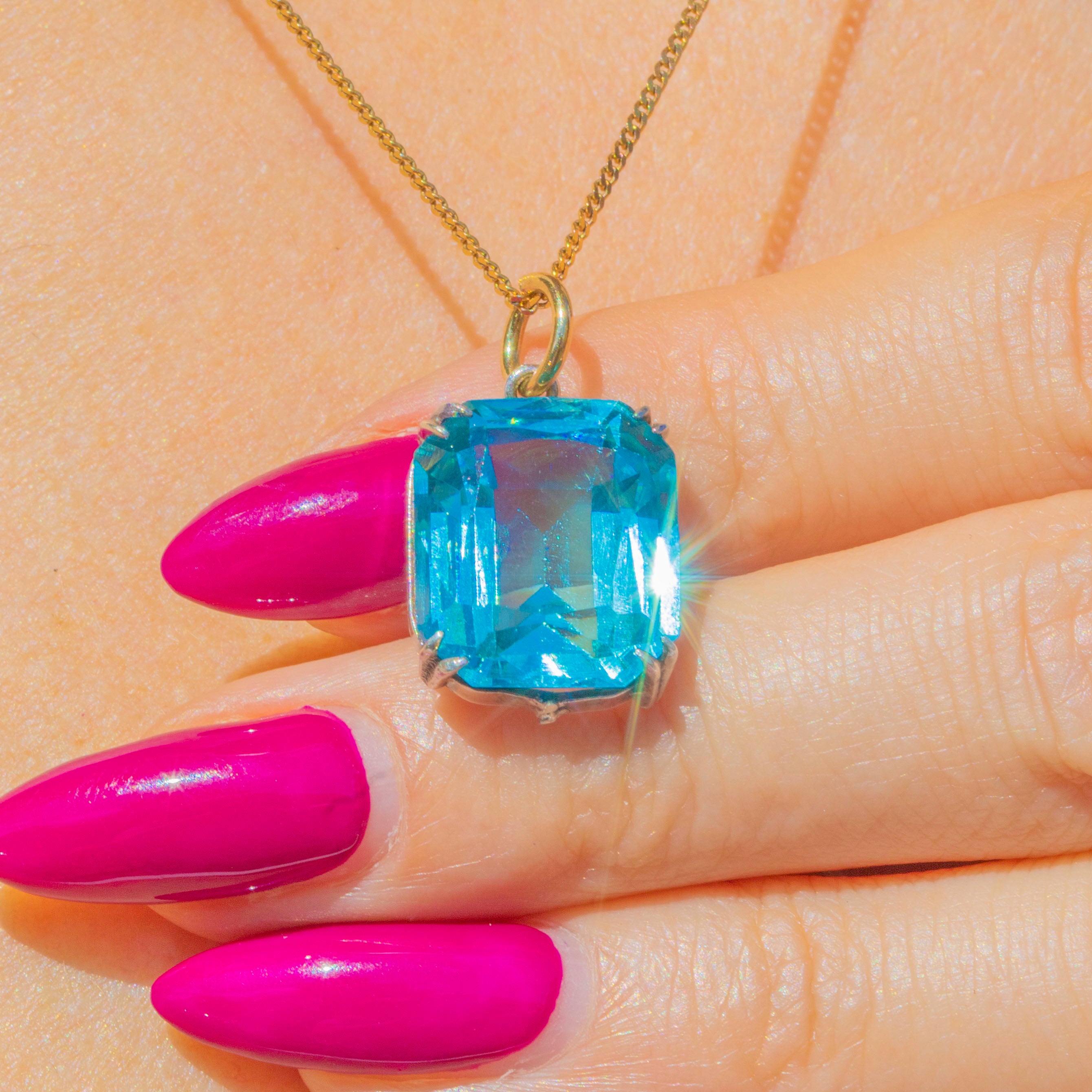 Add a refreshing pop of colour to your antique jewellery collection with this Art Deco blue Paste pendant! Vivacious sparkles emanate from the perfectly cut facets of her arctic blue Paste, creating an eye-catching display as they catch the light.