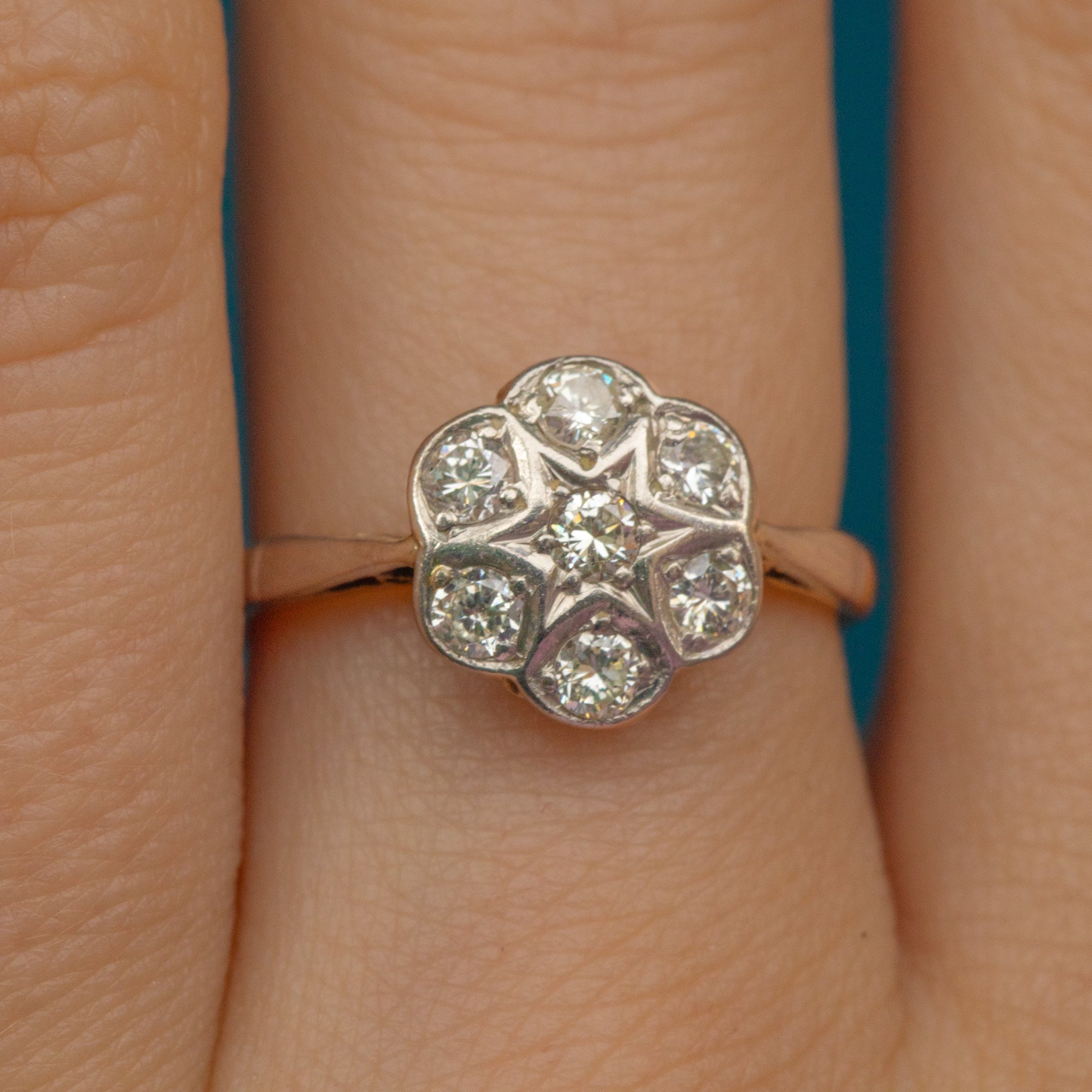 18ct Gold Art Deco Diamond Daisy Cluster Ring, 0.40ct