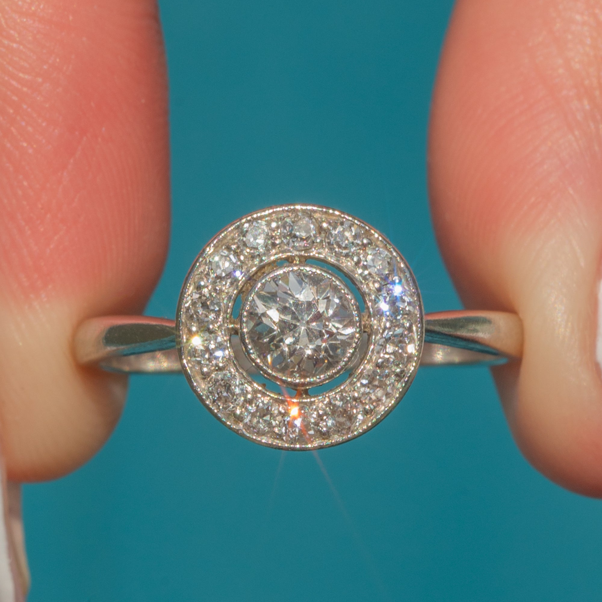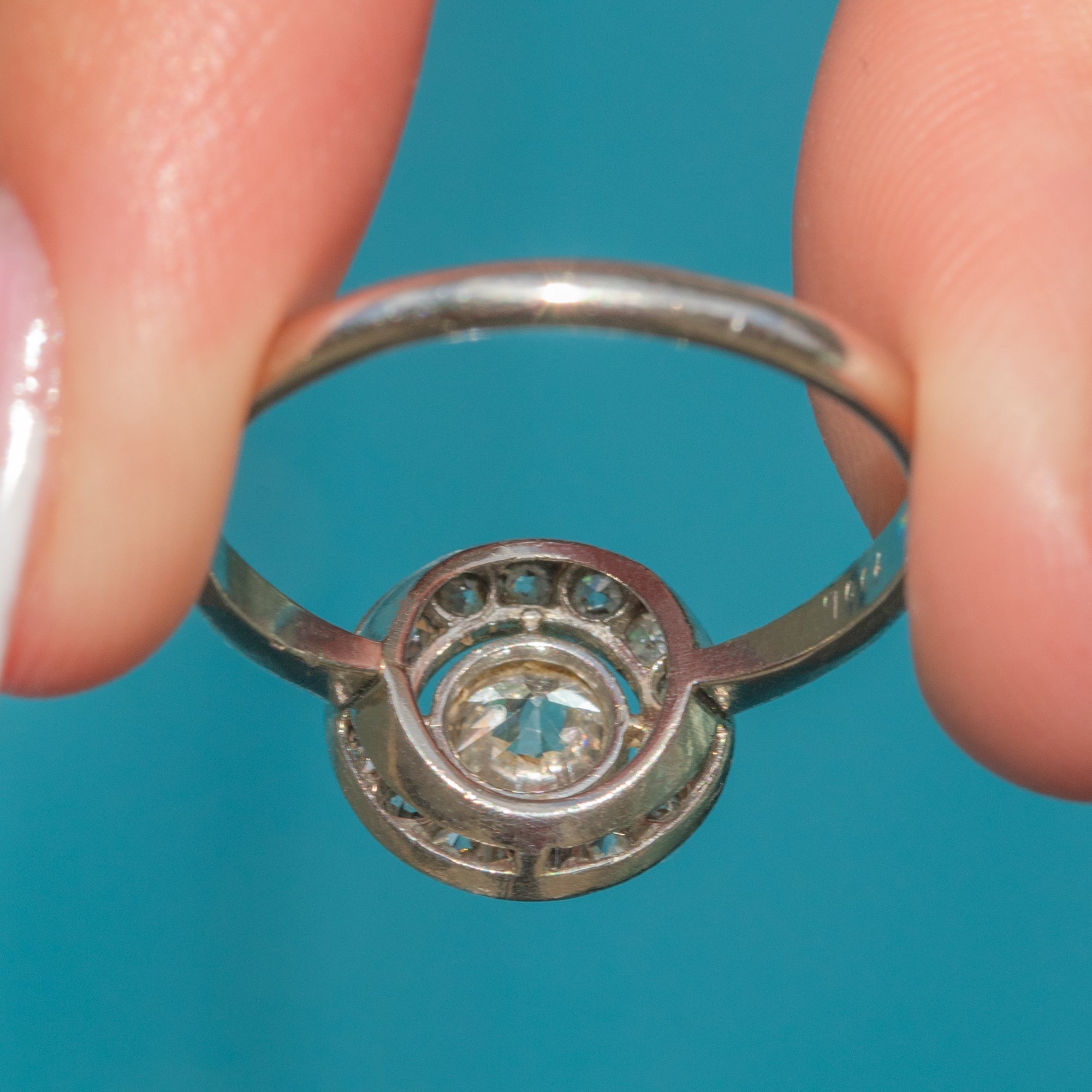 Art Deco Platinum Diamond Target Cluster Ring 0.65ct