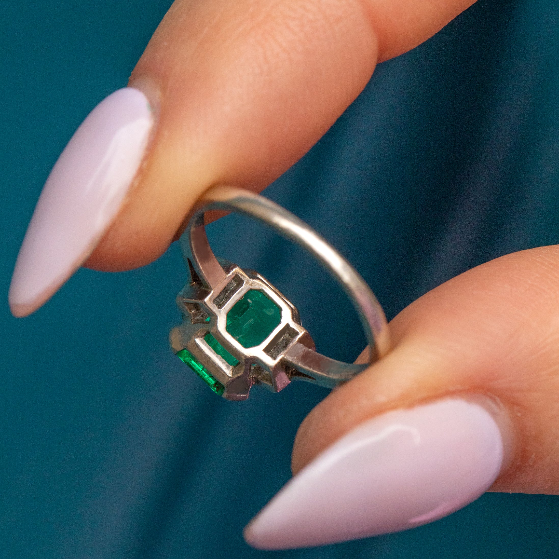 Art Deco Platinum Emerald Diamond Ring, 1.60ct