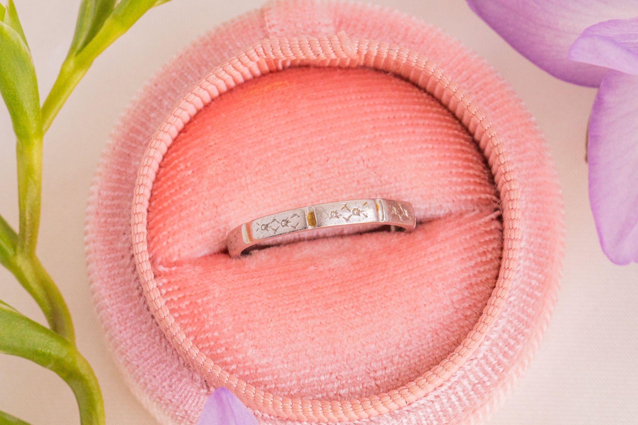 With orange blossom symbolising purity, good luck, and fertility, this antique Platinum band is a beautifully thoughtful choice to see you through the next chapter of life!