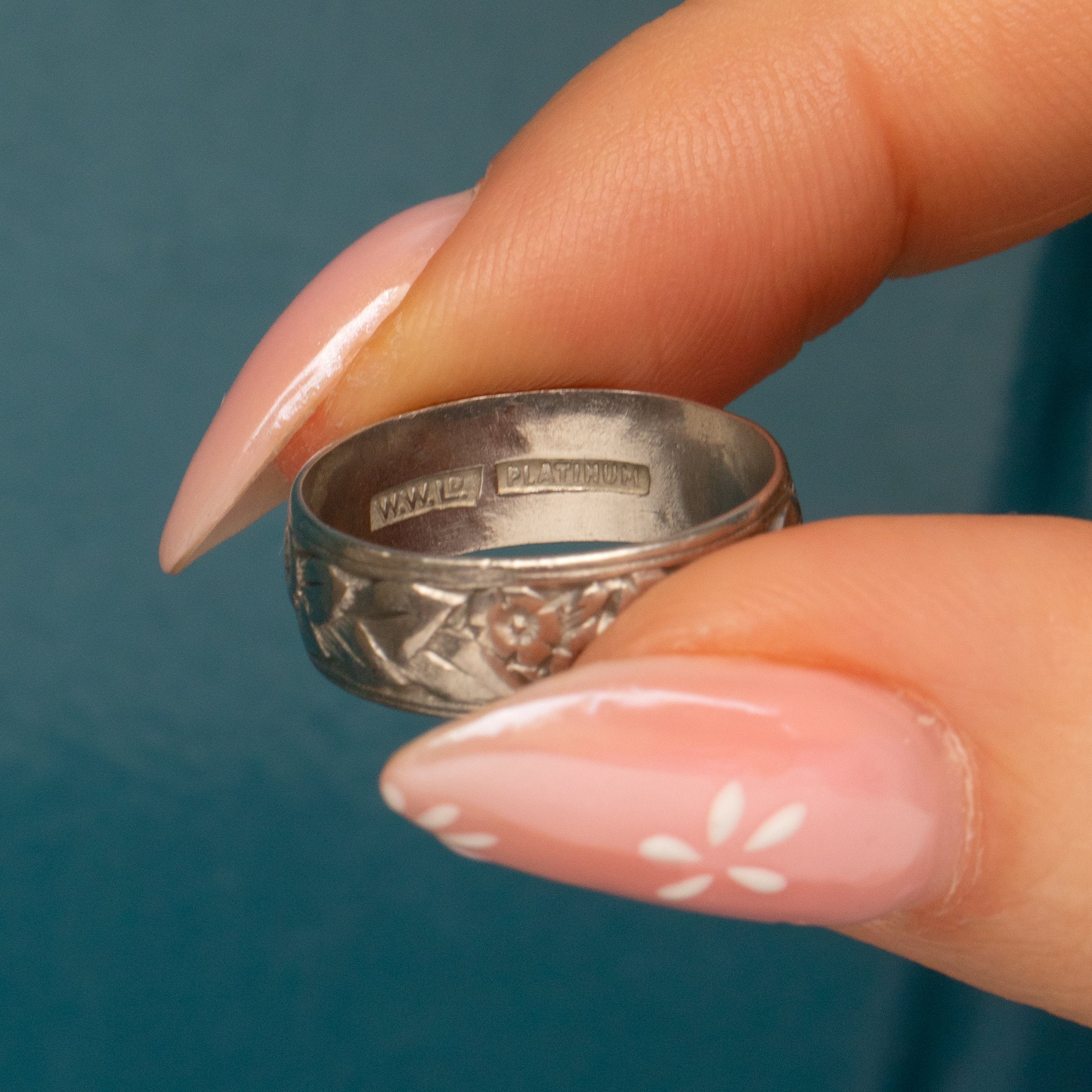 STAMPS: 'W.W.LD' Makers mark, 'PLATINUM' inside band.
