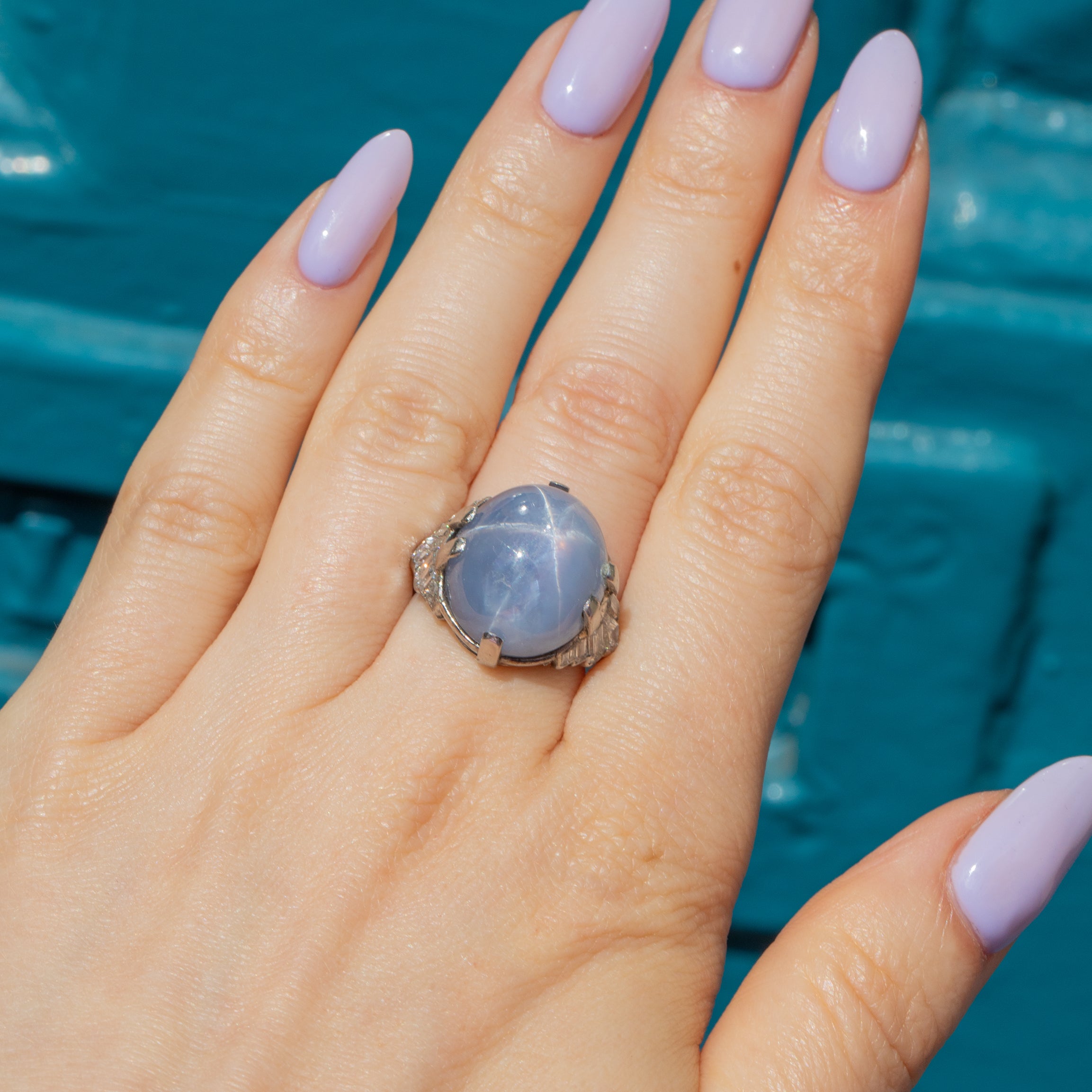 Art Deco Platinum Star Sapphire Diamond Cocktail Ring 19.95ct, Caldwell