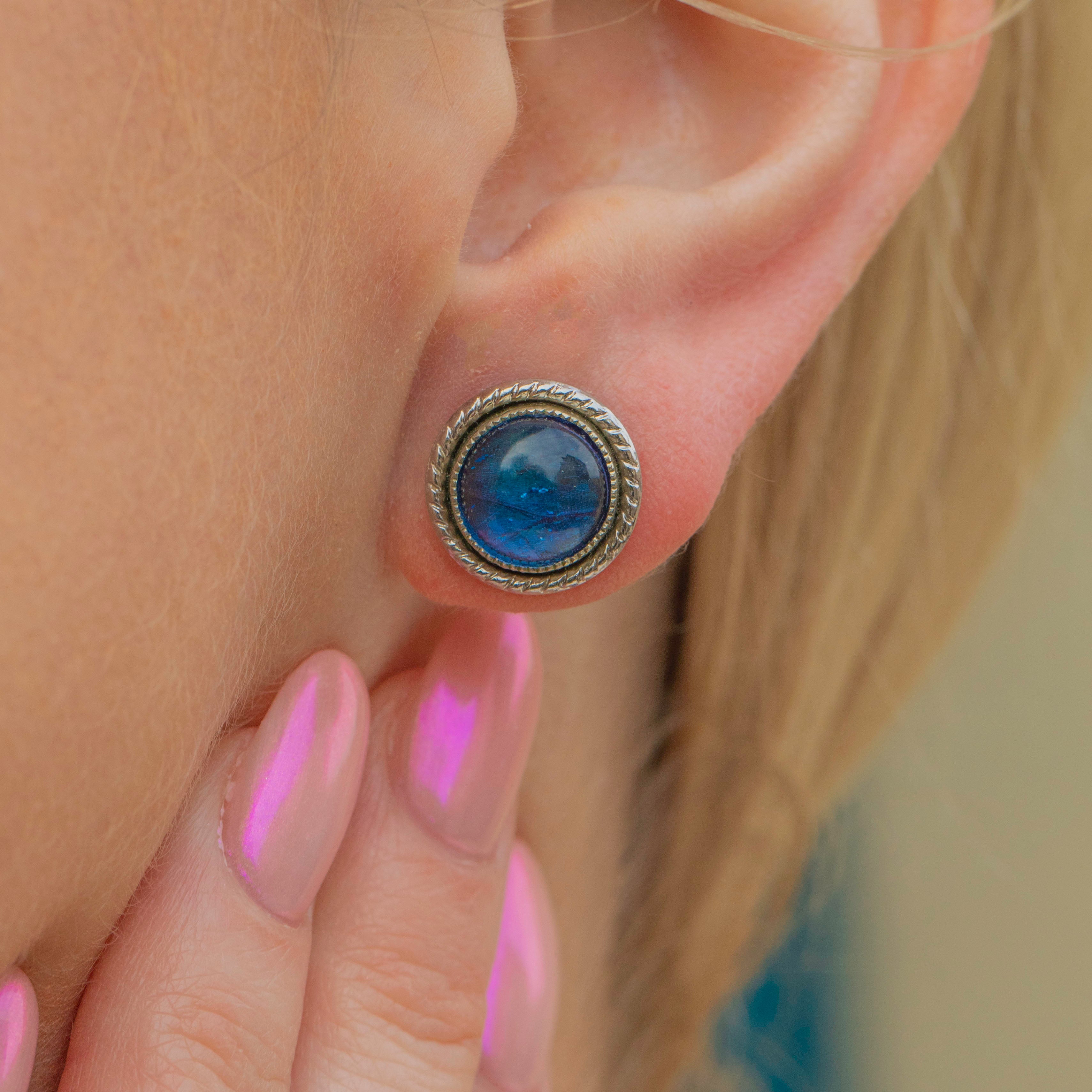 Boasting a metallic sheen, the electric blue hue of the intricate Morpho butterfly wings will captivate anyone lucky enough to lay eyes on this exotic pair.
