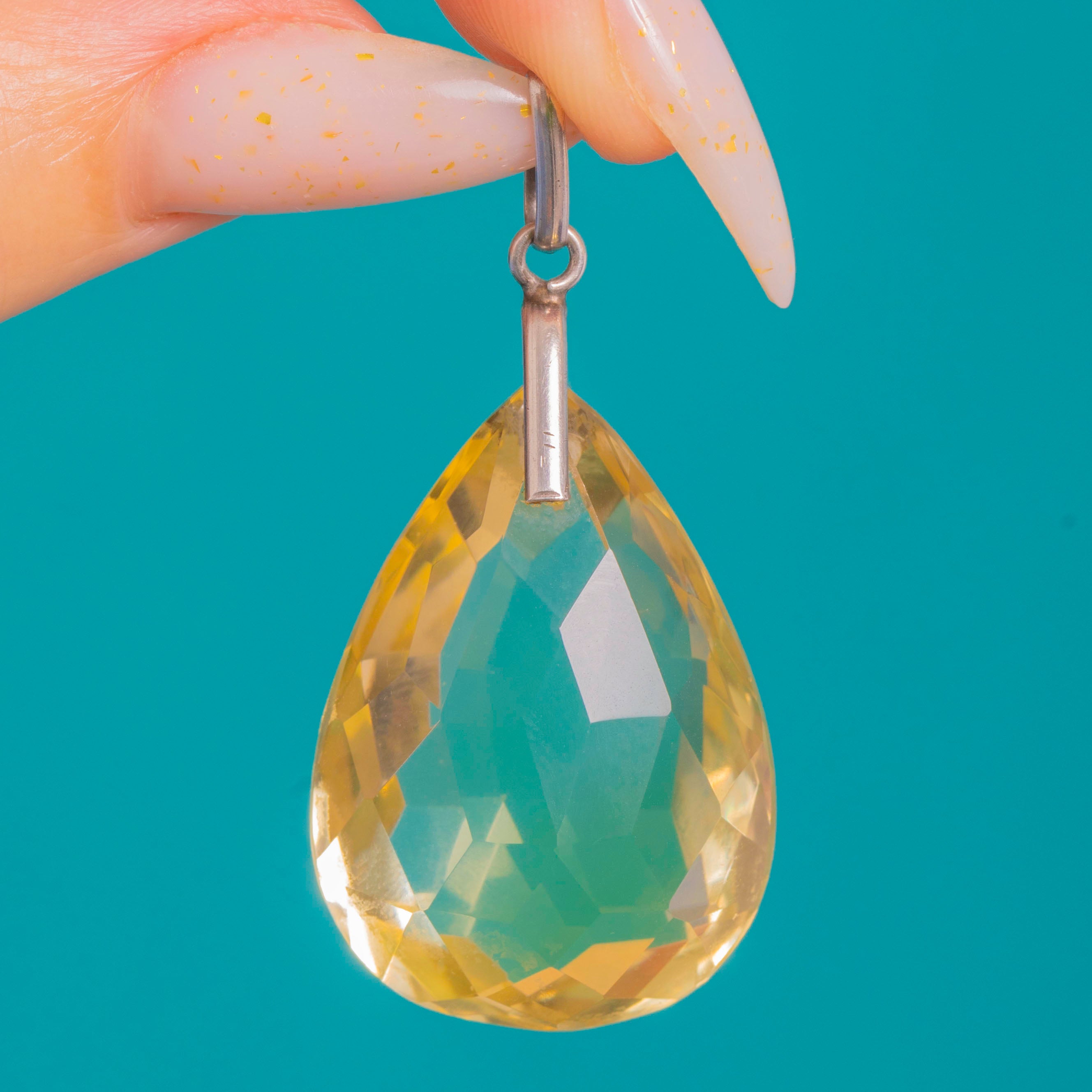 Art Deco Silver Faceted Citrine Pear Pendant 40.00ct Item added