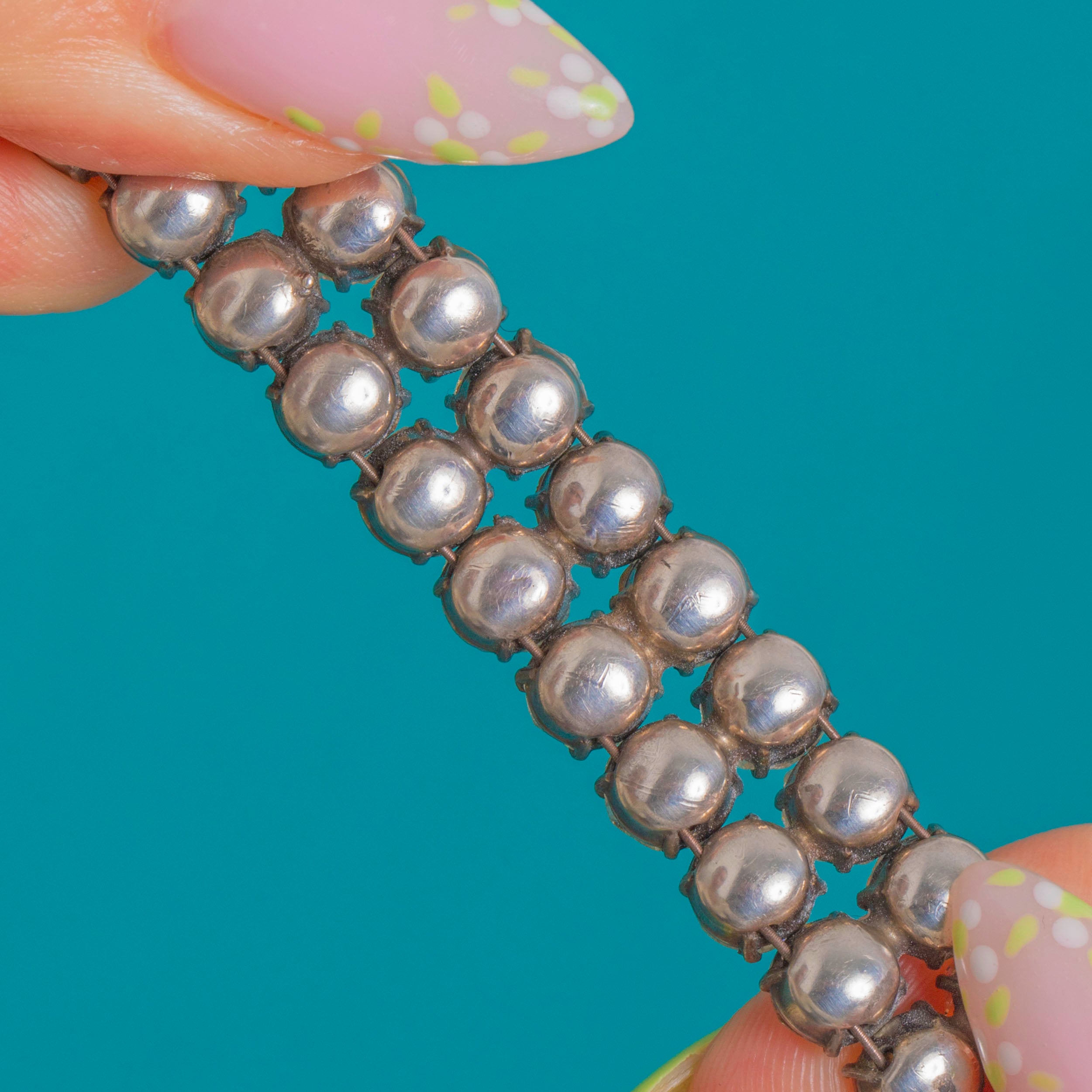 Art Deco Silver Paste Double Row Bracelet