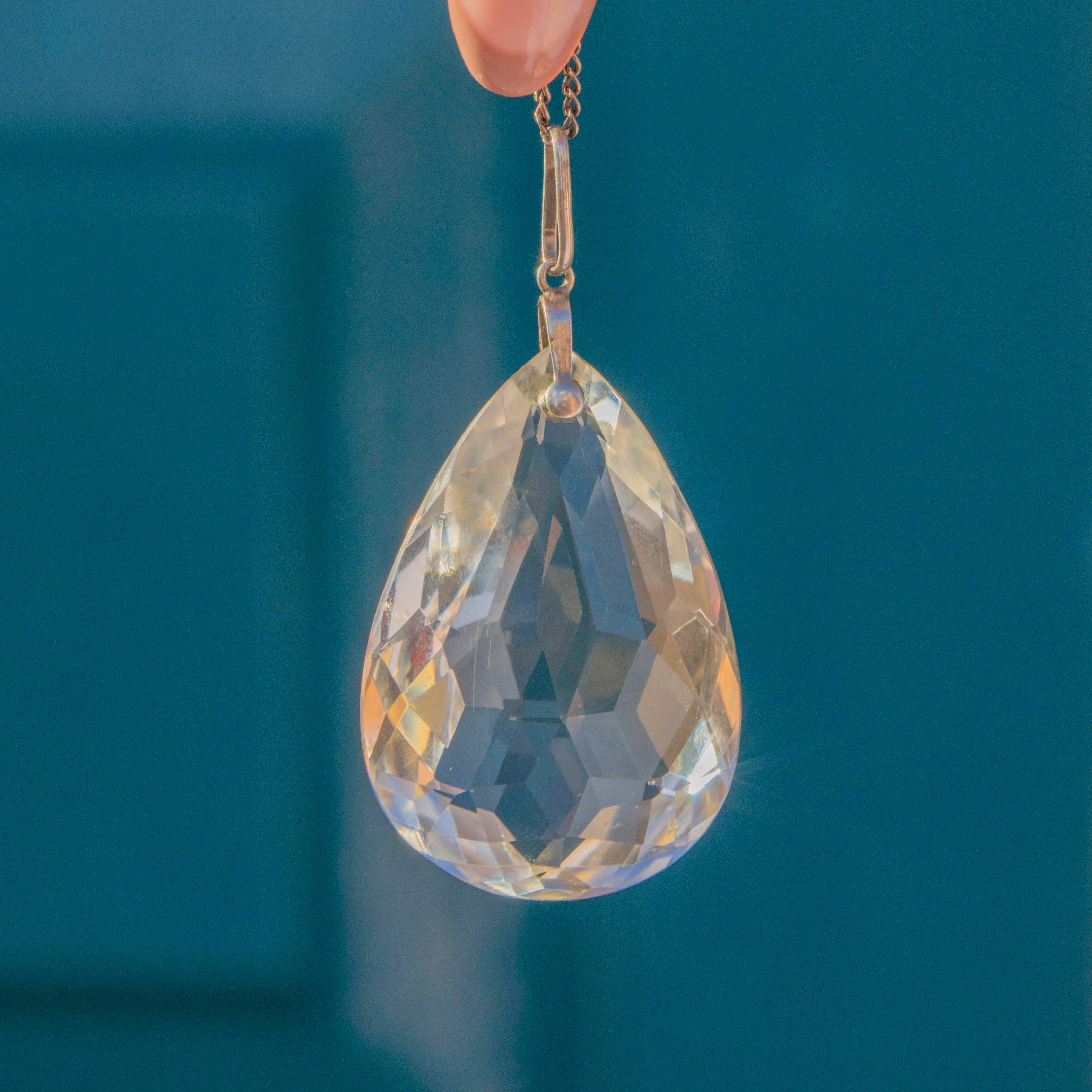Art Deco Silver Rock Crystal Pear Drop Pendant, 85.86ct
