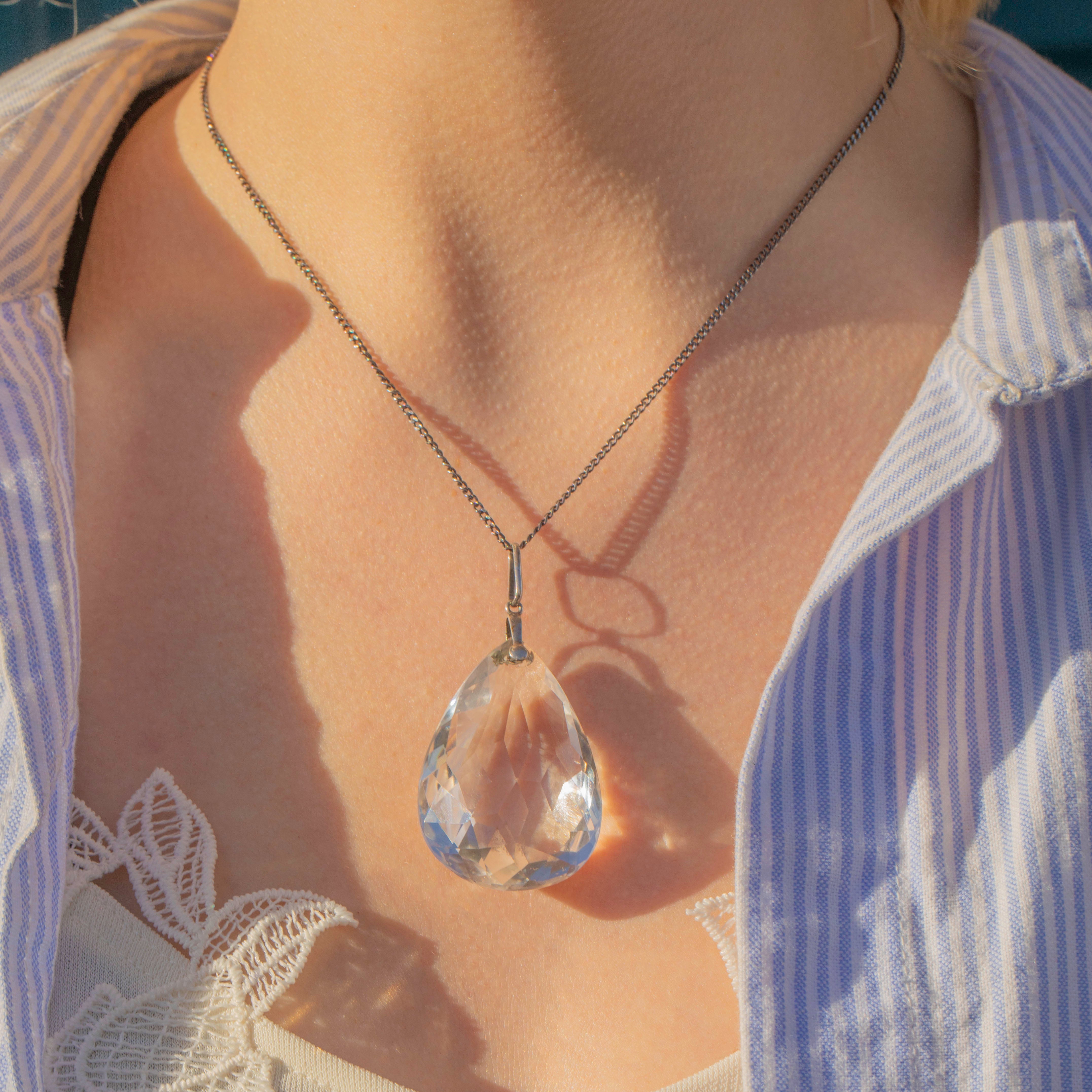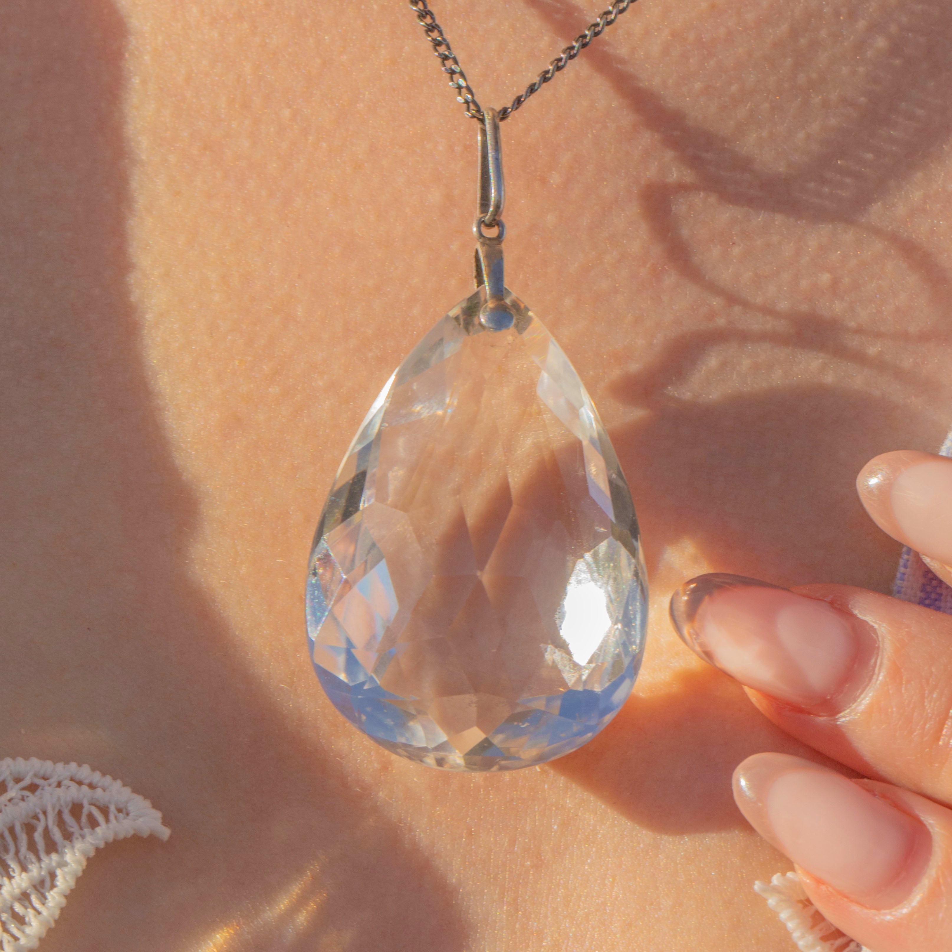Admire the captivating elegance and effortless simplicity of this Art Deco Silver Rock crystal pear drop pendant!
