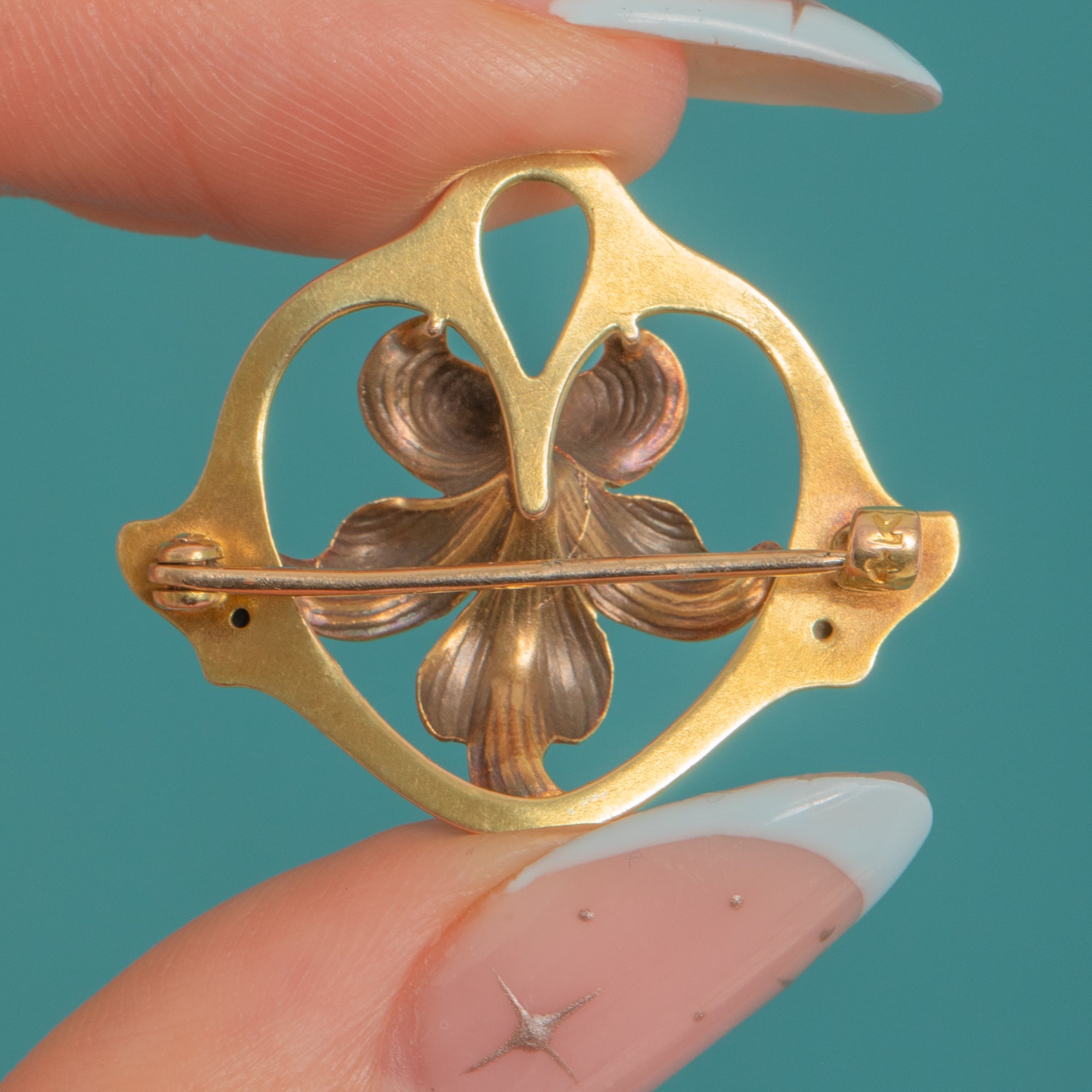 MEASUREMENTS: Brooch is 23mm long x 27.5mm wide.