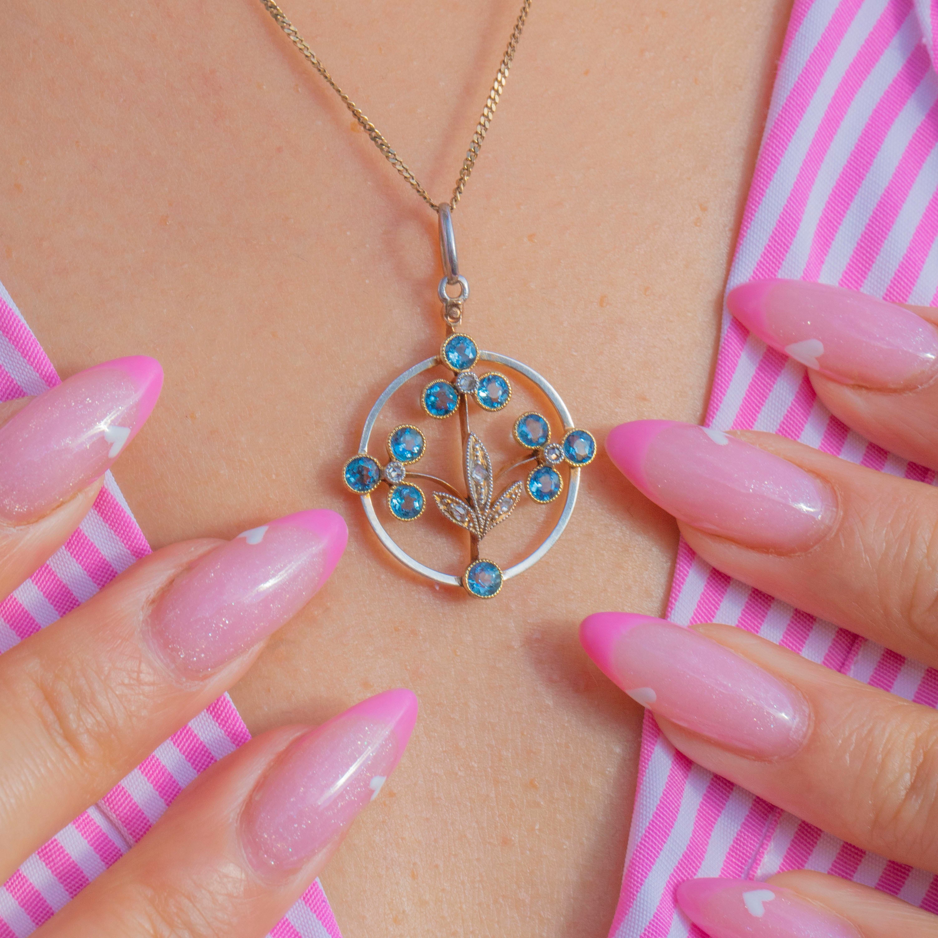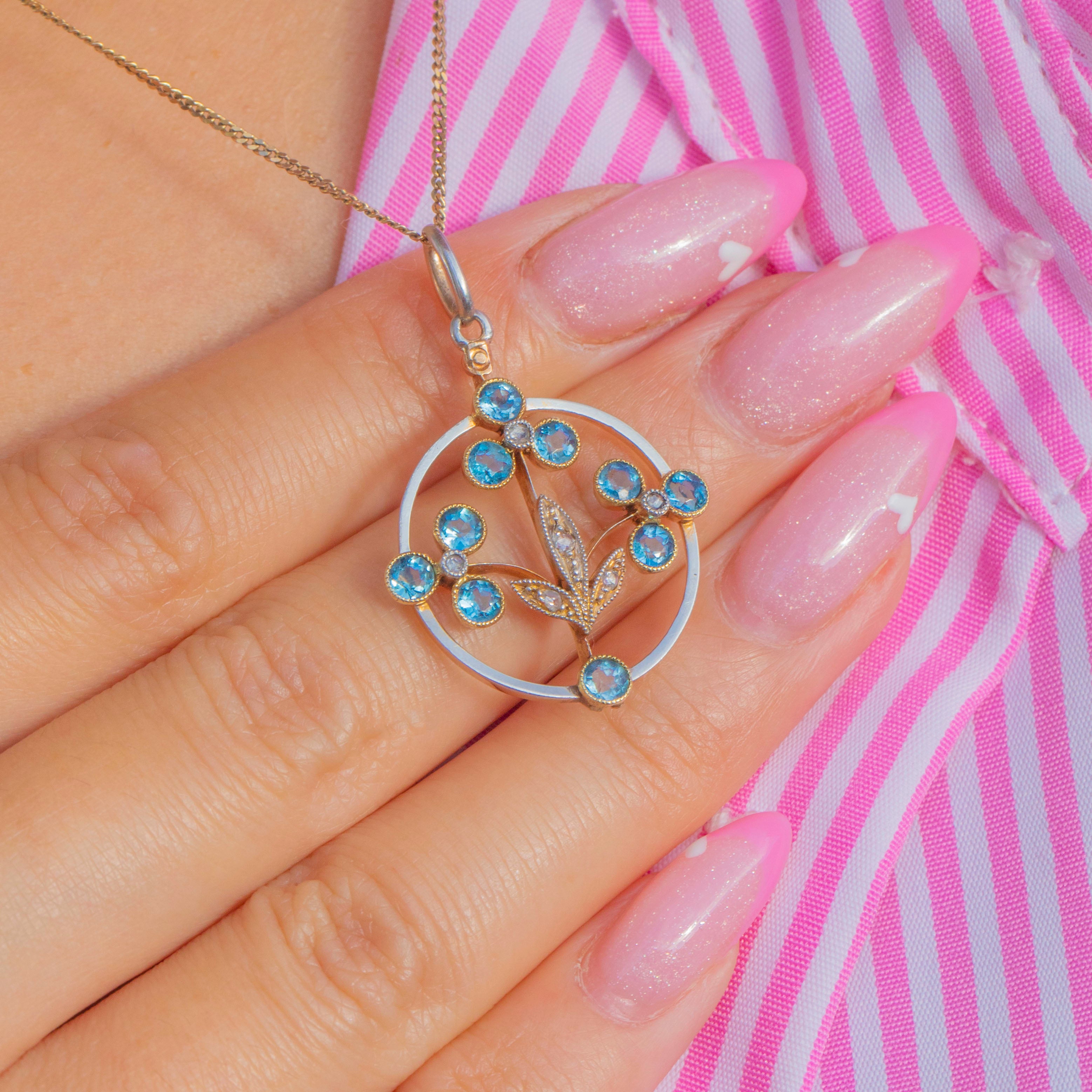 Art Nouveau 18ct Gold & Platinum Aquamarine Diamond Pendant Item added