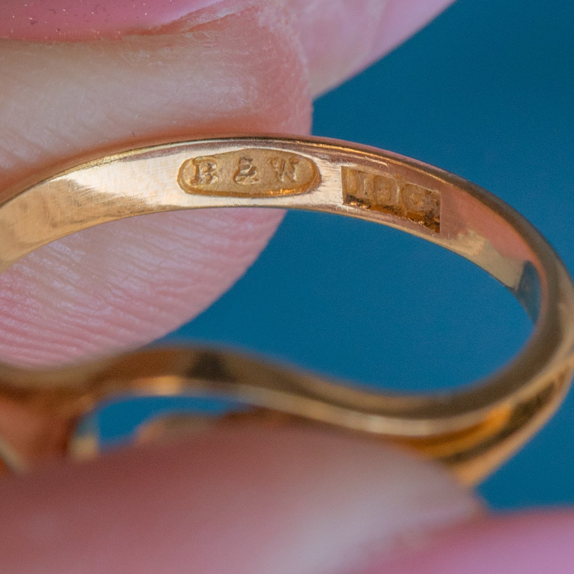 STAMPS: B&W Maker's mark, 18CT inside band.