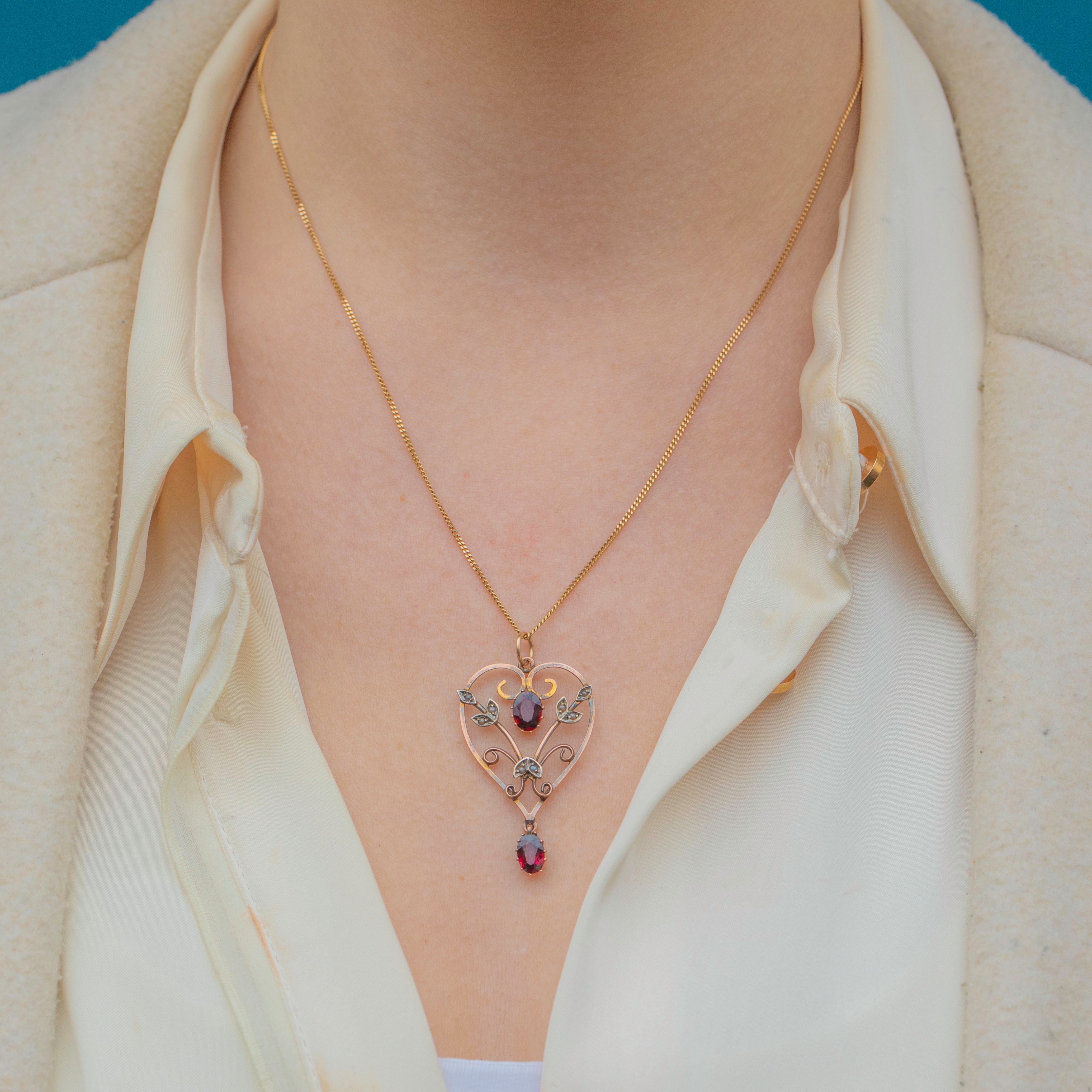 Her heart-shaped 9ct Gold form renders her the perfect sentimental gift or a special addition to your own collection, this Art Nouveau pendant exudes luxury!