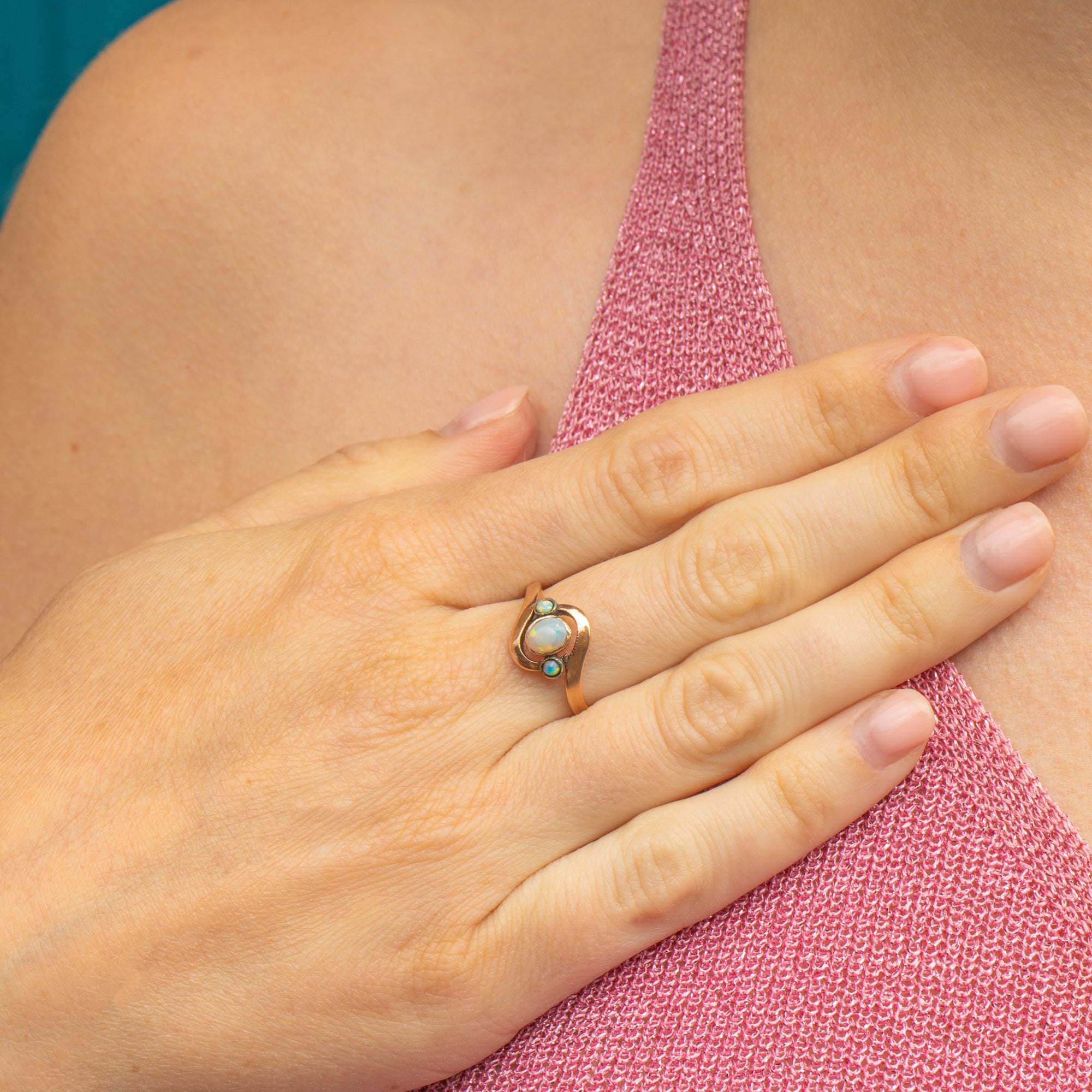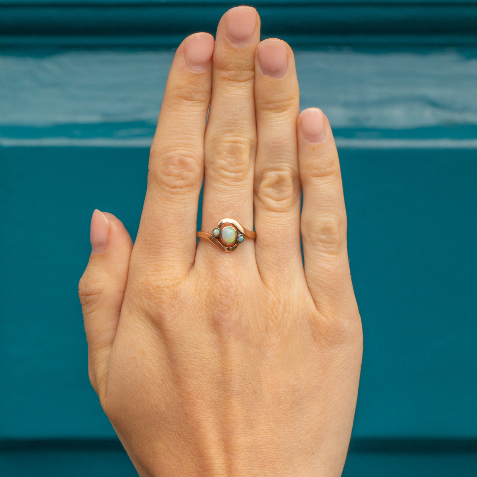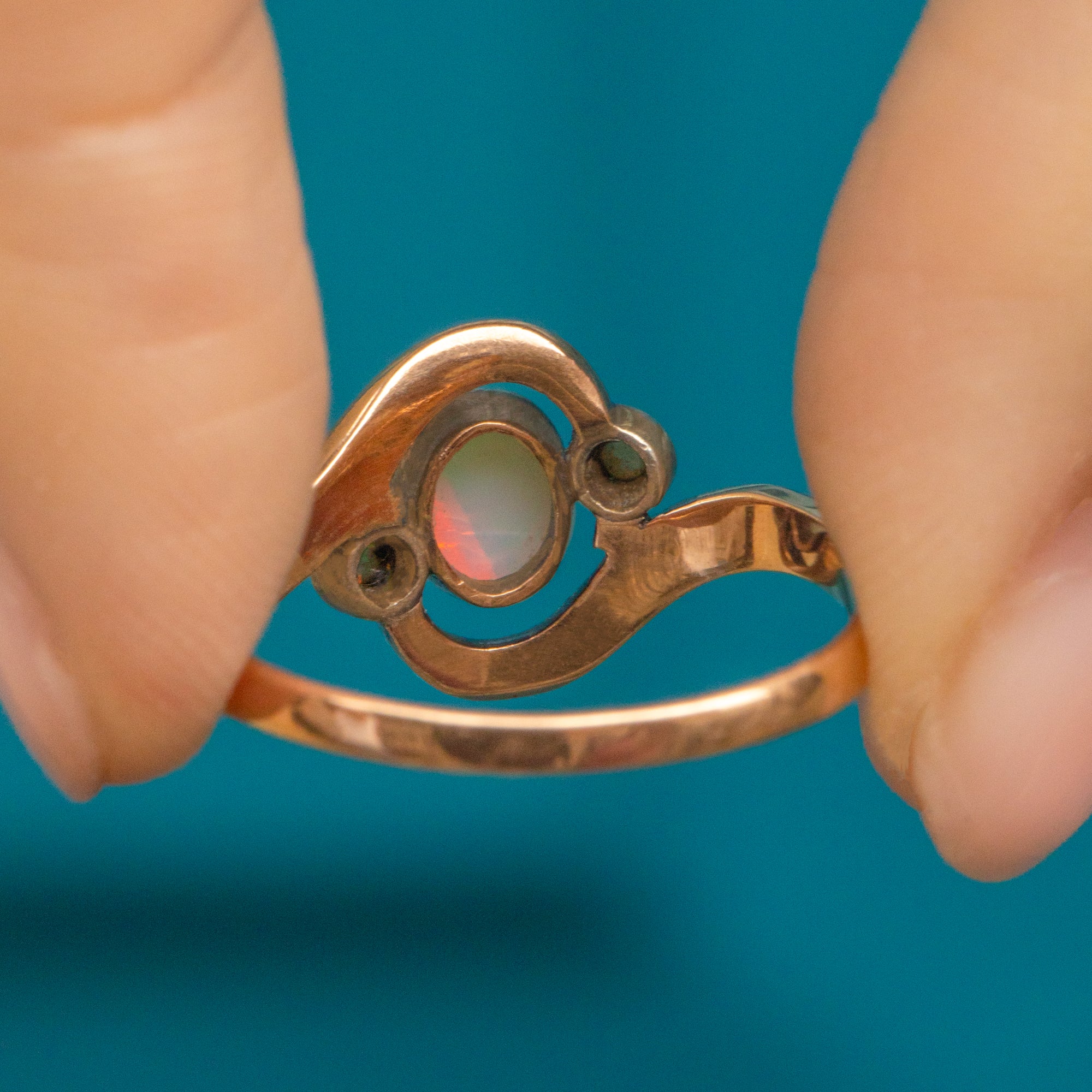 Art Nouveau 9ct Gold Opal Twist Ring, 0.40ct