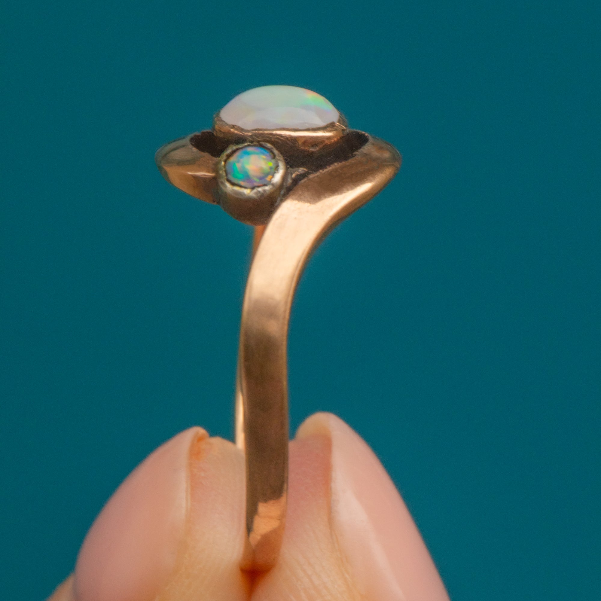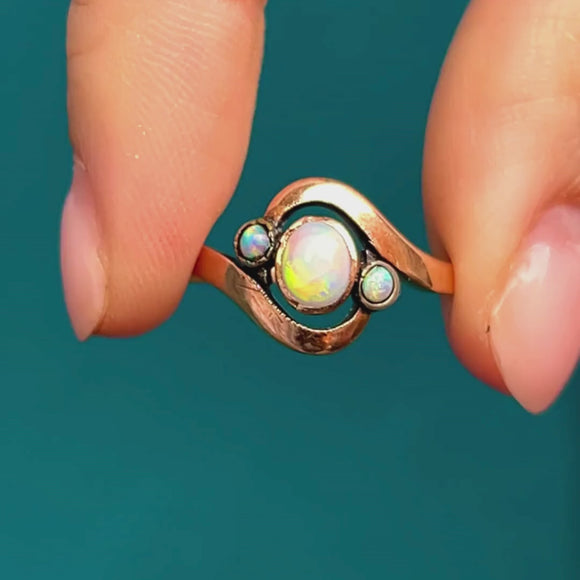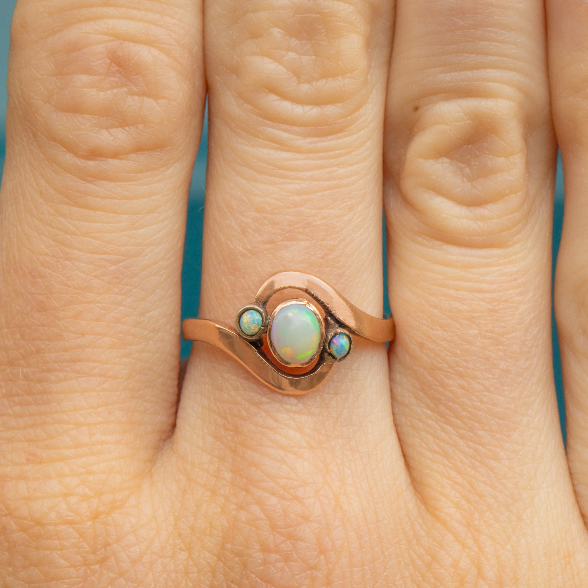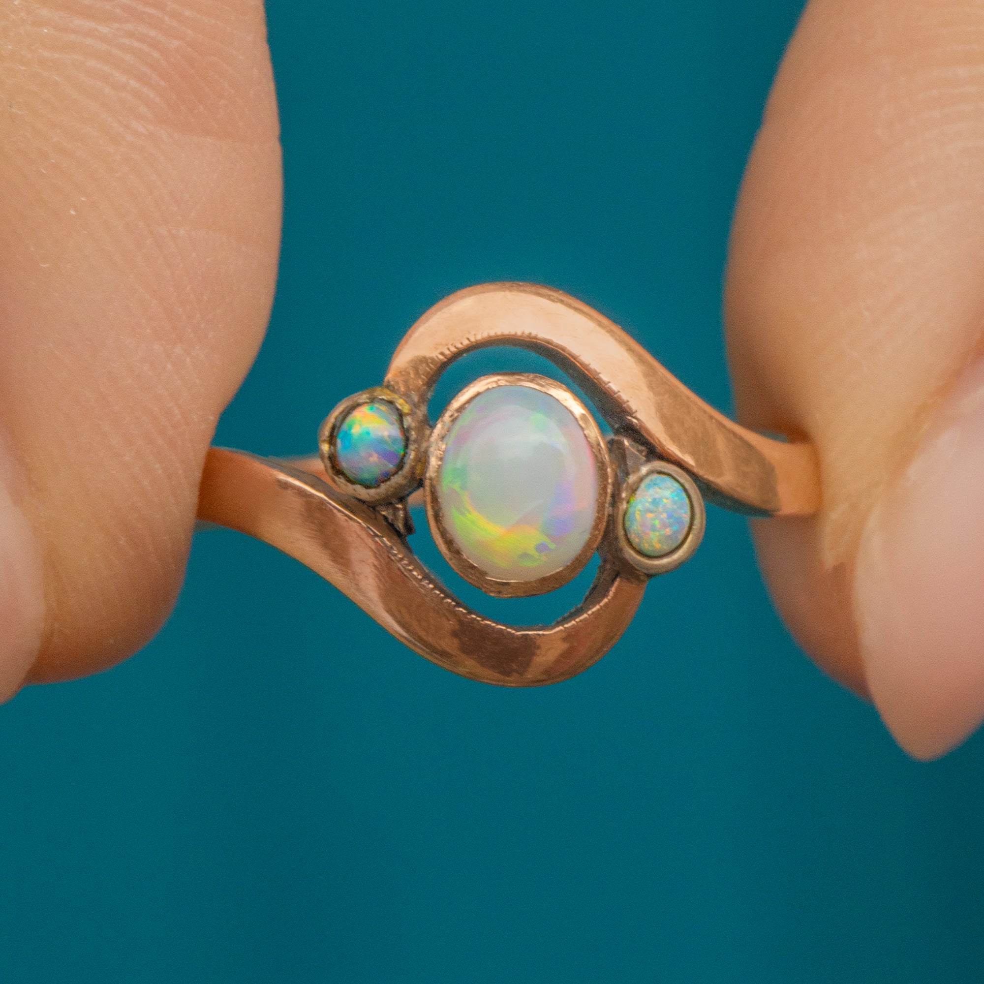 EXCELLENT. This Art Nouveau 9ct Gold Opal twist ring is in excellent condition. Her 9ct Gold is beautifully preserved and glossy, with the Opals securely set and free from wear. It is safe to say that this ring is just as beautiful today as when it was first created over a century ago!