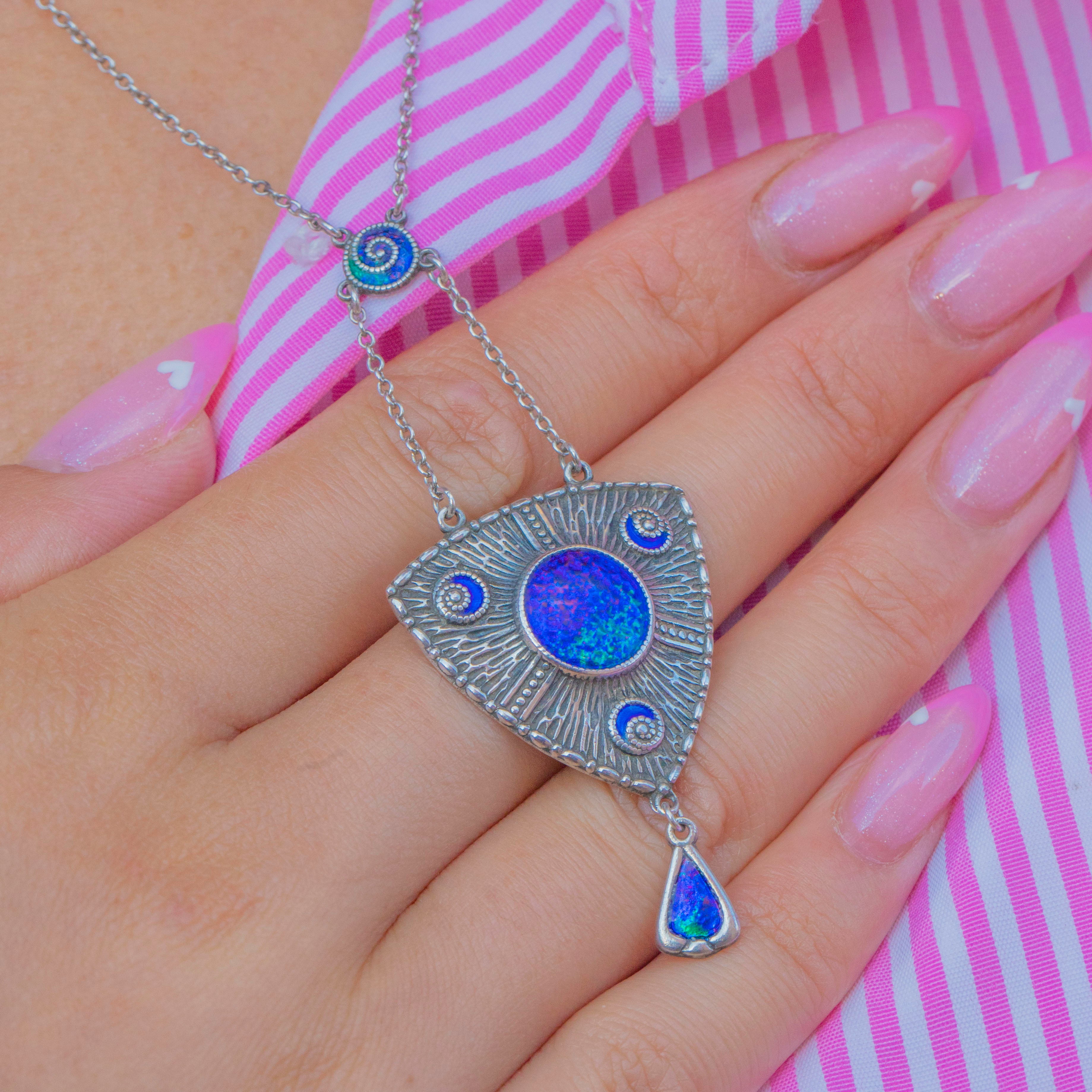 Arts & Crafts Era SIGNED Charles Horner Silver Blue Enamel Drop Necklace