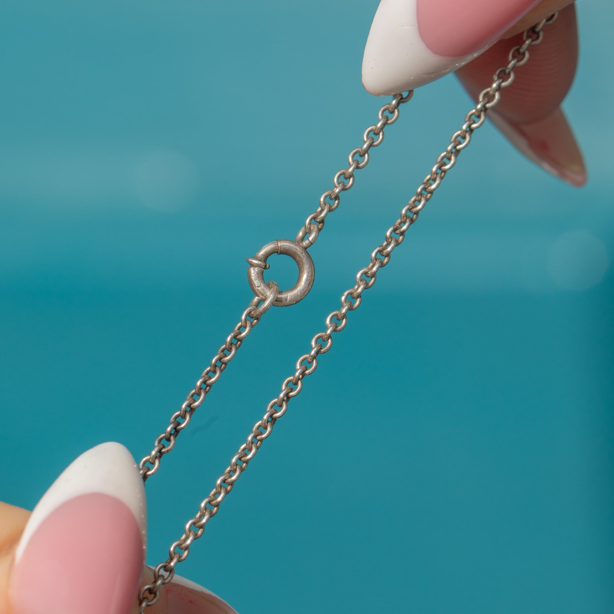 Made in Silver and suspended from an 18" antique Silver chain, the pendant’s generous proportions give it a striking presence while remaining elegant and wearable. A beautiful example of early 20th-century artistry in excellent condition.