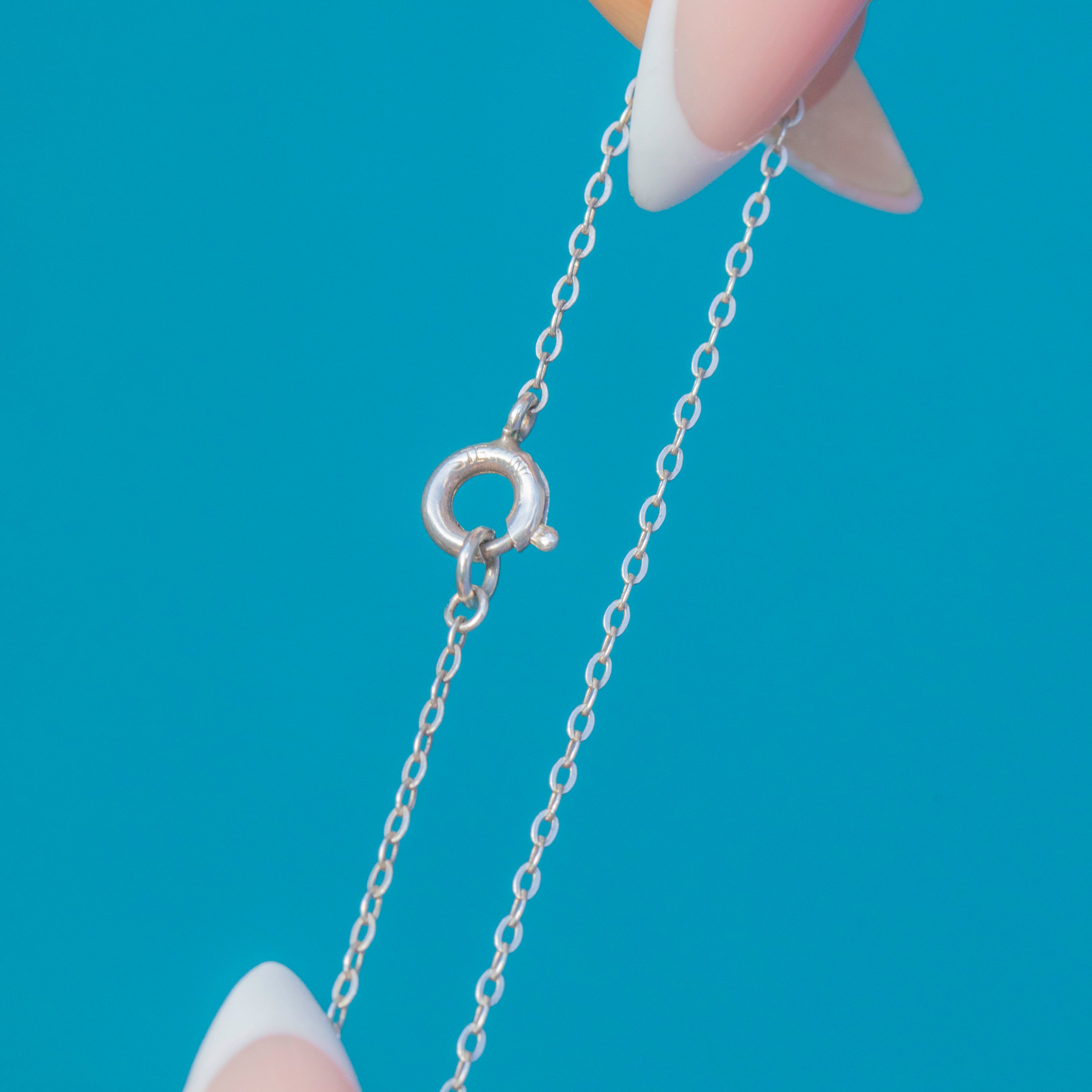 A dreamy Arts & Crafts necklace with five luminous Blue Chalcedony cabochons framed by ornate Silver filigree. The hand-worked scrolls and granulated details give wonderful movement and texture, while the cool blue stones glow beautifully on the skin. Elegant and wearable at 18", it’s a striking piece of period design that sits effortlessly with both everyday shirts and evening dresses.