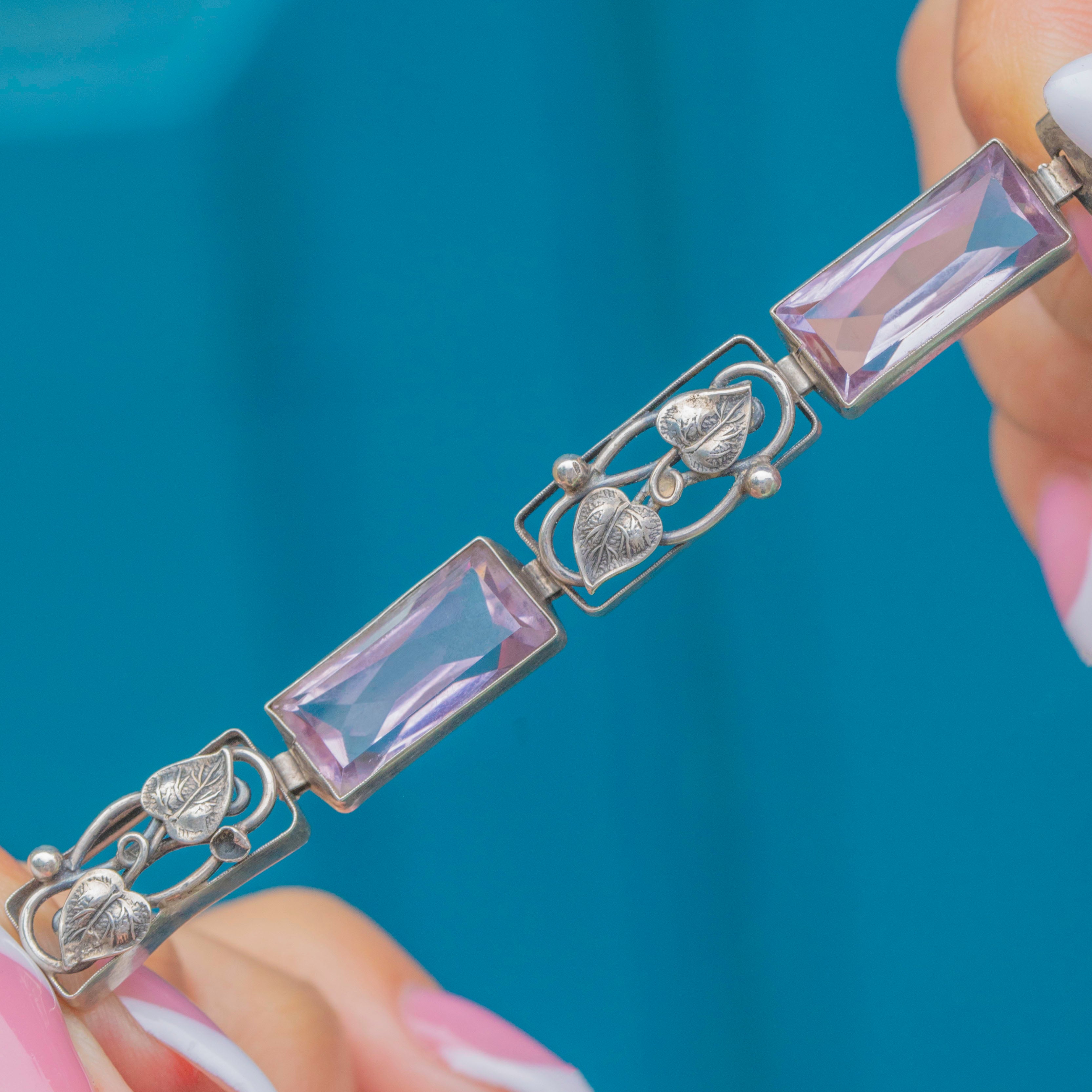 Arts & Crafts Silver Foliate Amethyst Bracelet