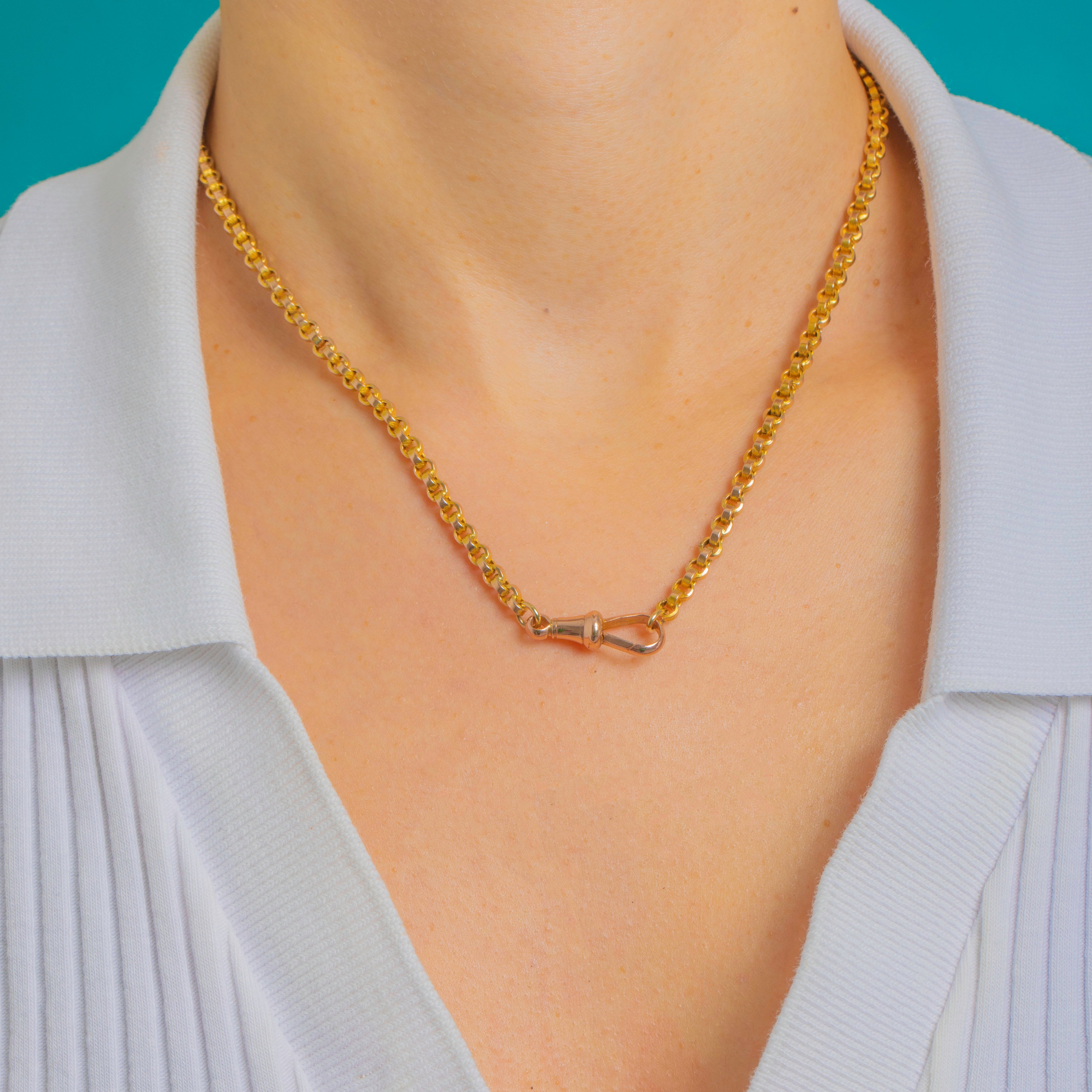 A classic Victorian 9ct Gold belcher chain, this 18" necklace is composed of uniform round links with a bright, glossy finish and that timeless watch‑chain allure. Its neat 3mm profile gives a compact, slightly chunky look that sits beautifully at the base of the neck.